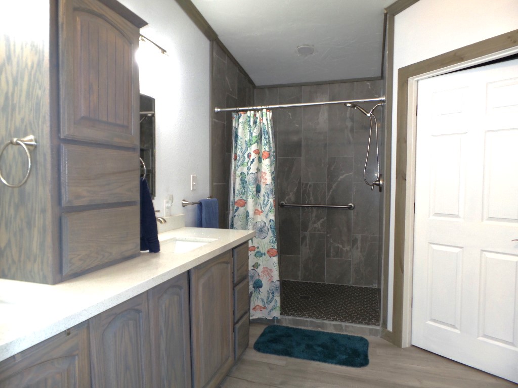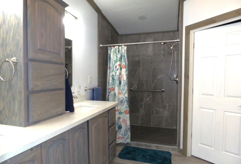 At the end of the home, you'll find the master bedroom and bathroom. The master suite is very spacious, with a walk-in closet and a master bath that features a walk-in shower.
