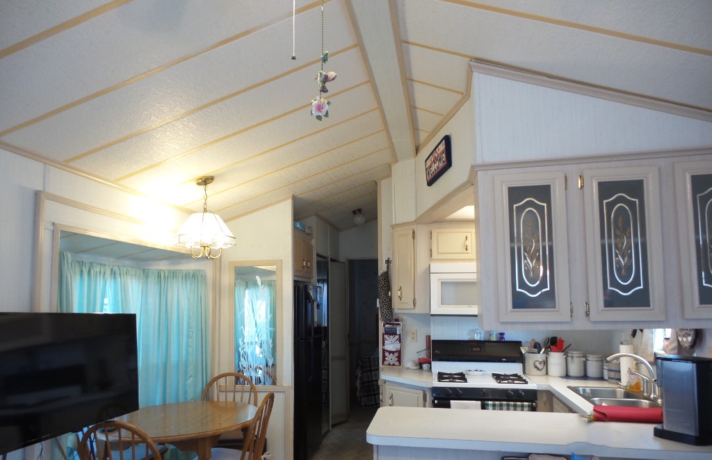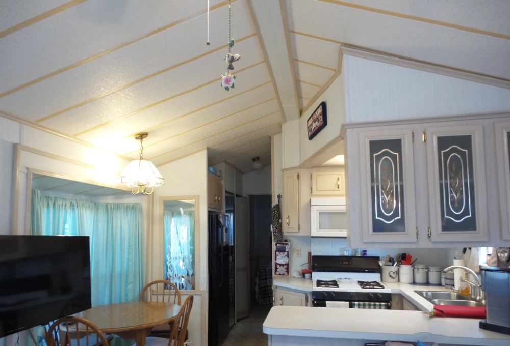 Chariot Eagle 12x33 (396 sq ft) 1-2 bedroom, 1 bathroom, ’94 Park Model with screen porch, Tx room/bedroom/laundry & shed. Driving into the dual-auto carport, you note a welcome sign for the screen porch with a patio table set overlooking the yard & a screen door exit to the yard & shed. Another door leads to the TX room. Entering the sliding patio door is the front Livingroom with a view & recliners + a love seat facing the wall mount tv. The dinette is nestled into the bay window with an adjacent galley style kitchen, complete with gas range, microwave, & a fridge. Beyond the fridge are dual mirrored pantry/closets, within the hallway & across from the bathroom with a T/S & direct door into the bedroom. The Q bed awaits with drawers beneath the closet, plus a built-in & extra dresser. A door exits to the Tx Room, which is very versatile with a Maytag W/D set, storage & a trundle bed & closet for guests. A red shed workshop awaits in the backyard. 6/6 lot rent available which includes water, sewer, trash & mowing. A steel roof, updated W/H & cement add low maintenance. Please call Rita for a tour appointment of this friendly, amenities filled resort & home at 712-281-9862.