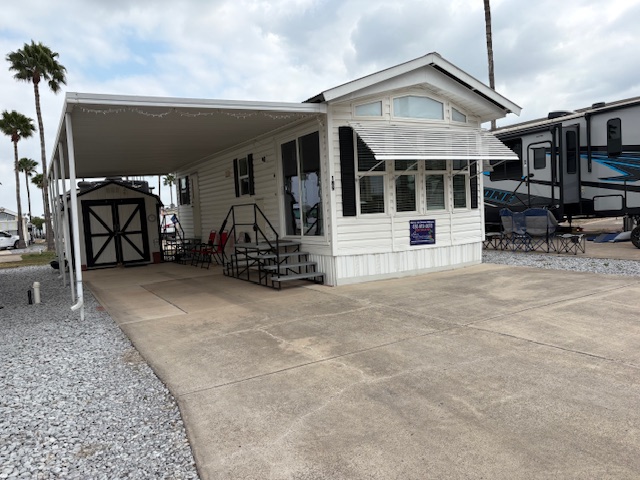 Located in 55+ Pleasant Valley Resort in Mission/Palmview with many activities and amenities including shuffleboard, Petanque, heated pool and spa, large clubhouse for entertainment, dances, and meals. Annual (6+6) lot rent currently is $3,175 and is paid through September, 2026. The park model can be moved.