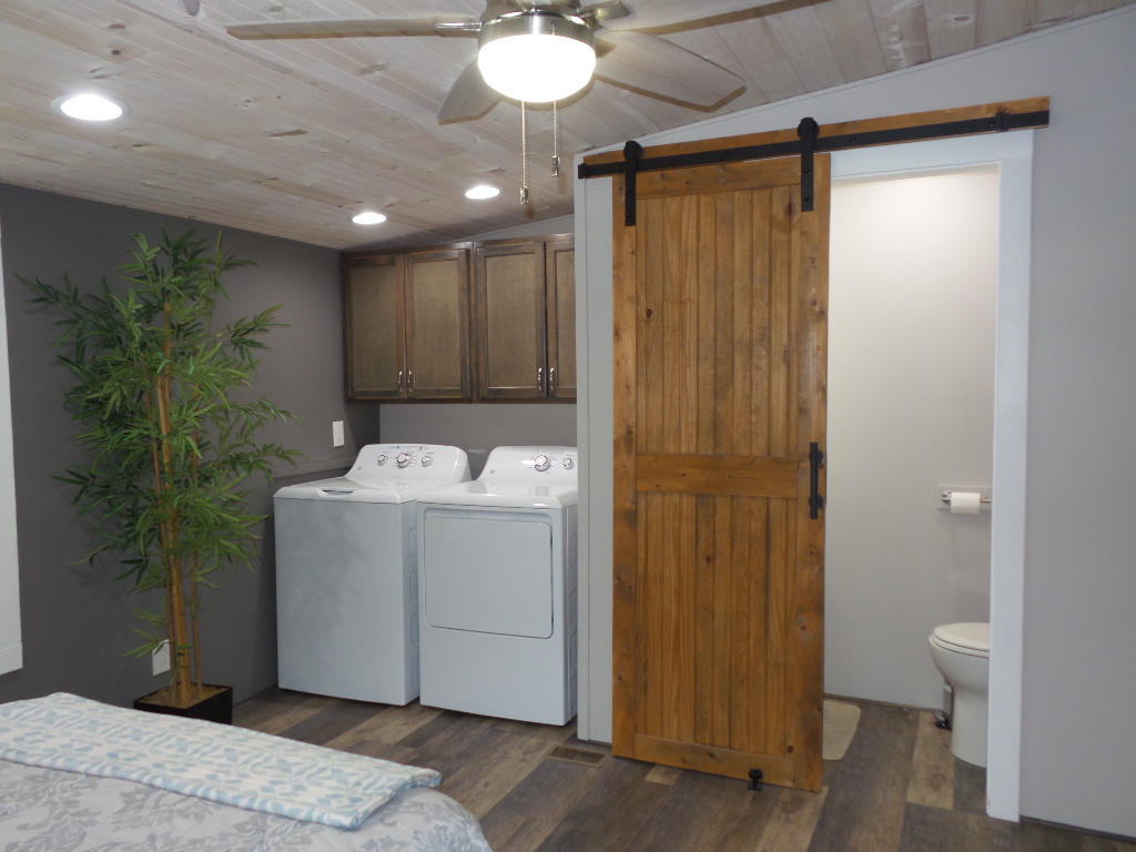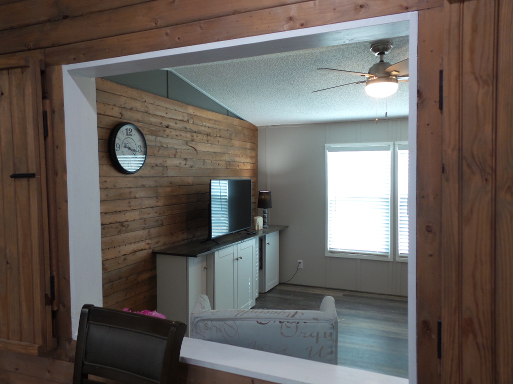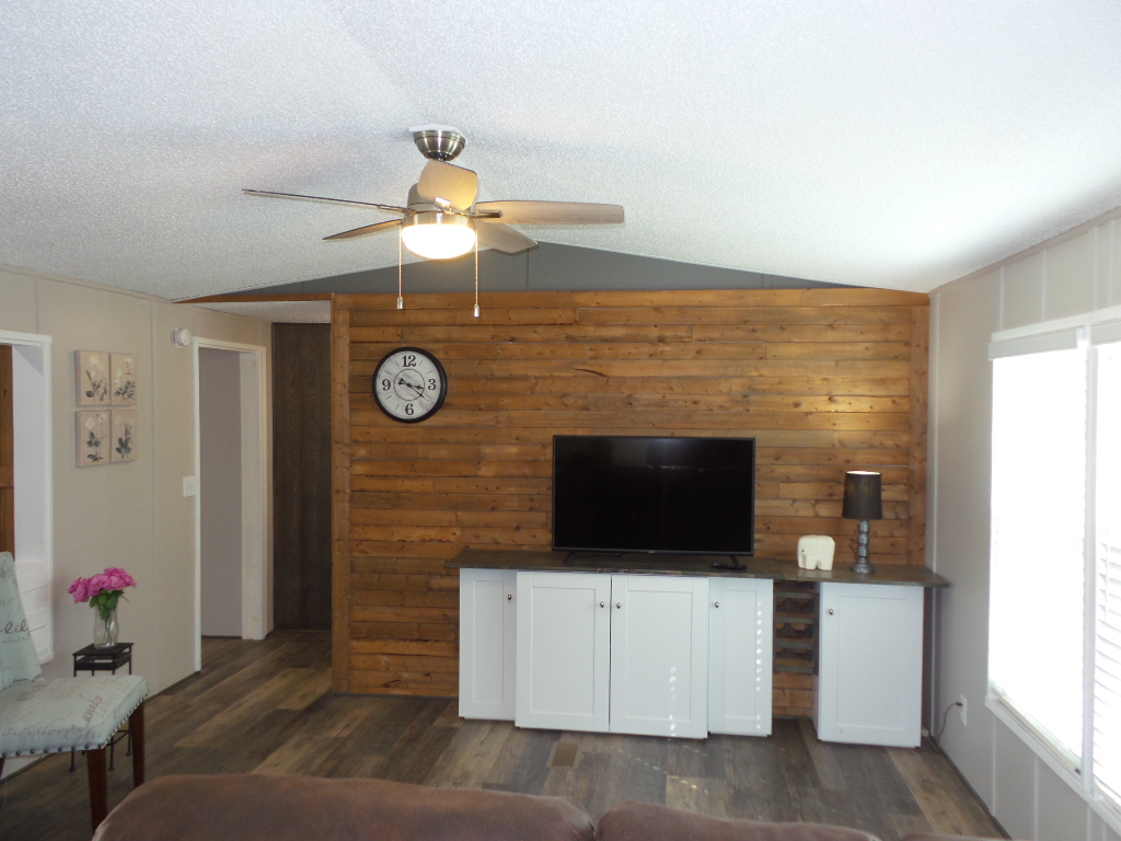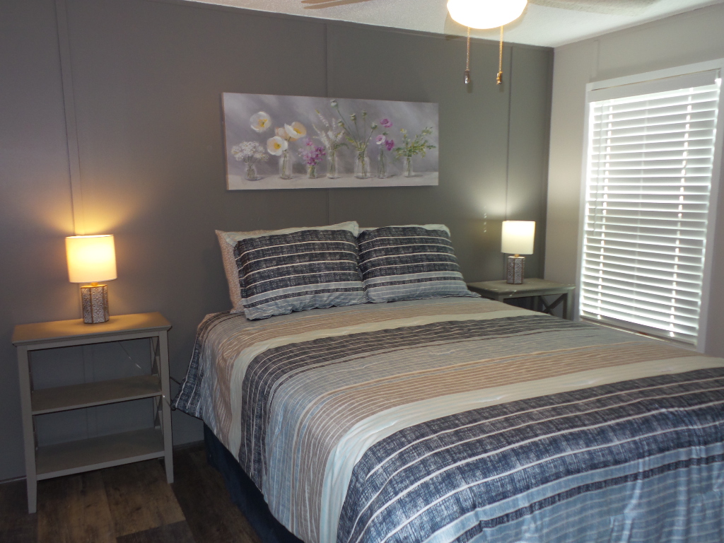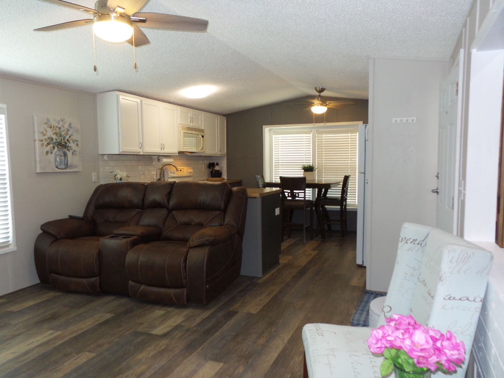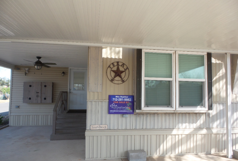 14x40’ Southbrook, manufactured home plus 18x15’ Texas Rm for a total of 830 sq ft. 1.5 bathrooms & 2 bedroom/office option. This is a customized home, with every convenience including modern upgraded SS appliances, vinyl plank flooring, new lighting, thermal windows, sheetrock/painted walls & tiled walk-in shower + vanities & fixtures. Entering via the screen & front door you see a front dine-in kitchen with all new cabinets (custom pull outs/ez slide deep drawers), underlighting & LED lights in addition to plenty of natural light. An open concept living room is divided by cabinets/countertop enhanced with a rustic barnwood wall featuring a large screen tv. Beyond the living room is the main bathroom with a modern vanity & glassed-in shower. The master bedroom is at the back of the home with a Q bedroom set, dresser & closet. Extra storage cabinets & a coat closet are in the hallway with the entrance to a versatile TX rm/bedroom/office! This room features a murphy bed & ½ bathroom en-suite. The hi-def laundry set is tucked away but convenient. Privacy is via a wooden shuttered window & a customized sliding barn door or utilized as an open concept, extension of the home. Located on a corner lot, outdoors is a sun screened, covered private patio area 10x15’ with TV/computer set up, overlooking a landscaped rock & lawn area featuring tropical plants & established shade trees. The workshop/shed is 10x15’ with lofts & contains the newer on demand water heater & full home filtration system, with R/O inside. Low maintenance is key, as everything is new inside: E tinted/thermal windows, steel roof & siding/vinyl, dbl insulated XL car port. The heat pump/AC unit is replaced & regularly maintained as well. You need to see this updated custom home to appreciate it. Located in a friendly active resort community with golf, RC, pickleball…Call Rita at 712-281-9862