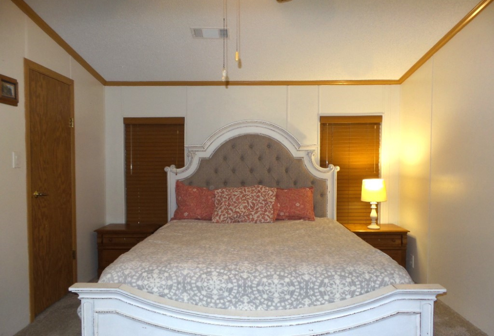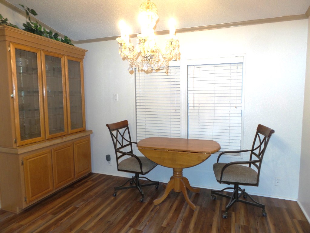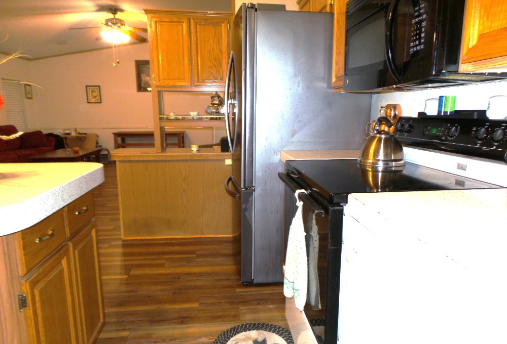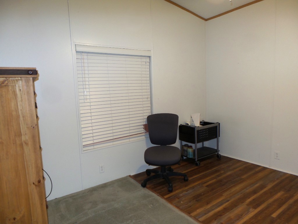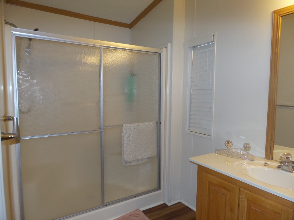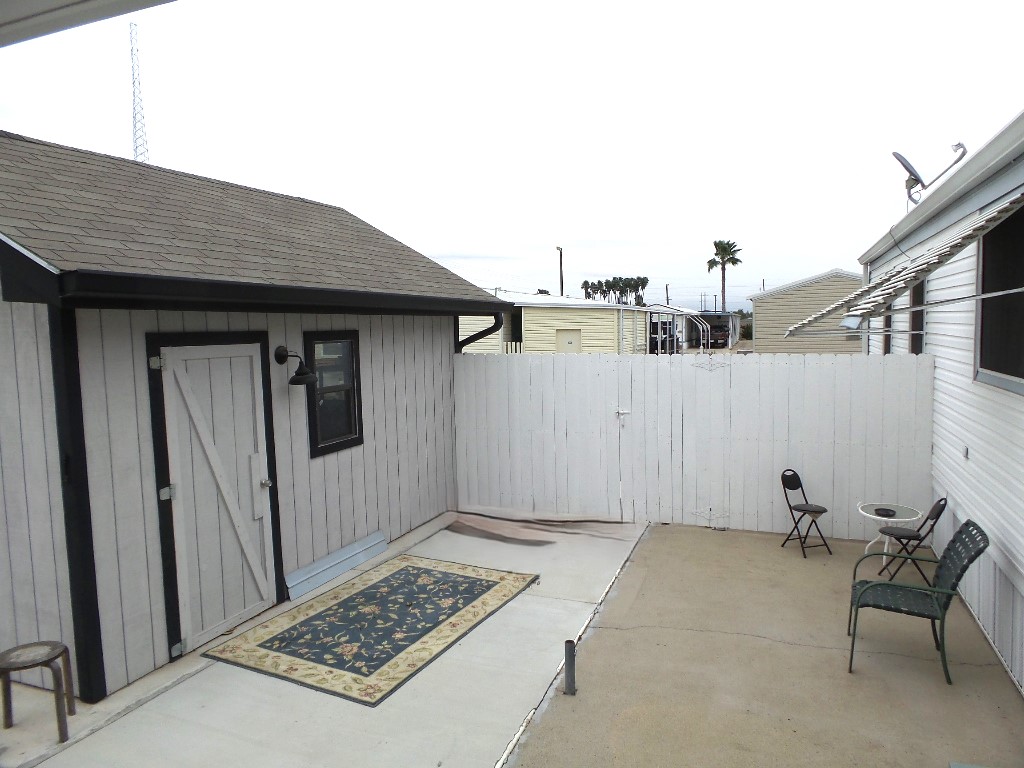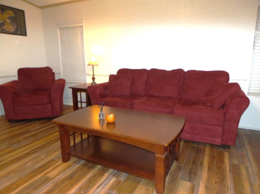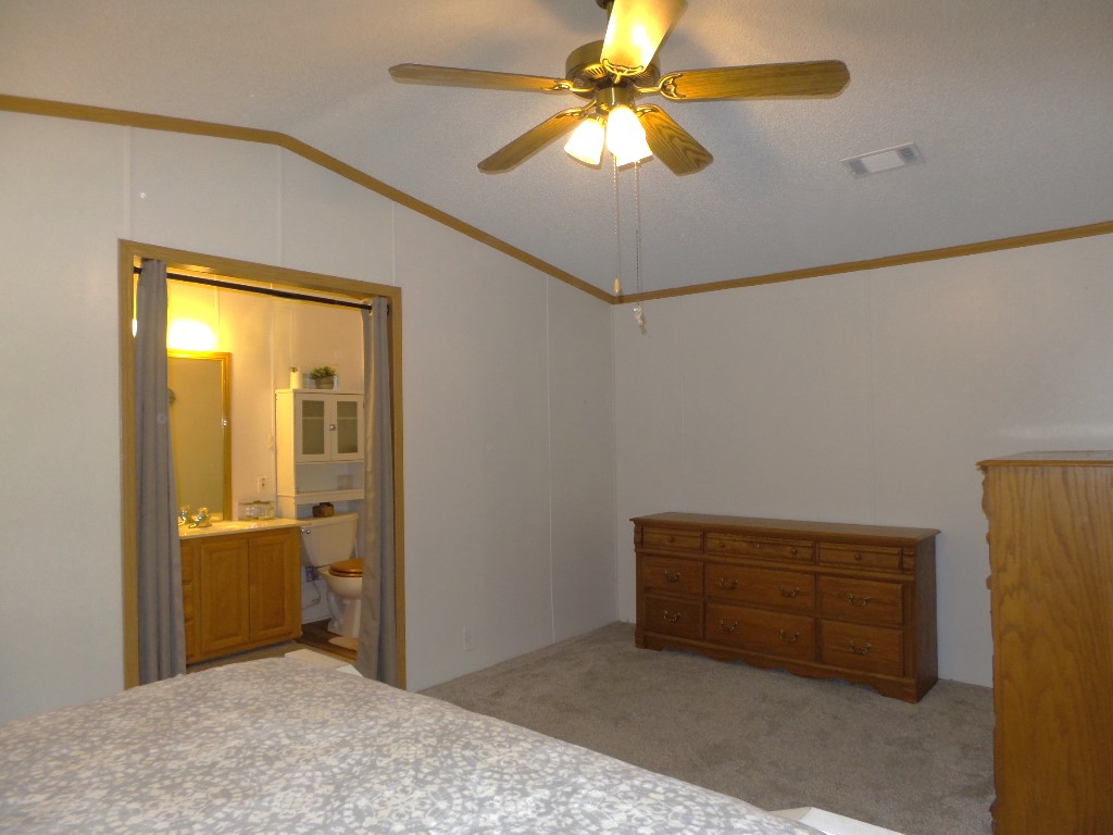 Oak Creek 18x68’ (1224 sq ft) Manufactured home with 2 bedrooms, 2 bathrooms, 2 decks & 2 sheds with extensive parking! Driving up to this home you take note of the parking by the huge storage shed & the spacious deck with a privately fenced patio behind it. Entering the front door is a spacious Livingroom with a wine-colored sofa & matched side chair, plus a love seat with lamps & side tables, facing a table which can accommodate an over-sized tv, all upon lovely wood flooring stretching thru the main rooms. A dividing counter & display area separates the kitchen, featuring a center island & L shaped cabinets & countertops with updated appliances surrounding 2 sides. The drop leaf table is adjacent to the window & a built in hutch. Around the corner is a pantry, then near the back door is a laundry room including a stackable W/D, with a sorting table & overhead cabinets leading to the back door exiting to a large deck and the attached shed/workshop. Beyond the laundry room is the carpeted M bedroom with K bedroom set/dressers, walk in closet & en-suite bathroom. The bathroom features a walk-in shower, linen closet & dual, sinks. At the front of the home is an office/guest/sewing room, with the main corner bathroom including a T/S. With updated appliances, A/C & W/H, steel roof, vinyl siding & sunscreens are energy efficient! The extensive outdoor spaces provide lovely options & great storage within all the sheds! This truly is a spacious home with an extra 18’ width & very nice with textured walls & hard wood flooring. Call Rita at 712-281-9862 for a tour of this home & resort community with numerous activities & friendly people waiting to welcome you to the mid valley & some of the most economical rent.