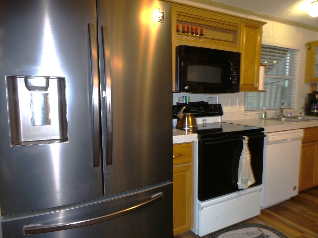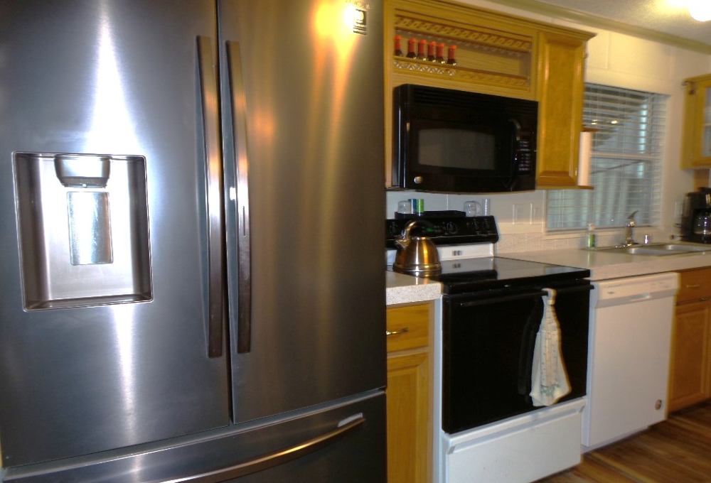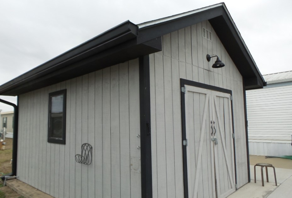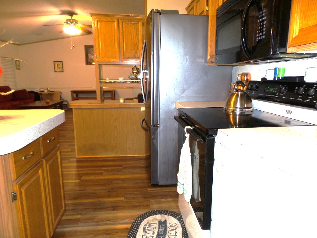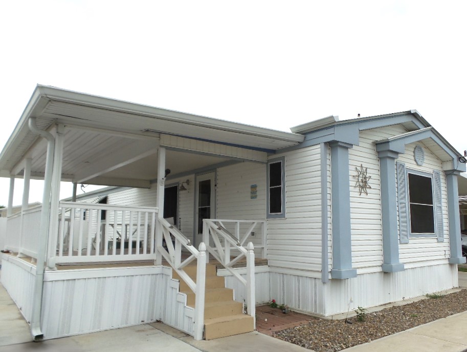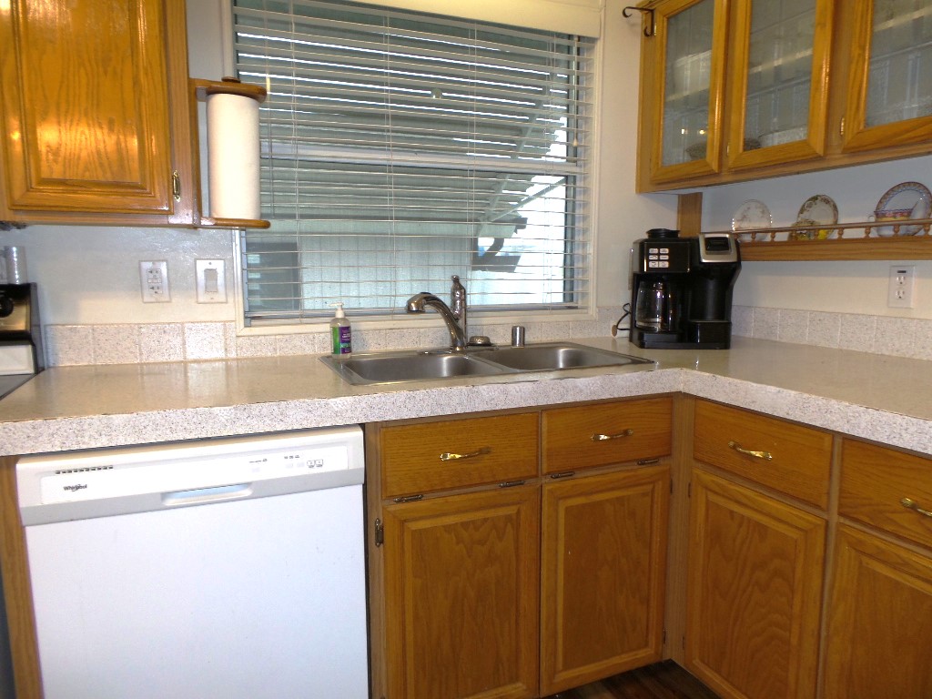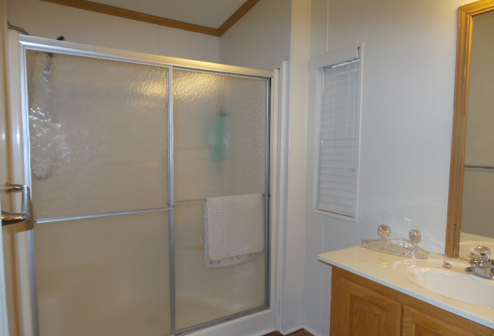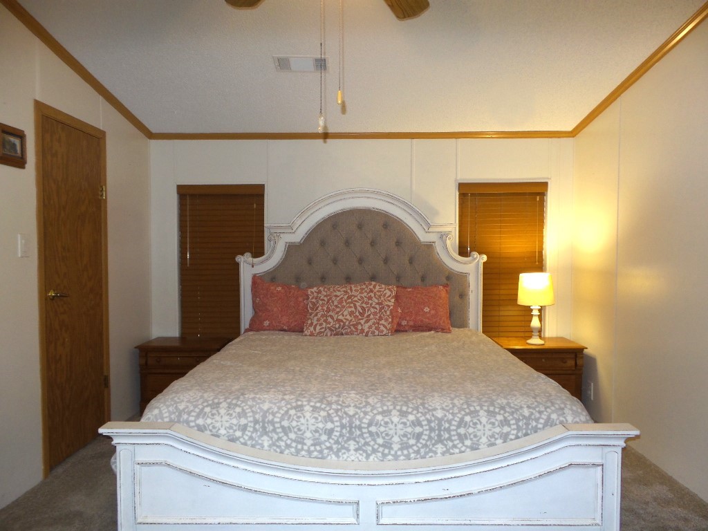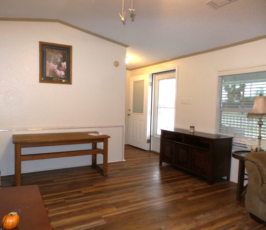 Oak Creek 18x68’ (1224 sq ft) Manufactured home with 2 bedrooms, 2 bathrooms, 2 decks & 2 sheds with extensive parking! Driving up to this home you take note of the parking by the huge storage shed & the spacious deck with a privately fenced patio behind it. Entering the front door is a spacious Livingroom with a wine-colored sofa & matched side chair, plus a love seat with lamps & side tables, facing a table which can accommodate an over-sized tv, all upon lovely wood flooring stretching thru the main rooms. A dividing counter & display area separates the kitchen, featuring a center island & L shaped cabinets & countertops with updated appliances surrounding 2 sides. The drop leaf table is adjacent to the window & a built in hutch. Around the corner is a pantry, then near the back door is a laundry room including a stackable W/D, with a sorting table & overhead cabinets leading to the back door exiting to a large deck and the attached shed/workshop. Beyond the laundry room is the carpeted M bedroom with K bedroom set/dressers, walk in closet & en-suite bathroom. The bathroom features a walk-in shower, linen closet & dual, sinks. At the front of the home is an office/guest/sewing room, with the main corner bathroom including a T/S. With updated appliances, A/C & W/H, steel roof, vinyl siding & sunscreens are energy efficient! The extensive outdoor spaces provide lovely options & great storage within all the sheds! This truly is a spacious home with an extra 18’ width & very nice with textured walls & hard wood flooring. Call Rita at 712-281-9862 for a tour of this home & resort community with numerous activities & friendly people waiting to welcome you to the mid valley & some of the most economical rent.