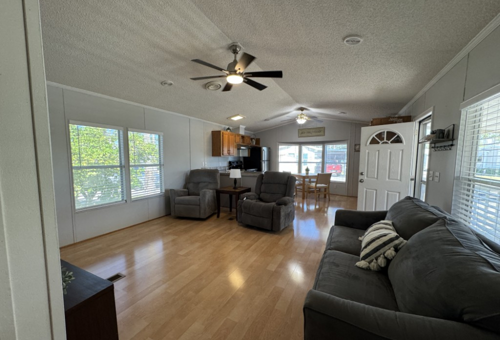Lot rent is $517 per month and covers Spectrum cable and Wi-Fi, sewer, and trash services. Water and electricity are metered by the park, simplifying move-in and ensuring affordability.