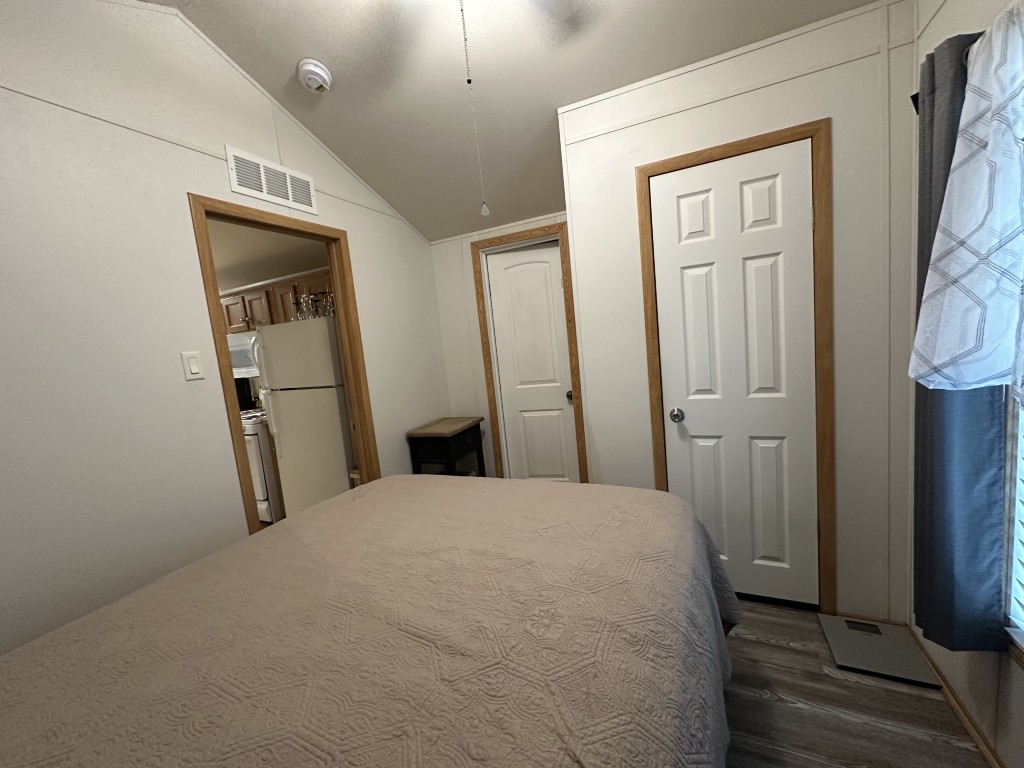 - Cathedral ceilings with ceiling fans in living room & bedroom