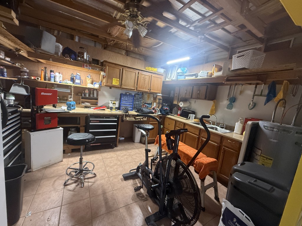 Enjoy a 19 x 24 covered patio, an 11 x 21 screened-in porch, a 19 x 24 covered back patio, and a 19 x 18 carport—ideal for entertaining or relaxing outdoors. There’s also an 11 x 13 workshop with electricity, fridge/freezer, exercise bike, sinks with running water, and more, plus a 2 x 4 shed for extra storage.