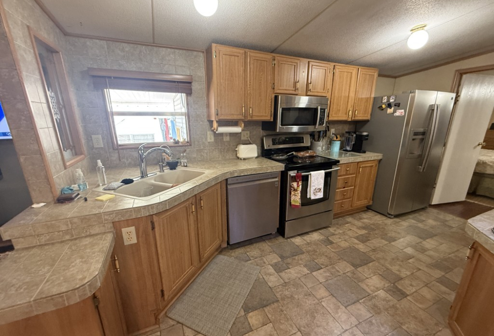 Discover exceptional value in this charming 1999 manufactured home featuring 2 bedrooms and 2 bathrooms, perfect for full-time living or a relaxing seasonal getaway. From the moment you arrive, the expansive covered ceramic‑tiled deck welcomes you, offering the ideal spot for morning coffee, evening gatherings, or simply enjoying the peaceful surroundings.