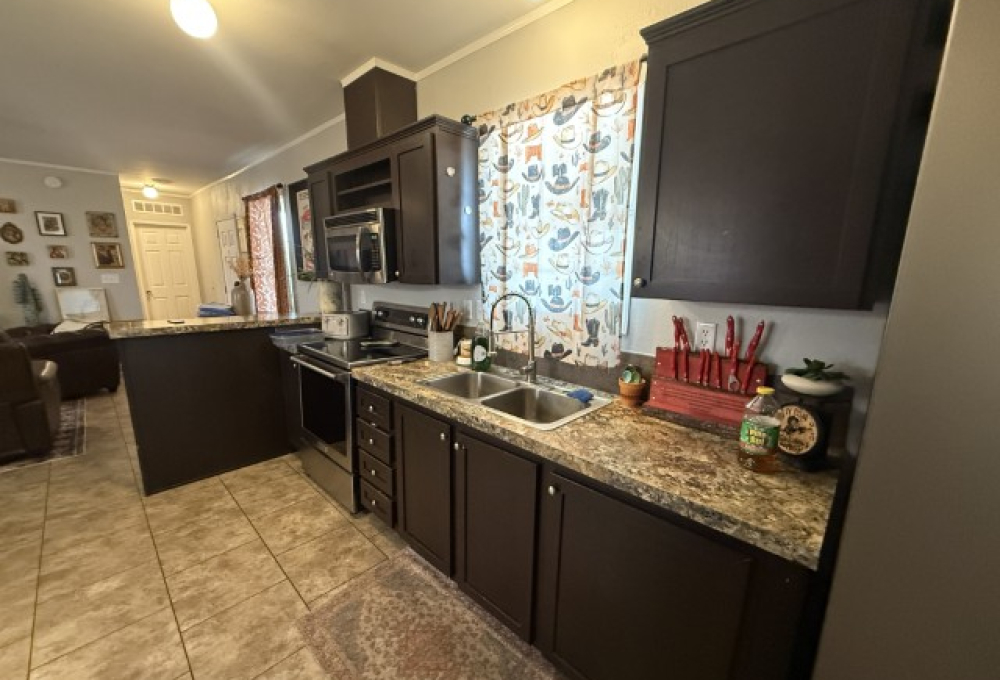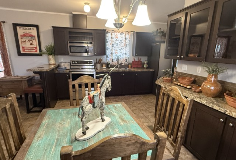 Prepare to be amazed by this 17.5' x 64' 2015 Palm Harbor manufactured home, beautifully decorated in authentic Texan style and fully furnished — artwork, antiques, and all.