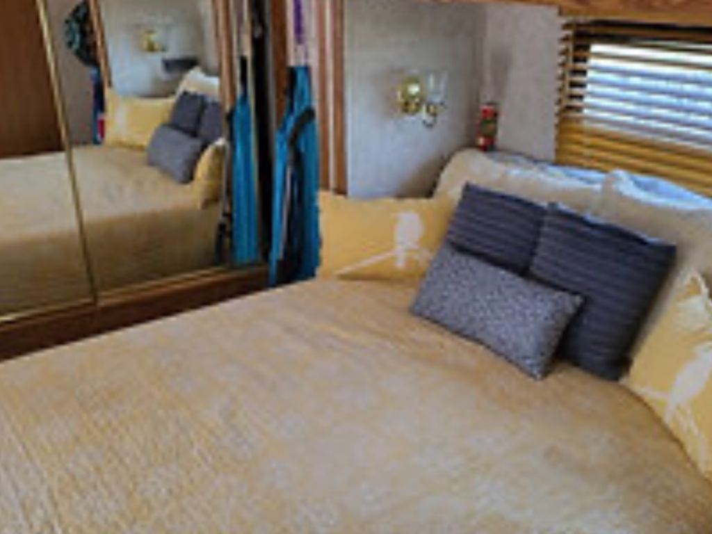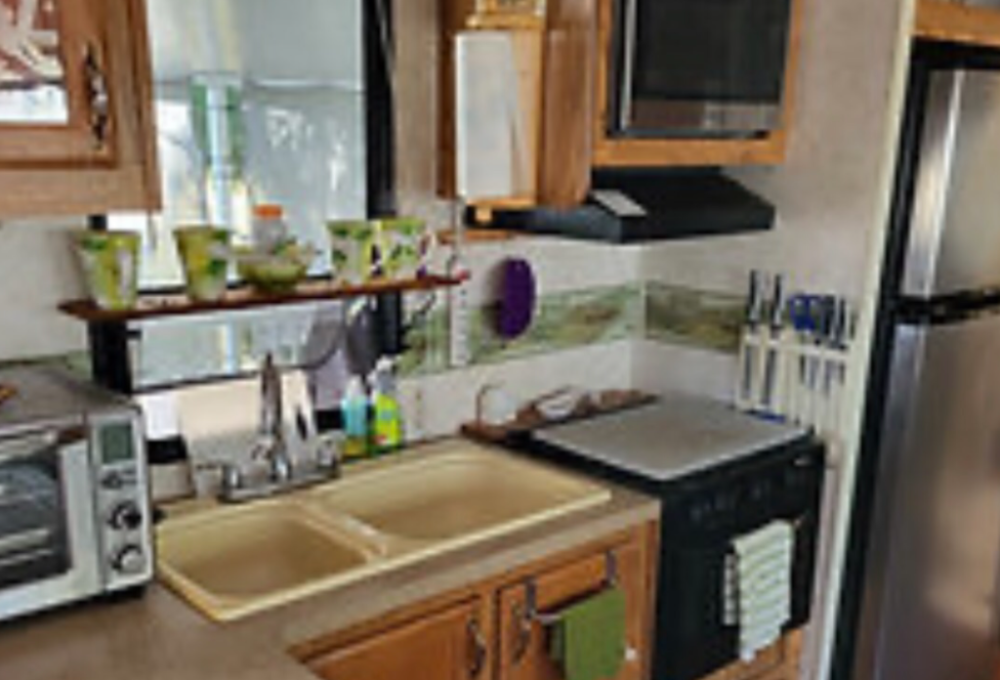 This well-kept 2005 park model (10x39) features a spacious slide-out, one bedroom, and one bath. The home is fully furnished with a comfortable living area and an eat-in kitchen equipped with a refrigerator, counter microwave, and gas stove. Enjoy a brand-new queen bed and a bathroom with a walk-in shower, as well as vinyl flooring throughout. Stay comfortable year-round with two new mini splits that provide both heating and cooling.