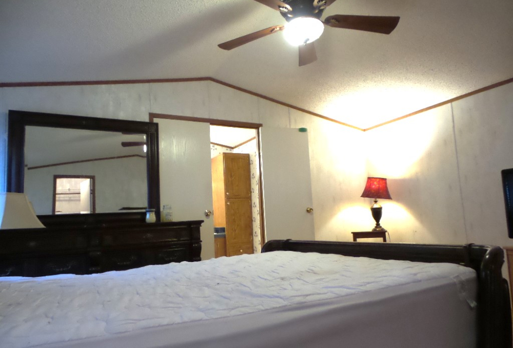 Al/Tex Southern Energy 16x76’ (1216 sq ft) 3-bedroom, 2 bathroom 2001 Manufactured home can be moved! Driving up to this home you see a cement driveway & chain link fenced yard with an 8’x10’ metal storage shed. The front door enters a large ceramic tiled Livingroom, divided from the Kitchen/dining area by a tiled high counter providing an abundant galley kitchen with extensive cabinets/countertops. A newer Samsung S/S fridge plus an electric stove, dishwasher & microwave complete the kitchen appliances. The laundry room opens off the kitchen/dining area with extra closet & shelving, while spacious for any style of W/D you’d like to add. Beyond the back door is the M bedroom, with a Q size bedroom set, walk-in closet & en suite bathroom. The bathroom has a garden tub, dual vanity & walk-in shower! The front bedroom/guest room has a new bed frame & boxspring with a good-sized closet & wood laminate flooring. The 2 bedrooms at the front of the home can be used for many various options, sewing/office/craft, etc. The bathroom between these 2 bedrooms has a T/S. With a bit of personal TLC this could be a great home & landscaped as well. Call Rita@ 712-281-9862 now for a tour appointment.