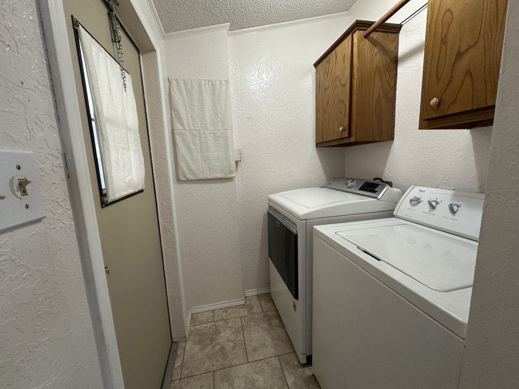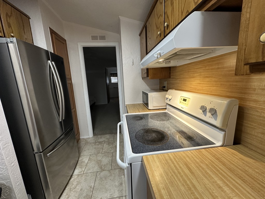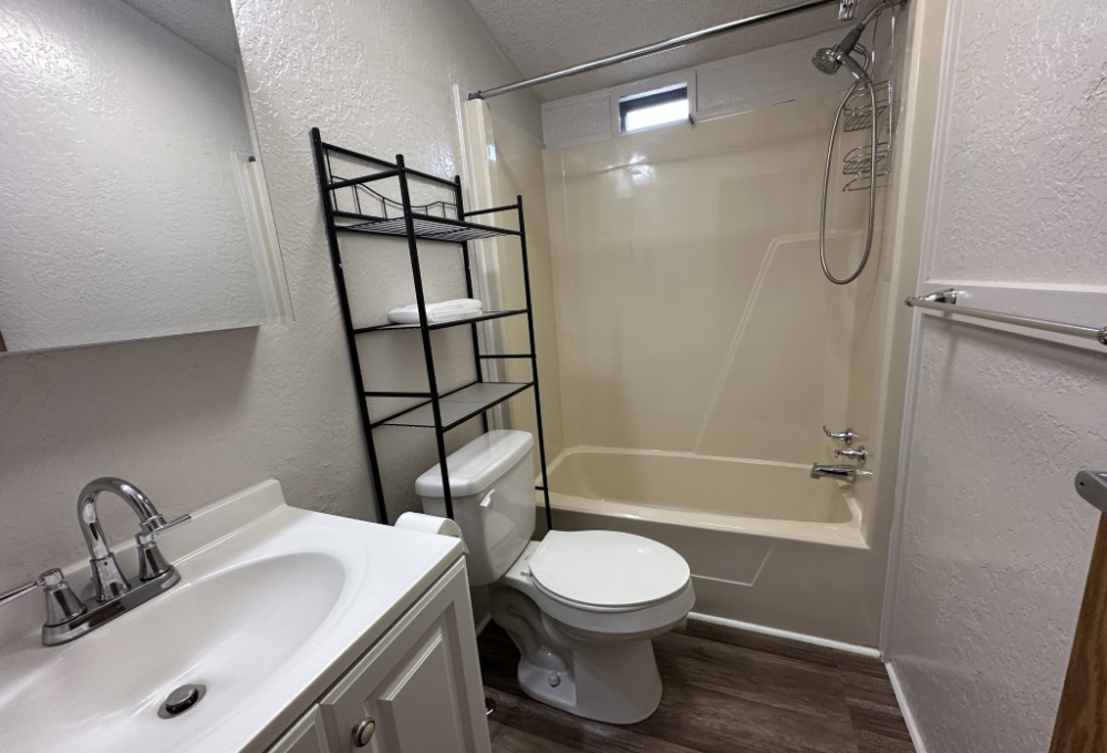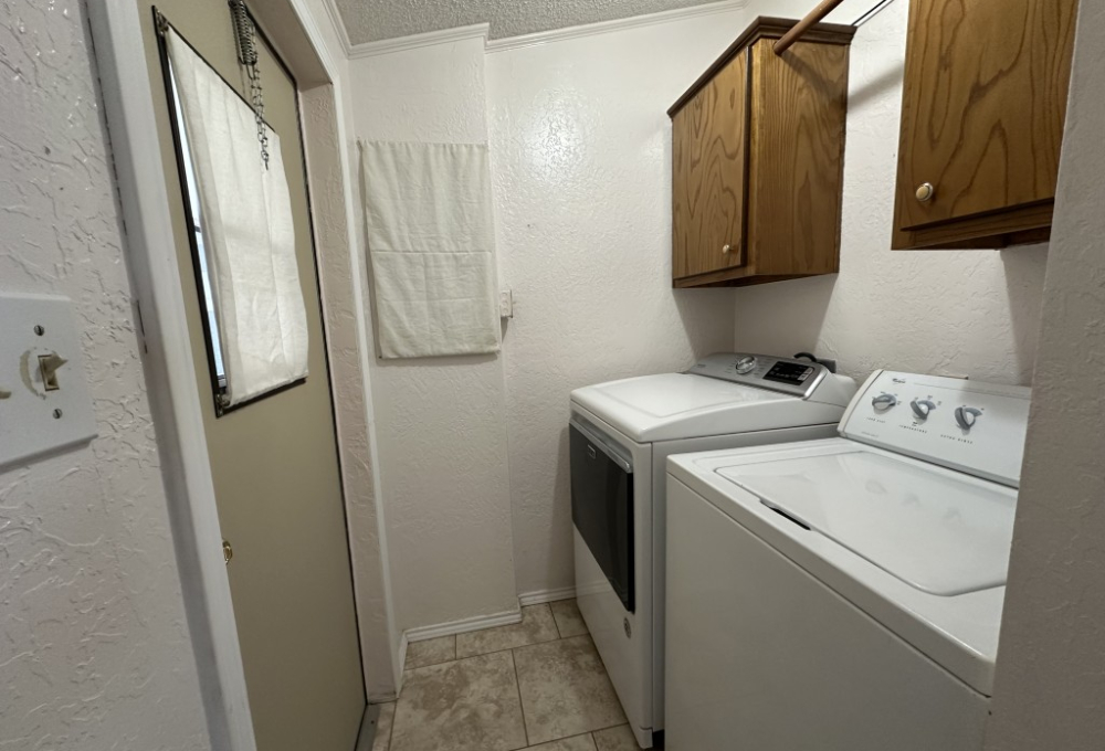 Laminate Flooring Throughout: Easy to clean and stylish, with cozy carpeting in both bedrooms.