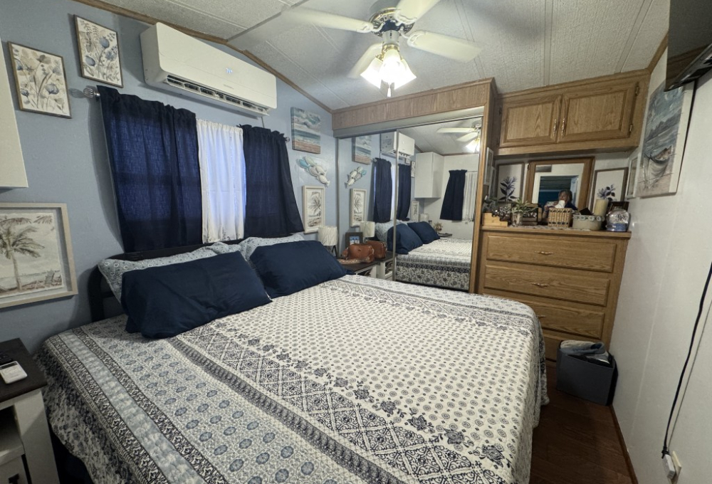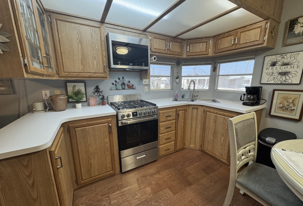 Experience comfortable living in this charming remodeled 1-bedroom, 1-bath park model home, offering 396 sq ft of thoughtfully designed space. Ideally located on a generously sized lot within Mission Bell and Trade Winds Resort, this home provides both convenience and tranquility.