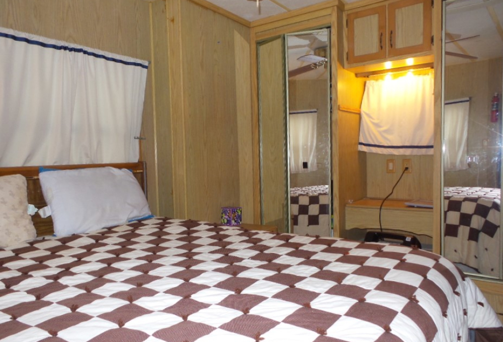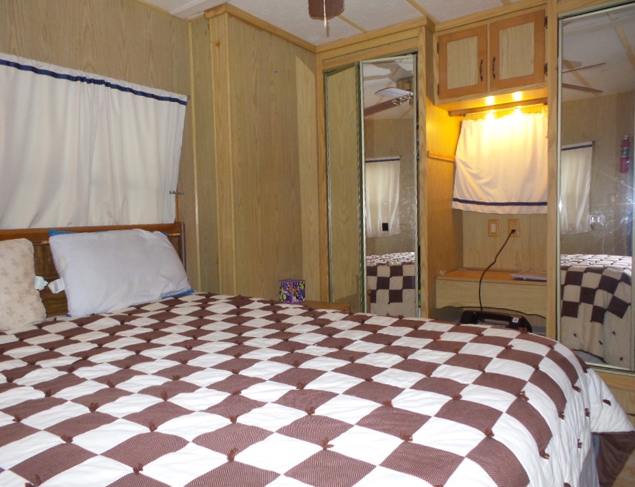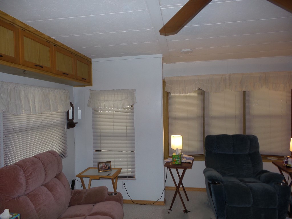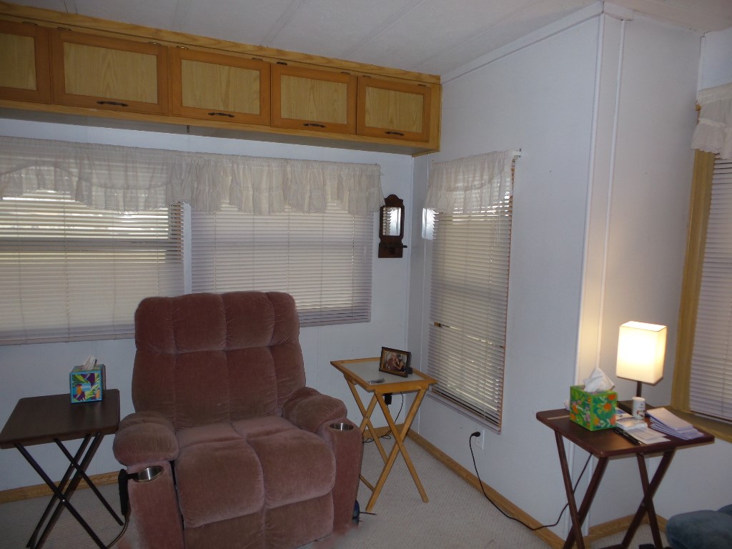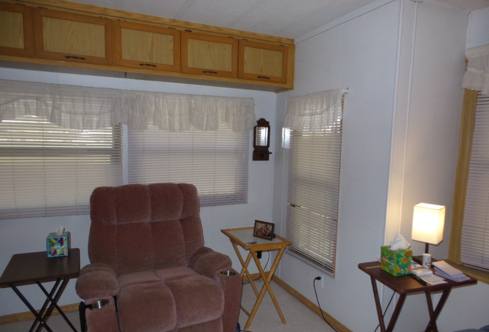 Updated Park Model 12x32’ (384 Sq ft) 1-2 bedroom, 1 bathroom plus 23x9’ =207 additional sq ft. The latticed carport is across the front of this home with extra cement alongside for parking or patio area. Entering the TX Room you note a spacious area with a folded-up murphy bed frame closed but accessible for a 2nd bedroom with a window unit for comfort. Entering the home is a spacious front Livingroom with 2 recliners facing the entertainment center, A diving kitchen counter extends to provide more counterspace & cabinetry within the kitchen with wood laminate flooring. A brand new fridge is along the wall near the dinette. A gas stove & microwave complete the appliances. Along the hallway is the bathroom with an updated walk-in shower & vanity. An extra closet & desk area add storage within the hallway. With the Q bed in the back bedroom, built-in dresser, & cabinetry, plus another closet near the back door. A shed contains a washer out the back door of the Tx Room. This park model is priced to sell & movable, within a lower rent resort community with many activities. Call Rita at 712-281-9862 for a tour appointment.