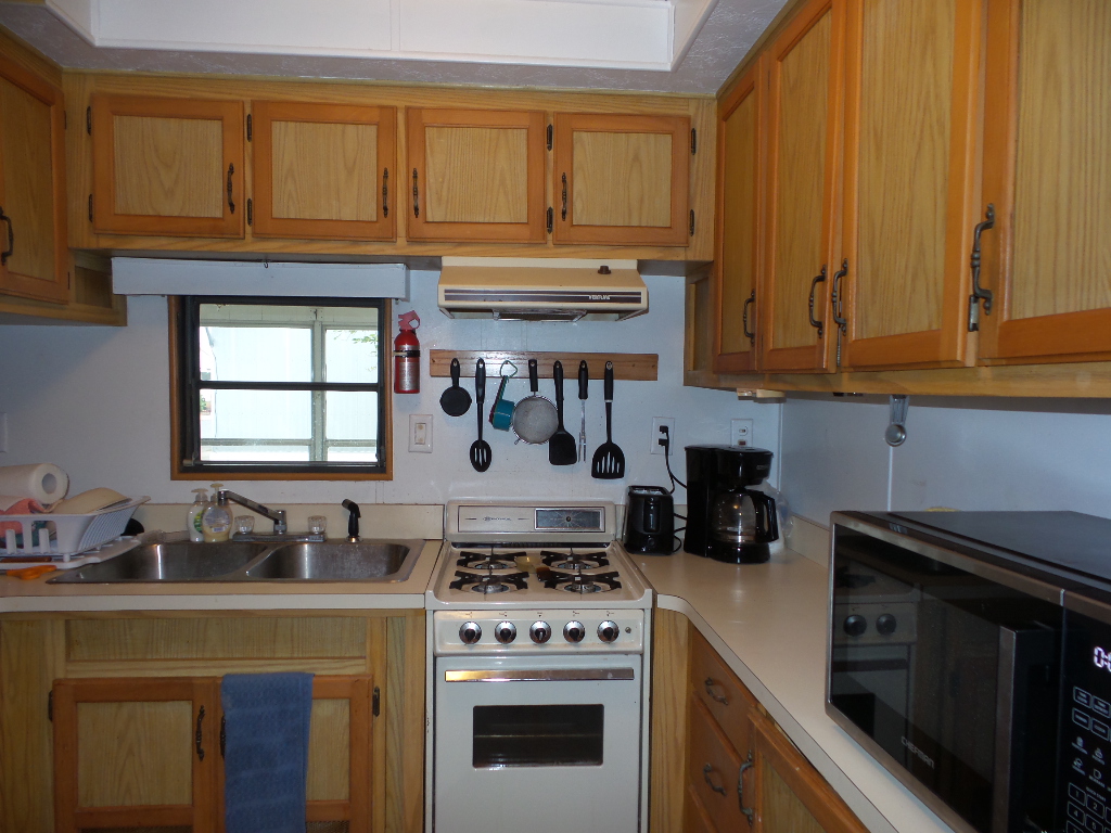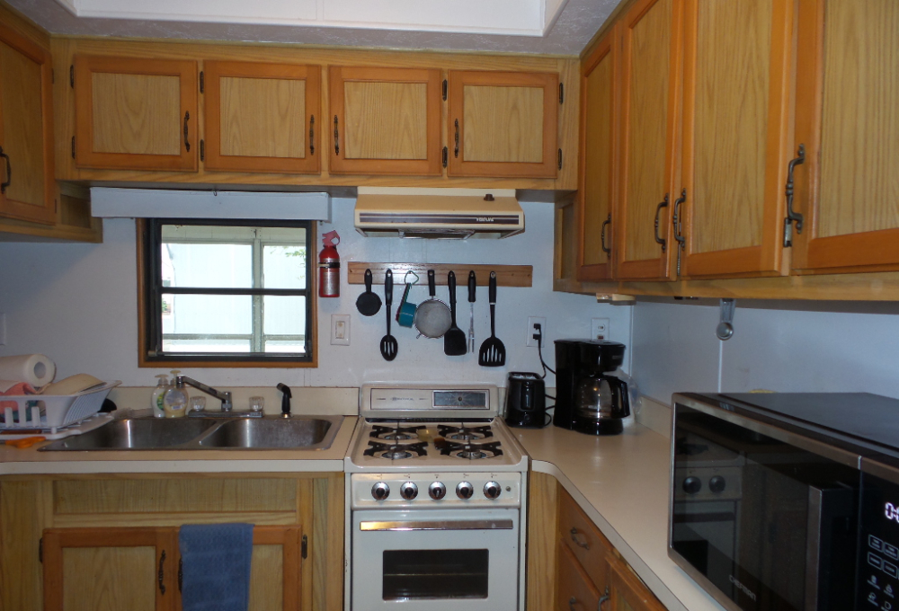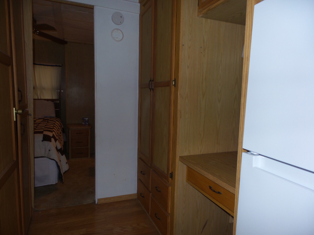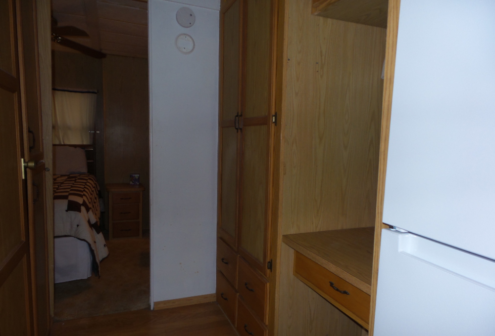 Updated Park Model 12x32’ (384 Sq ft) 1-2 bedroom, 1 bathroom plus 23x9’ =207 additional sq ft. The latticed carport is across the front of this home with extra cement alongside for parking or patio area. Entering the TX Room you note a spacious area with a folded-up murphy bed frame closed but accessible for a 2nd bedroom with a window unit for comfort. Entering the home is a spacious front Livingroom with 2 recliners facing the entertainment center, A diving kitchen counter extends to provide more counterspace & cabinetry within the kitchen with wood laminate flooring. A brand new fridge is along the wall near the dinette. A gas stove & microwave complete the appliances. Along the hallway is the bathroom with an updated walk-in shower & vanity. An extra closet & desk area add storage within the hallway. With the Q bed in the back bedroom, built-in dresser, & cabinetry, plus another closet near the back door. A shed contains a washer out the back door of the Tx Room. This park model is priced to sell & movable, within a lower rent resort community with many activities. Call Rita at 712-281-9862 for a tour appointment.