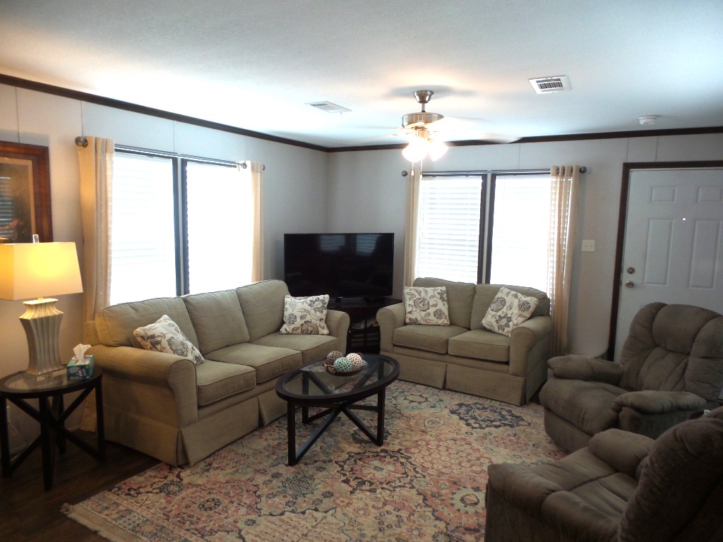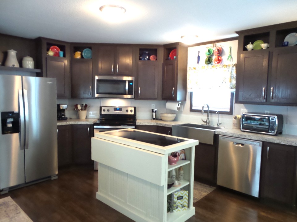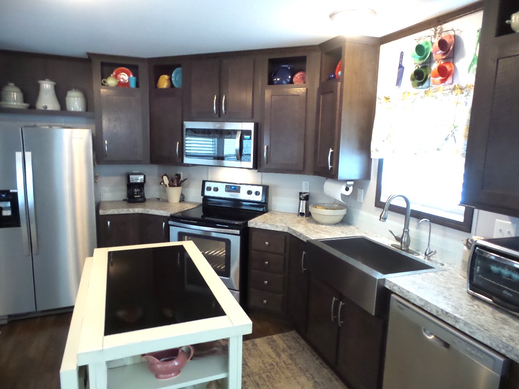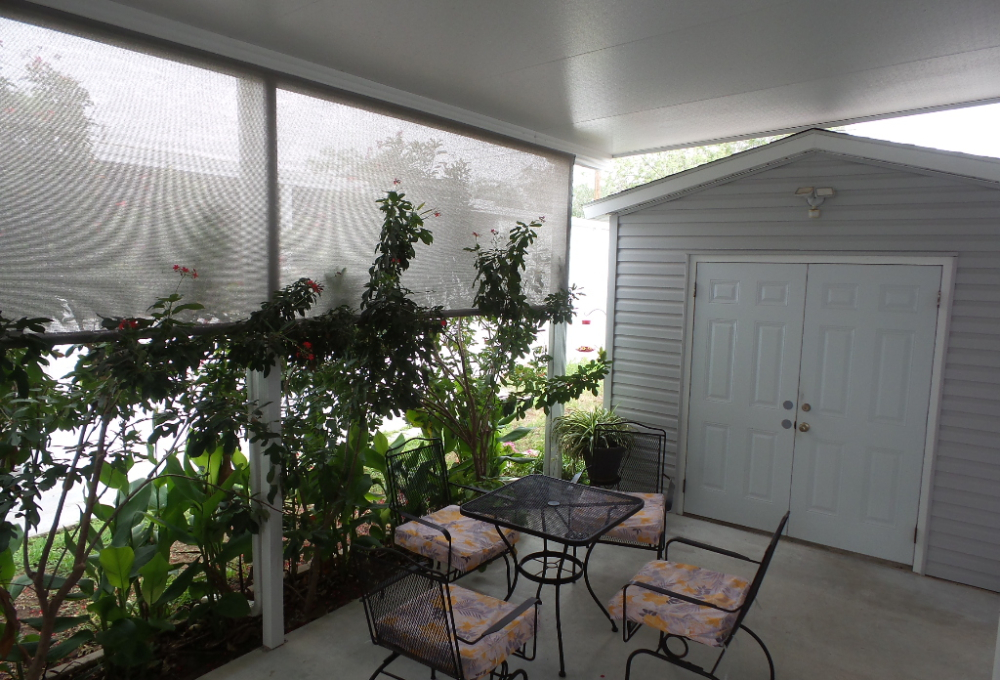 2018 Champion 2-bedroom, 2-bathroom 16x70’ (1120 sq ft) Manufactured home with Front deck, patio & workshop/shed. Welcome to this tropical oasis & guests to join you on the raised front deck to enjoy beverages, with a SE breeze. The front door opens into the Livingroom with sofas & 2 recliners surrounding the area rug & an abundance of natural lighting. The open concept continues into the Kitchen with a centered granite topped island adding more storage to the kitchen cabinets & counterspace. New/newer electric appliances include the disposal, dishwasher, flat-top range & overhead microwave plus the S/S fridge. R/O & a farm sink are great features as well as the drop-leaf table overlooking the patio. Along the hallway is the office/guest room with an extra storage closet. The main bathroom has a T/S & is adjacent to the back door & W/D nook. At the back of the home is the Master ensuite bed/bathroom. A matched Q bedroom set includes several dressers & Nite stand. The bathroom has dual sinks & a multi-luxury level shower bar, plus the walk-in closet! The dbl insltd. carport is X-wide x 50’ including the latticed private patio area in front of the dbl door shed. The shed includes a patio fridge, water softener, full home filtration & updated W/H. Behind the home/shed is the butterfly garden attracting numerous monarchs & purple martins too. This home has nice laminate flooring, thermal windows, insulated steel roof, new appliances, sun screened patio, ceiling vented & so much more to offer! Call Rita at 712-281-9862!!