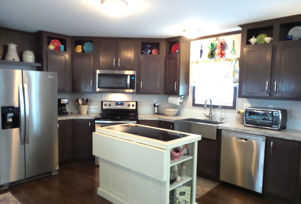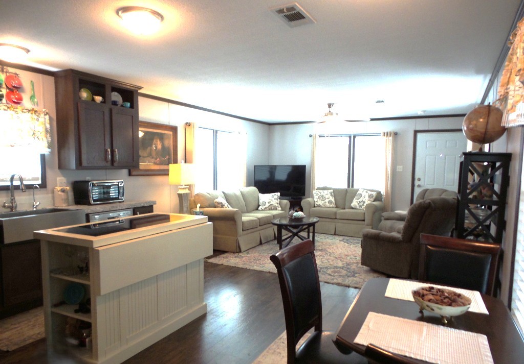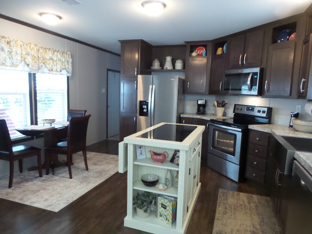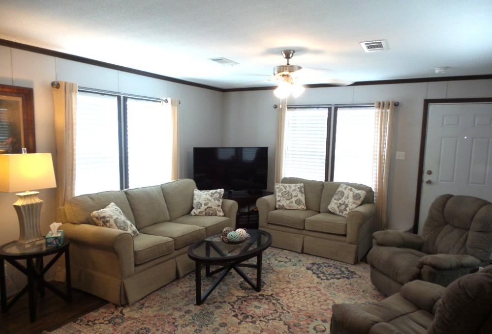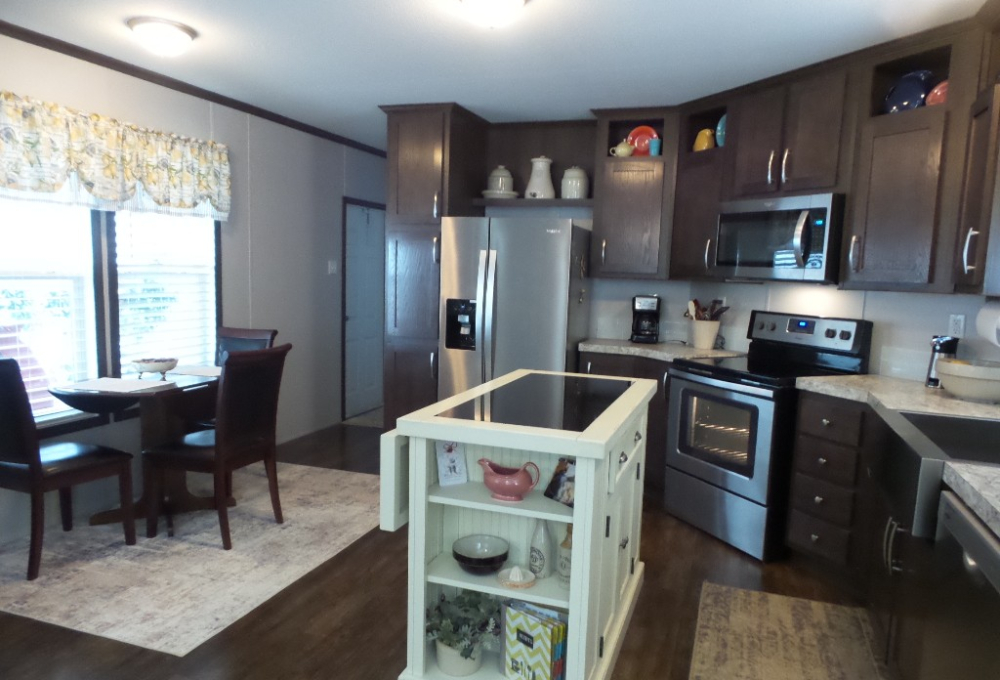 2018 Champion 2-bedroom, 2-bathroom 16x70’ (1120 sq ft) Manufactured home with Front deck, patio & workshop/shed. Welcome to this tropical oasis & guests to join you on the raised front deck to enjoy beverages, with a SE breeze. The front door opens into the Livingroom with sofas & 2 recliners surrounding the area rug & an abundance of natural lighting. The open concept continues into the Kitchen with a centered granite topped island adding more storage to the kitchen cabinets & counterspace. New/newer electric appliances include the disposal, dishwasher, flat-top range & overhead microwave plus the S/S fridge. R/O & a farm sink are great features as well as the drop-leaf table overlooking the patio. Along the hallway is the office/guest room with an extra storage closet. The main bathroom has a T/S & is adjacent to the back door & W/D nook. At the back of the home is the Master ensuite bed/bathroom. A matched Q bedroom set includes several dressers & Nite stand. The bathroom has dual sinks & a multi-luxury level shower bar, plus the walk-in closet! The dbl insltd. carport is X-wide x 50’ including the latticed private patio area in front of the dbl door shed. The shed includes a patio fridge, water softener, full home filtration & updated W/H. Behind the home/shed is the butterfly garden attracting numerous monarchs & purple martins too. This home has nice laminate flooring, thermal windows, insulated steel roof, new appliances, sun screened patio, ceiling vented & so much more to offer! Call Rita at 712-281-9862!!
