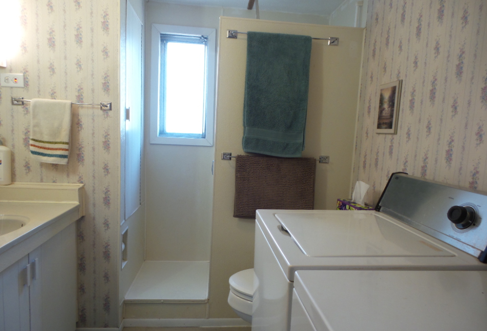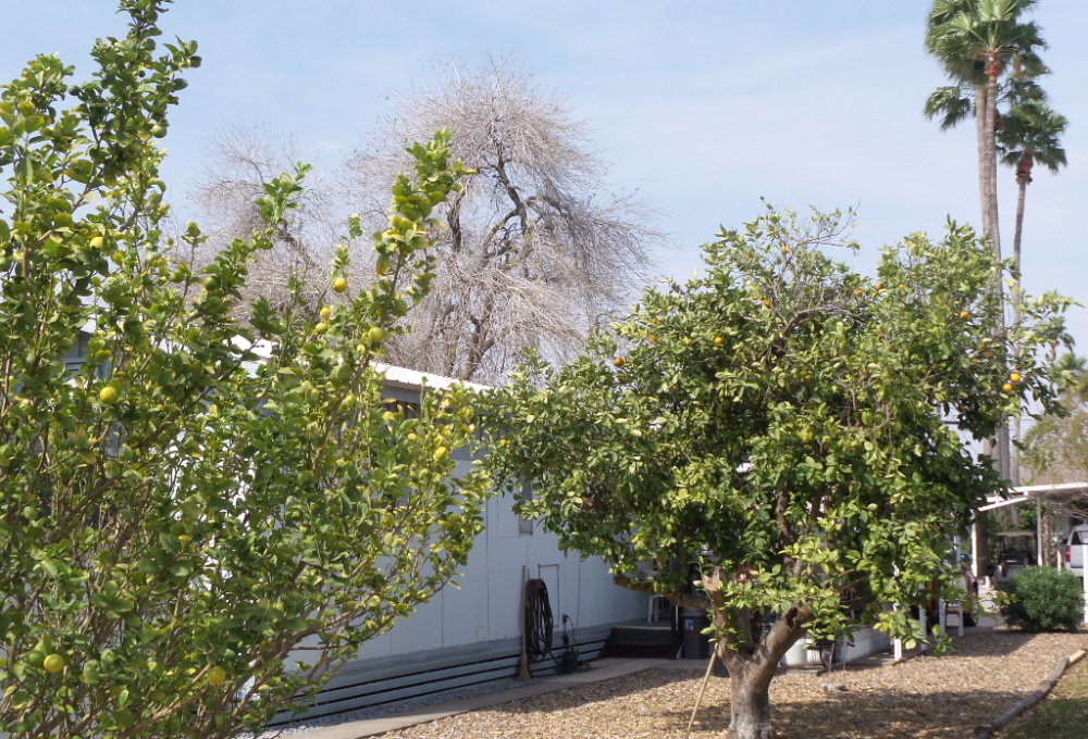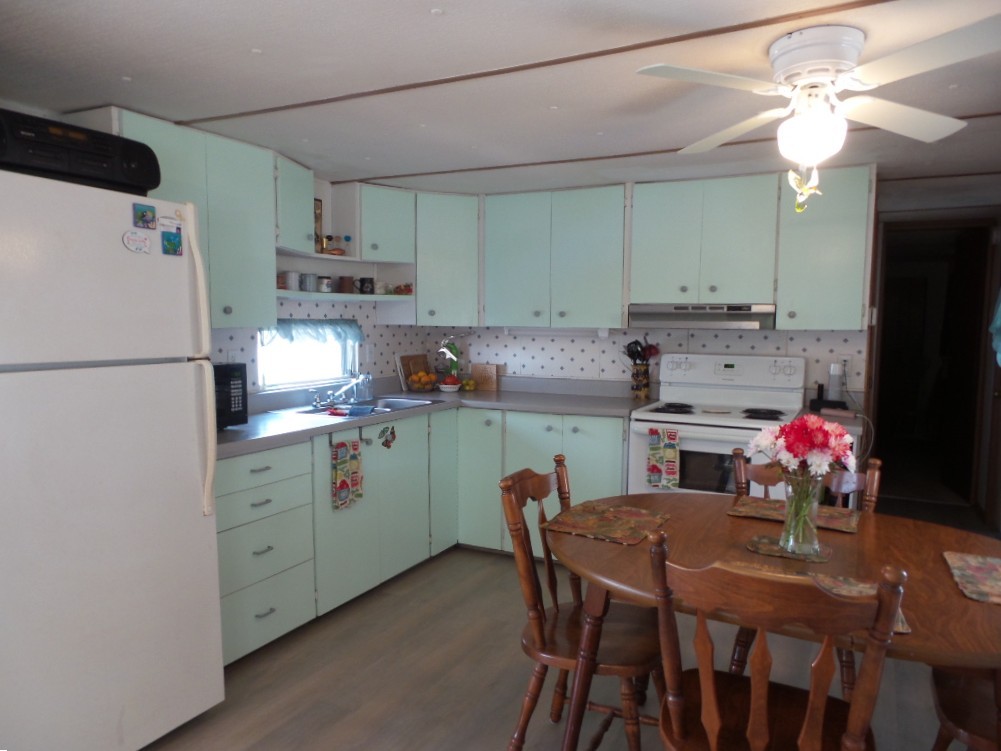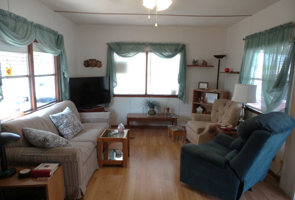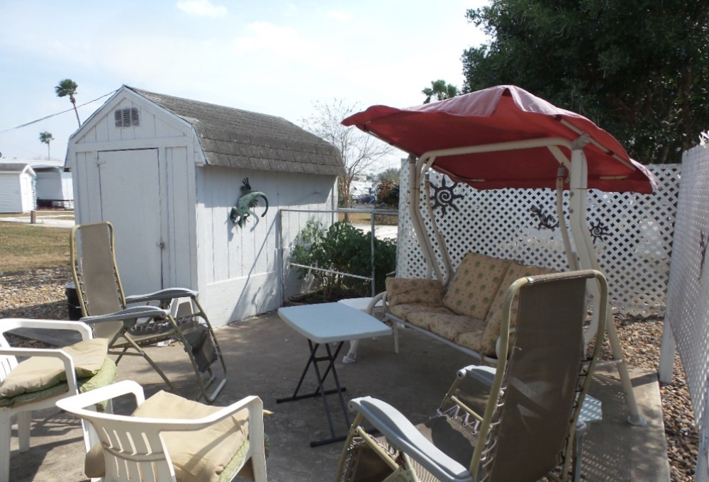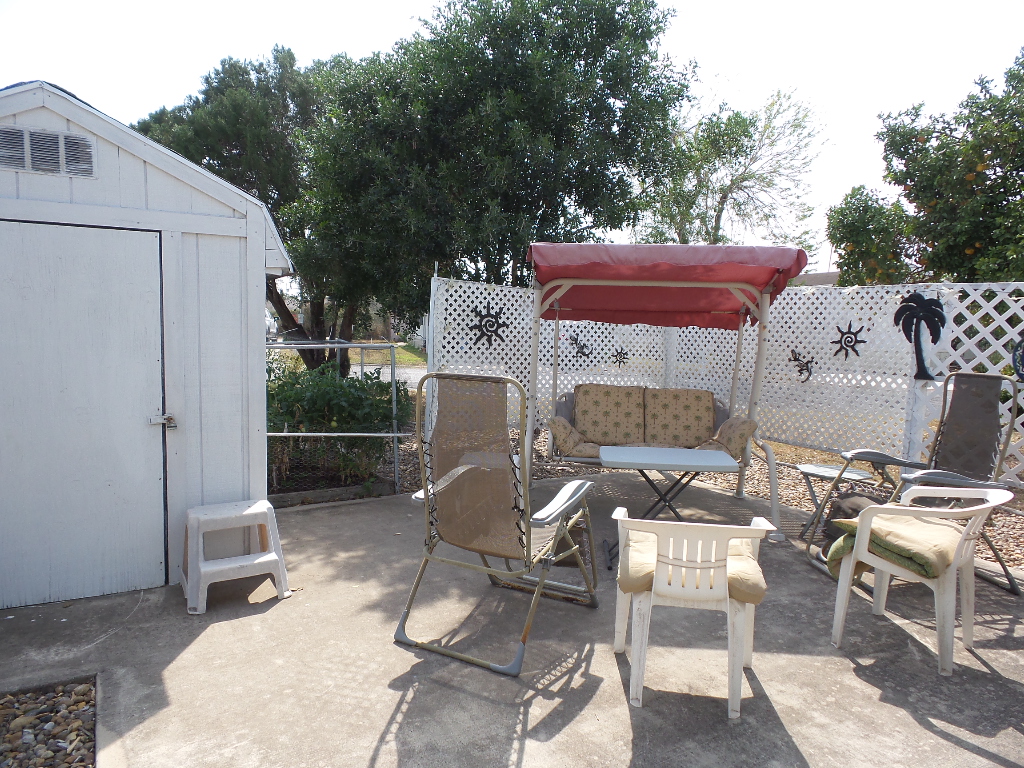 Driving up you are welcomed by a newly carpeted 16x10’ deck, complete with patio furniture, a beverage fridge & BBQ grill on the patio. The sliding door enters the wood laminate front Livingroom with a panoramic view, recliners & a sofa with TV. An open concept dining room is convenient for the updated kitchen appliances, countertops & painted cabinets. Brand new flooring stretches thru, the kitchen, bath & hallway. The W/D is within the bathroom featuring a new vanity, stool & walk-in shower. The Q bedroom is at the back of the home with dual closets, including a freezer within the one. Built-in cabinets & a vanity/desk area provide options within the bedroom. A second private-latticed patio area is behind the house with great views of the rock yard, orange & lime tree. A shed/workshop is at the back of the XL lot with no neighbors. This quaint home is low maintenance with a steel roof, numerous updates in appliances & flooring plus fully furnished. Tours call Rita at 712-281-9862