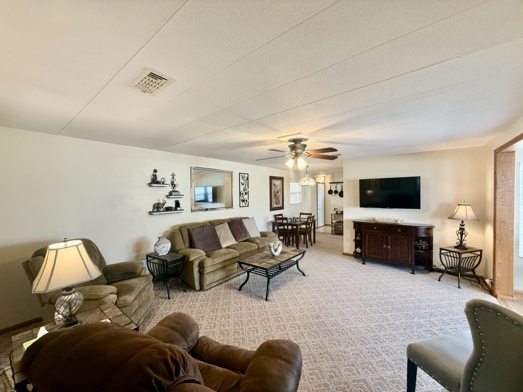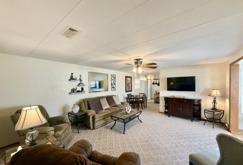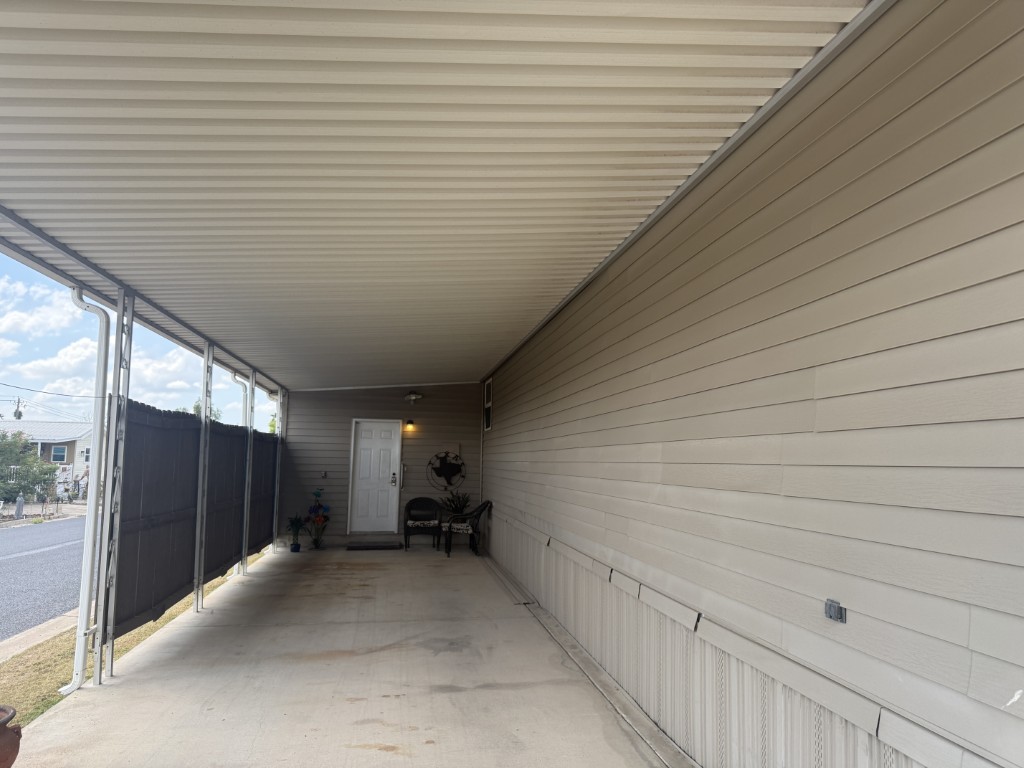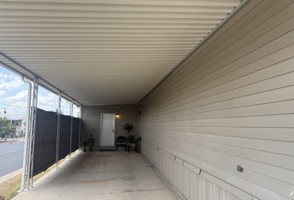 A spacious 11 x 44-foot sun-shaded carport provides ample covered parking and connects directly to a 10 x 20-foot workshop that is fully equipped with electricity, extensive storage, and convenient access to the interior of the home. On the opposite side, an 11 x 16-foot covered patio adjoins the Texas room, creating an ideal space for relaxation or entertaining guests. The residence comes fully furnished and is move-in ready.