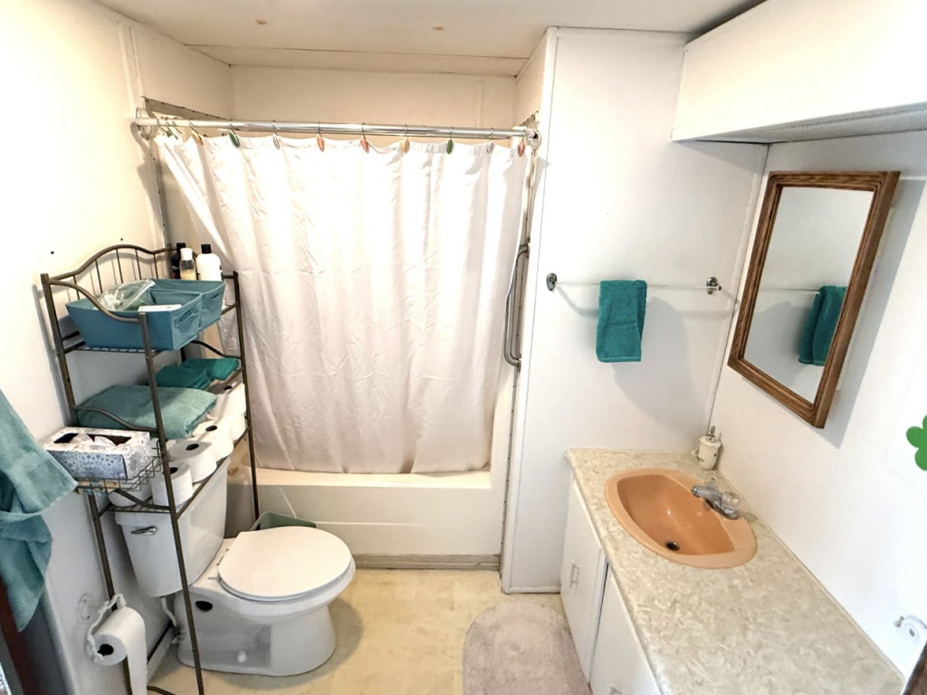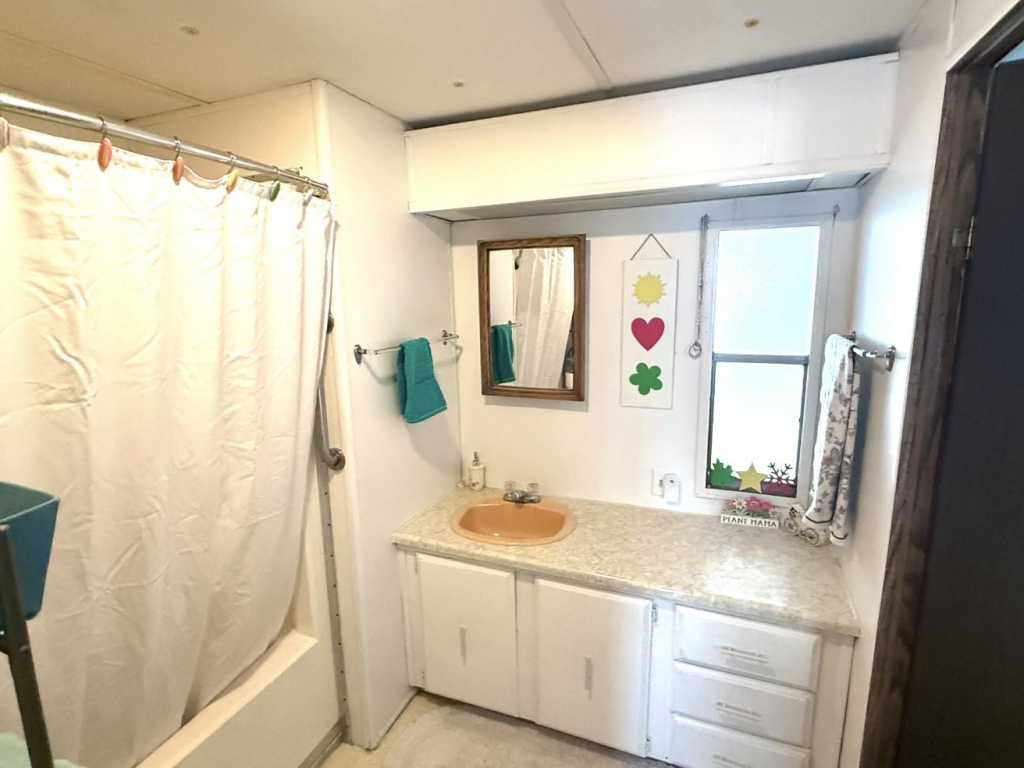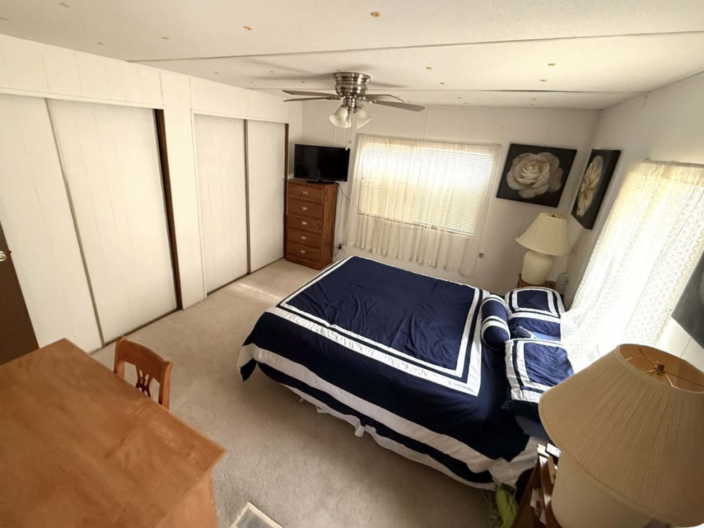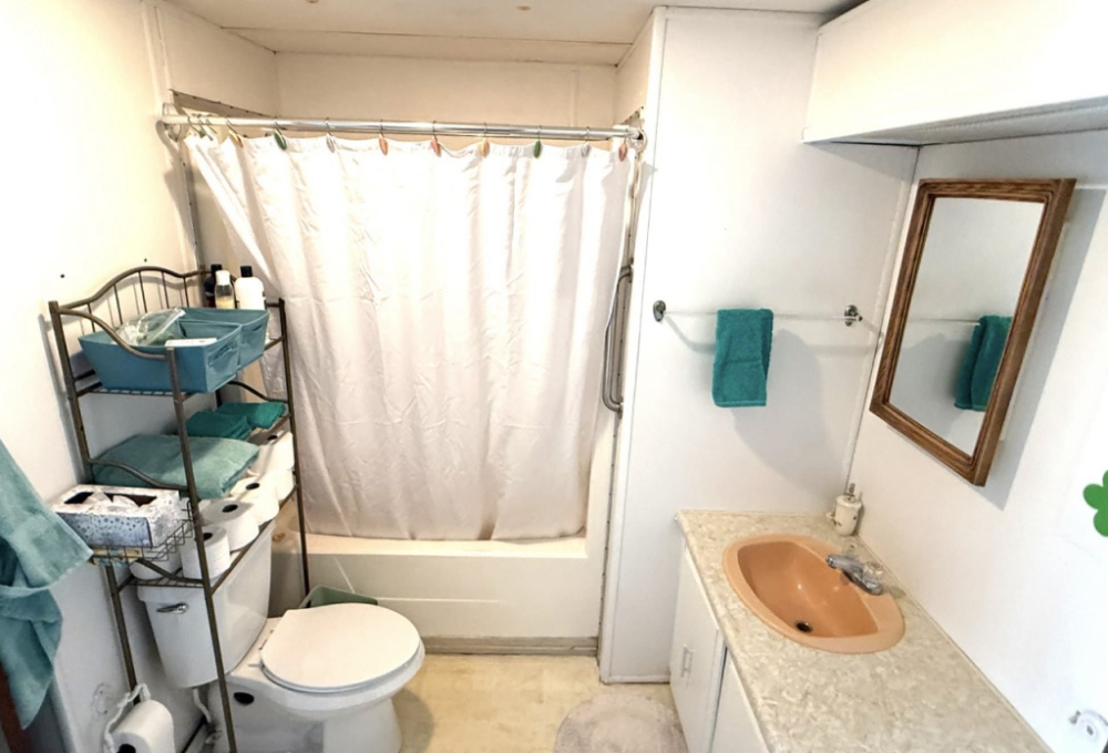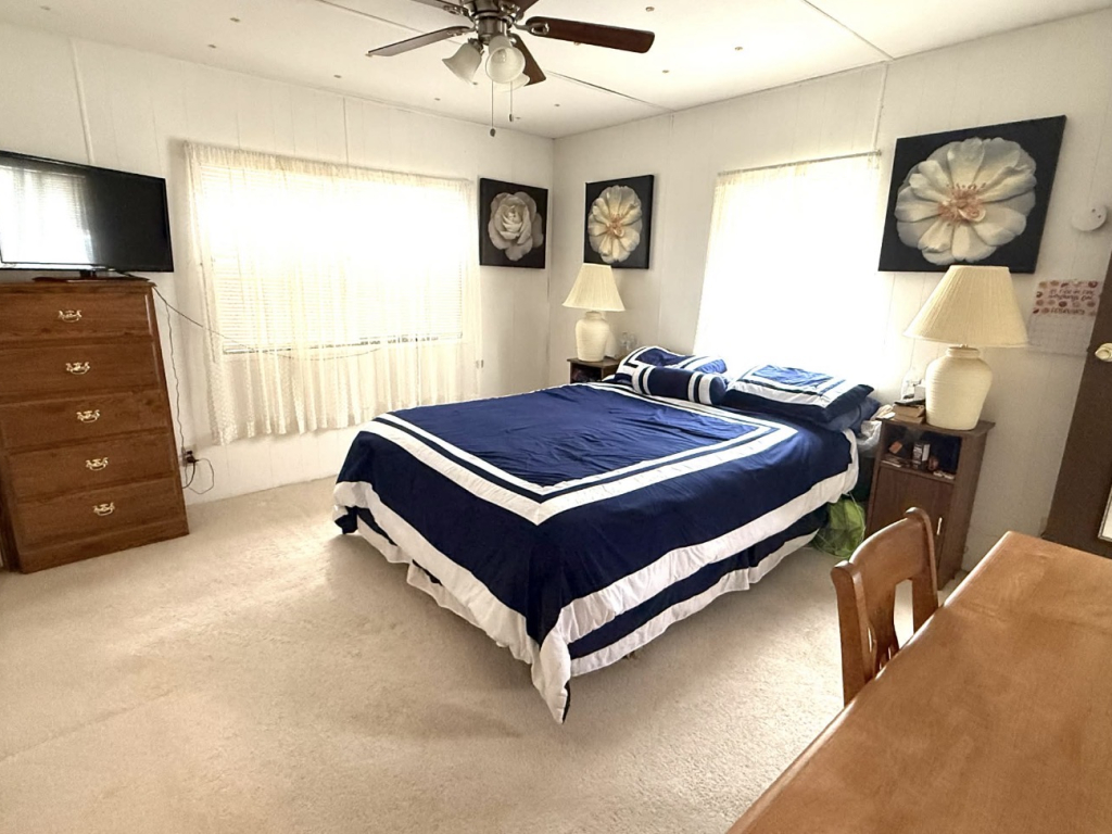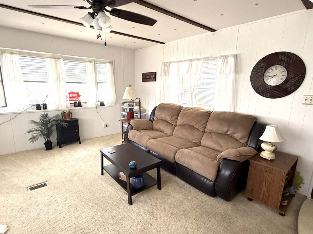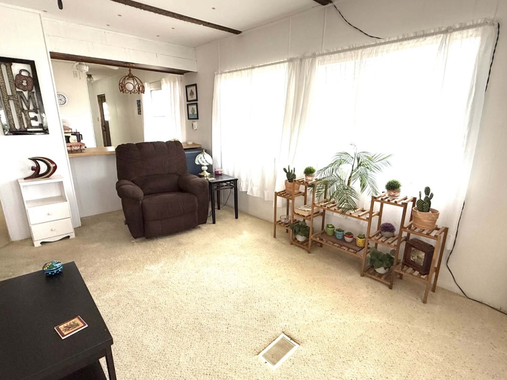 This charming 728 sq. ft. mini mobile home is light, bright, and thoughtfully laid out. The living room is located at the front of the home and flows seamlessly into the dining area and kitchen, creating an open and inviting space.