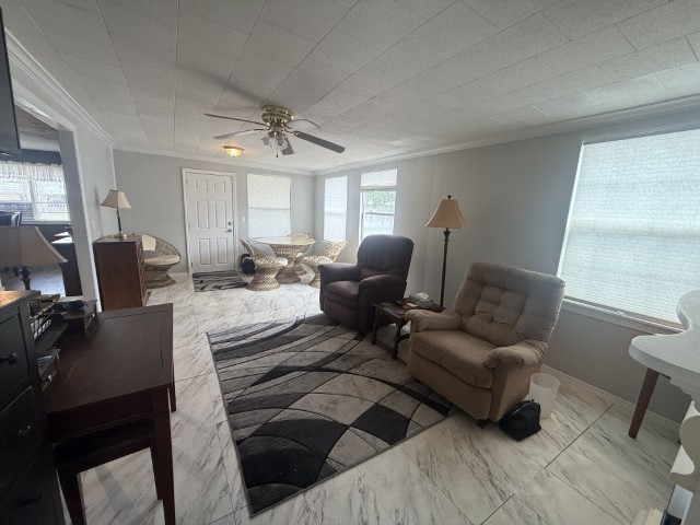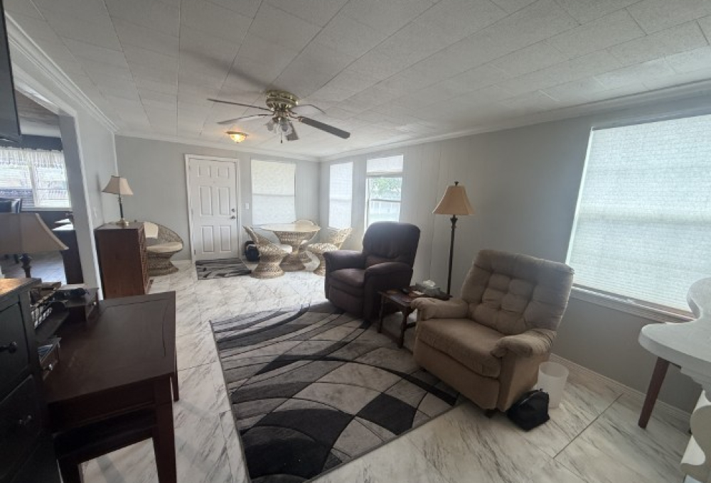 This residence has been tastefully updated with quality improvements in 2026, including a metal roof that has been professionally cleaned, coated, and sealed with a 10‑year warranty. Stylish wood laminate flooring enhances the main living areas, while the Texas room features tile flooring accented by newly added crown molding and custom window sills, creating a polished and elegant atmosphere. The interior has been freshly painted throughout, offering a bright and sophisticated ambiance.
