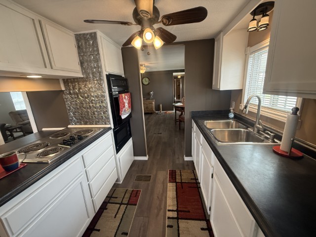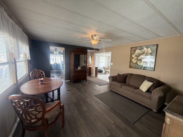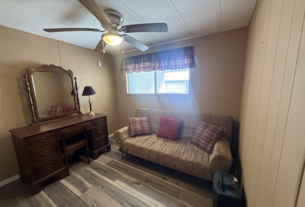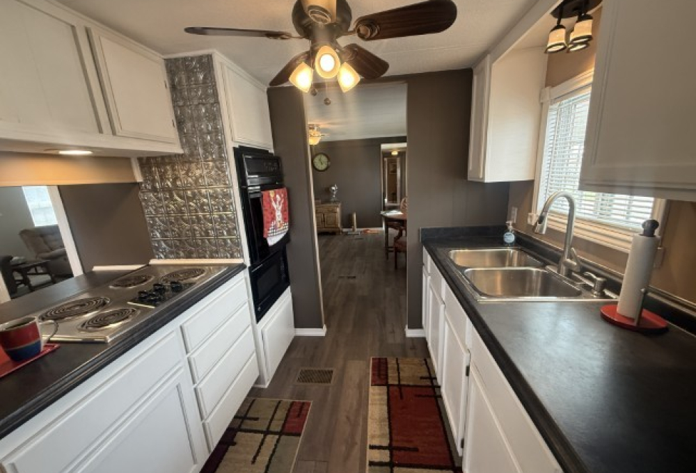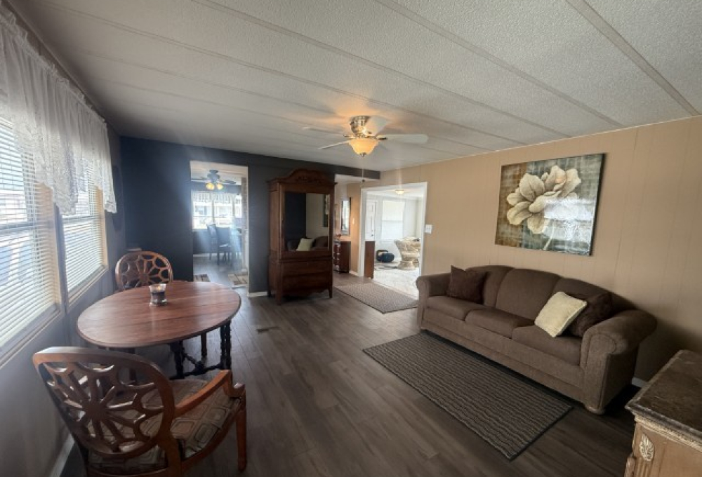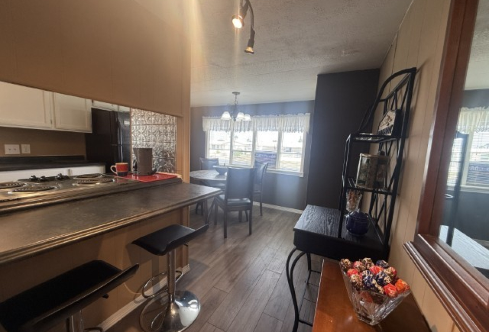 Charming and beautifully appointed 14 x 56, two‑bedroom, one‑bath home with an expansive 11 x 23 Texas room, offering refined comfort and thoughtful design throughout. Ideally situated on an oversized lot in Paradise Resort Estates, a gated 55+ community adjacent to the Tierra Del Sol Golf Course, this home delivers an exceptional resort‑style living experience.