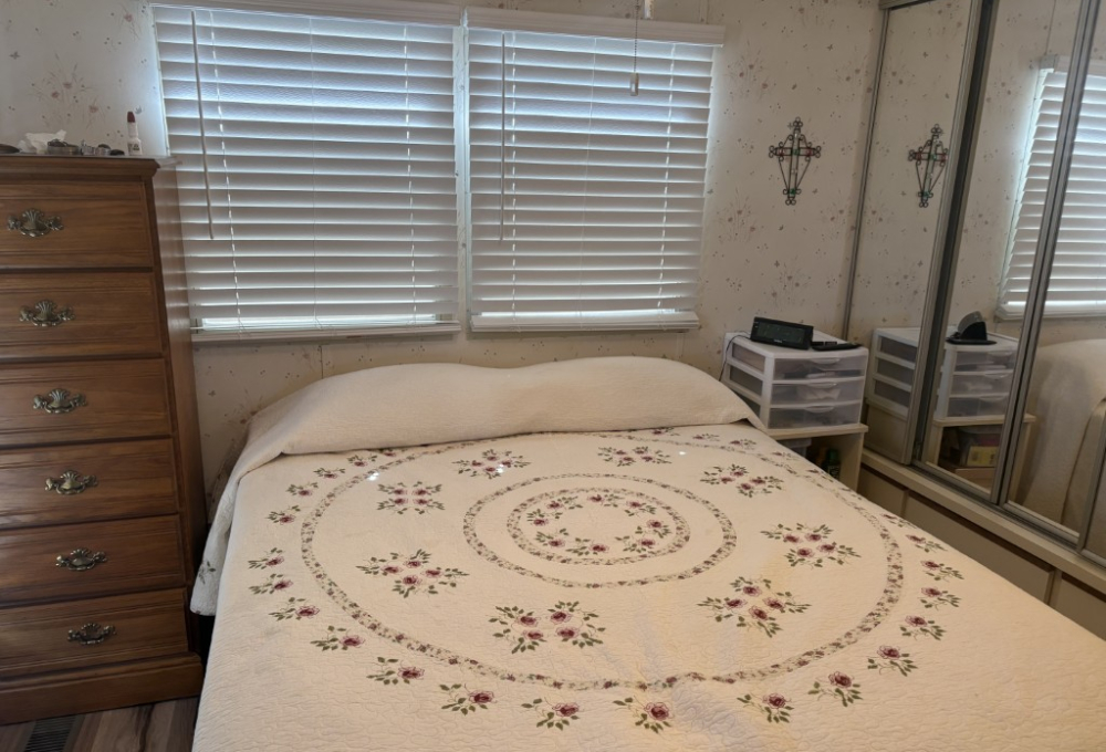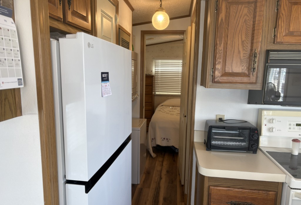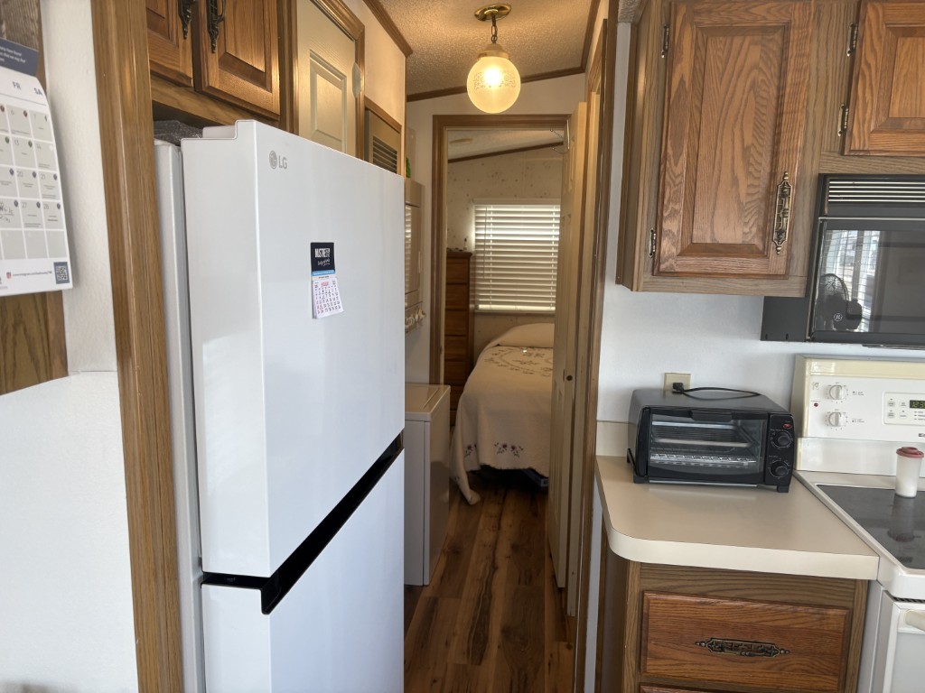 Step into this cozy 1991 Park Model and feel right at home. Light and bright, it features charming wooden slat blinds and thermal windows that fill the space with natural sunshine. Warm luxury vinyl flooring adds comfort underfoot, while the newer refrigerator and electric range make everyday living easy and inviting.