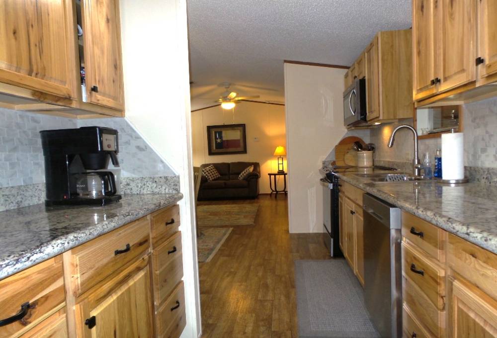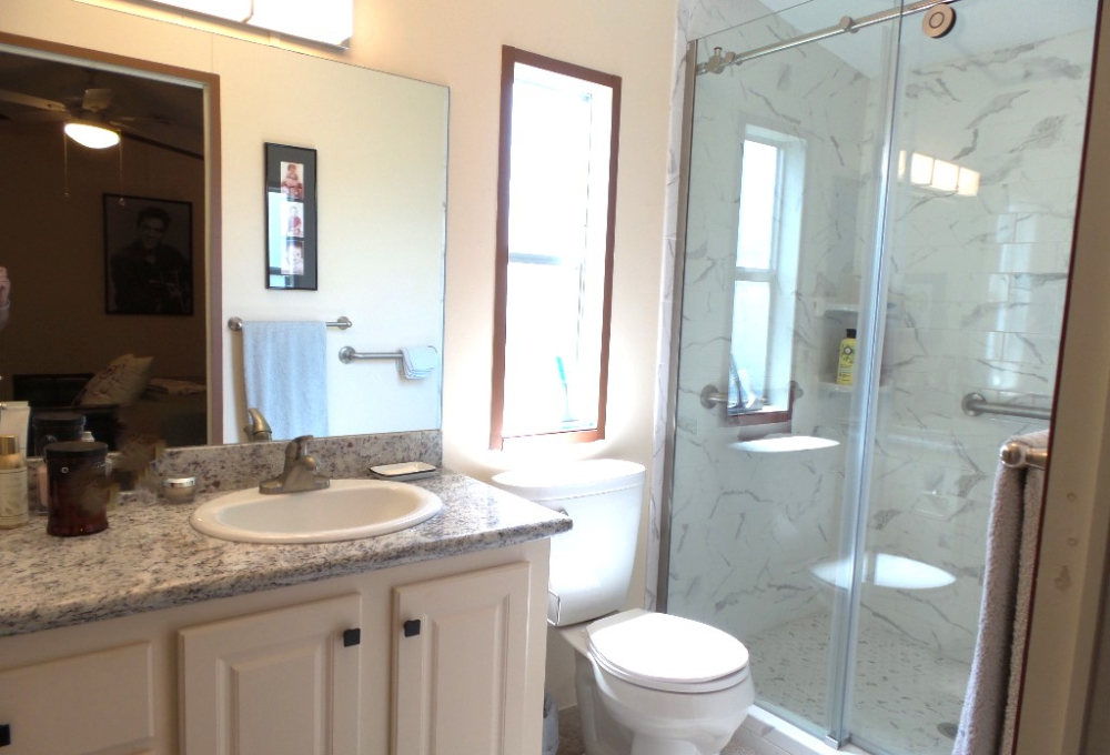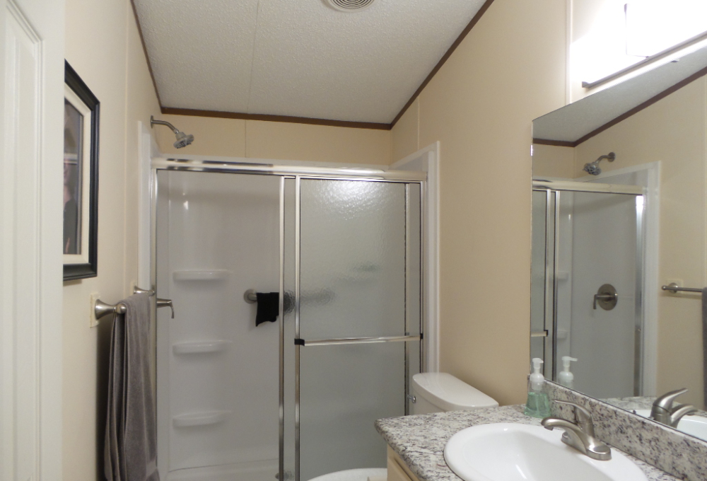 2016 Legacy 3–4-bedroom 2-1/2 bathroom manufactured home with extensive 36x16’ TX addition, ½ bath adding to a total of 1716 sq ft of living space. Located on a back corner lot with tropical plants, rock & lawn, it has privacy & multipurpose spaciousness within! The double insulated & extra wide enclosed carport leads to double French doors, opening into the TX room with knotty pine walls enhancing this room. Extending beyond, is a 12x6’ office area/bedroom/workout/craft room & ½ bath. Up the steps you enter the Livingroom & open-concept dining area with laminate flooring stretching the full area, with newer paint. To the left is the kitchen featuring all granite countertops & tiled backsplash, in addition to all SS appliances adding to the attractive wood cabinetry aligning the walls. The K-sized master bedroom is beyond, at the back of the home, including an en-suite master bathroom, a marble tiled shower, granite vanity, paint & fixtures. The walk-in closet has been reconfigured within as well. The laundry room is tucked near the back door around a corner from the dining area & pantry storage. At the front of the home is a bedroom/office sitting area presently, with extensive storage spaces. The main bathroom is between this room & the second guest bedroom shown with a Q bed, in this unfurnished home, except appliances. The main bathroom also has a granite vanity & a walk-in shower. Returning to the TX addition there is a second front entrance to the home through the A/C cooled screen porch, with additional storage. Providing access to the back yard is an exit door from the TX room, where you’ll see a private oasis, patio area enhanced with large rock/plants, corrugated siding, fenced & a 16x12’ lofted workshop/shed. This home has been fully renovated with all the extras! Plus, it’s energy efficient with a metal roof, sunscreens, a NEW A/C combined unit & window units within the additional rooms/workshop. Please call Rita for a tour @ 712-281-9862!