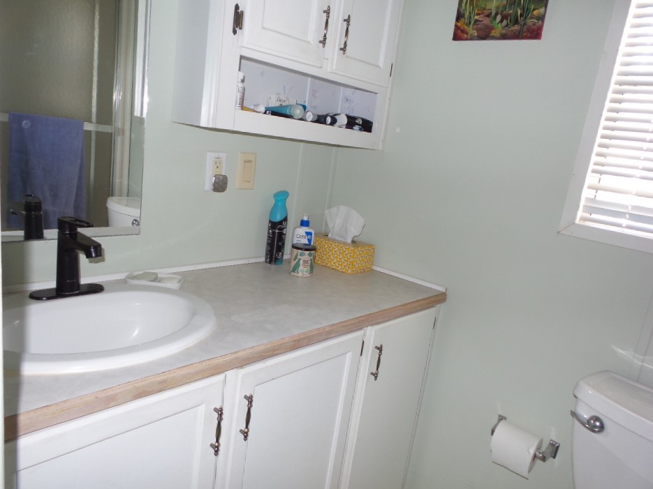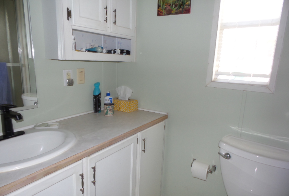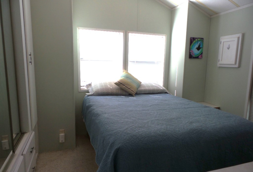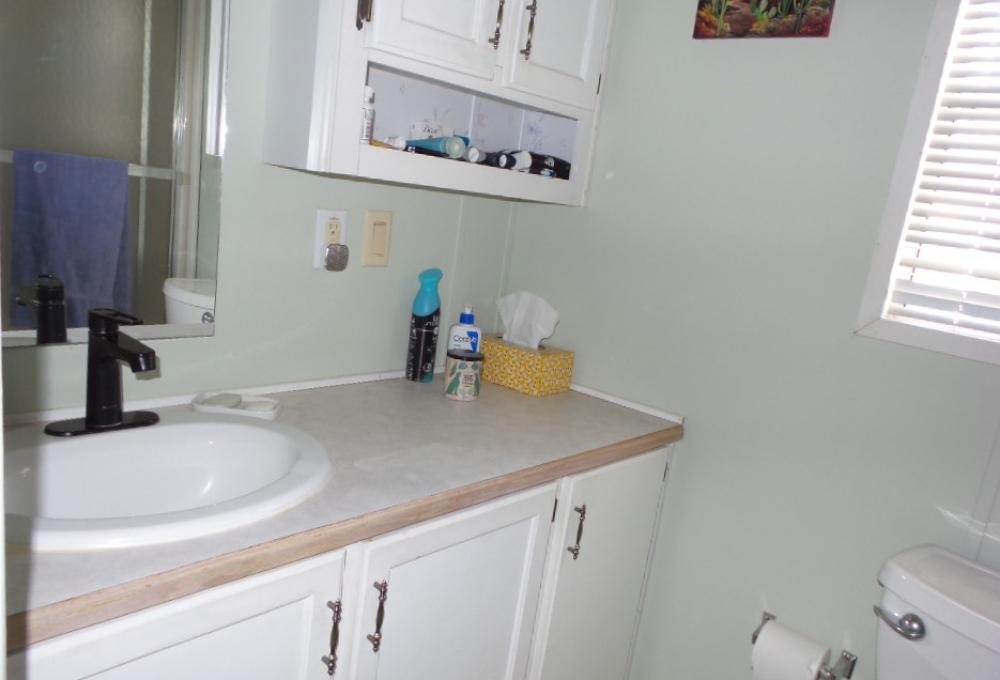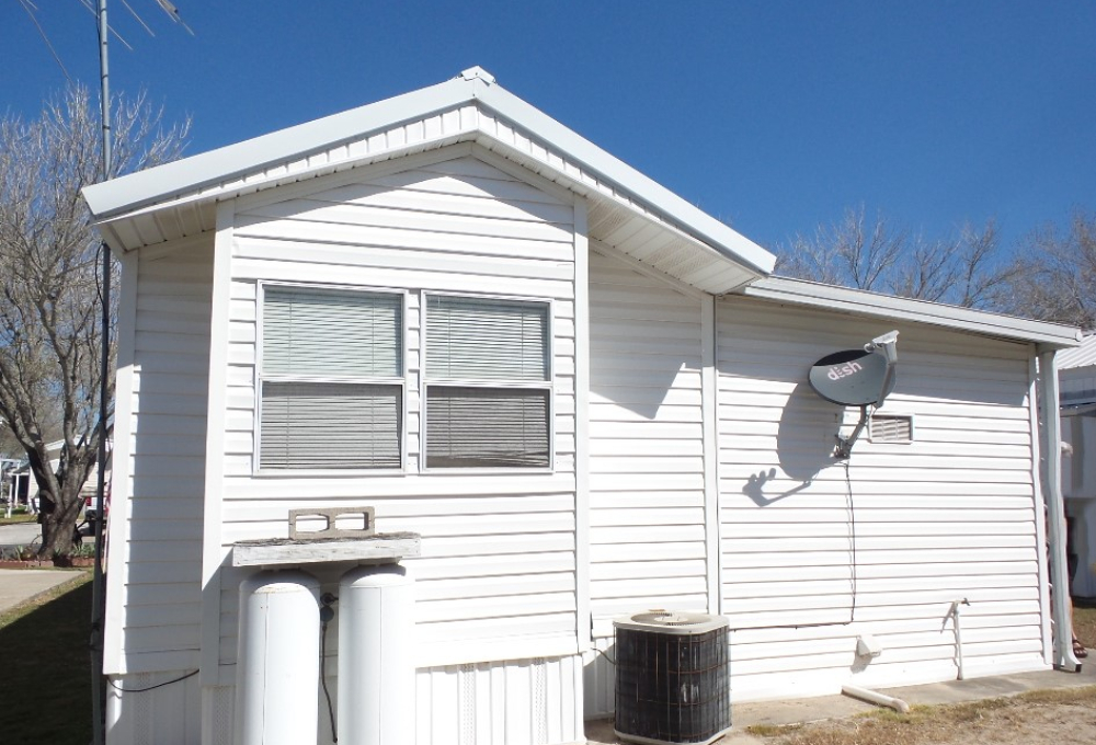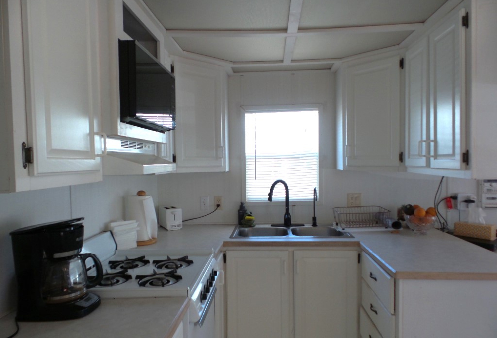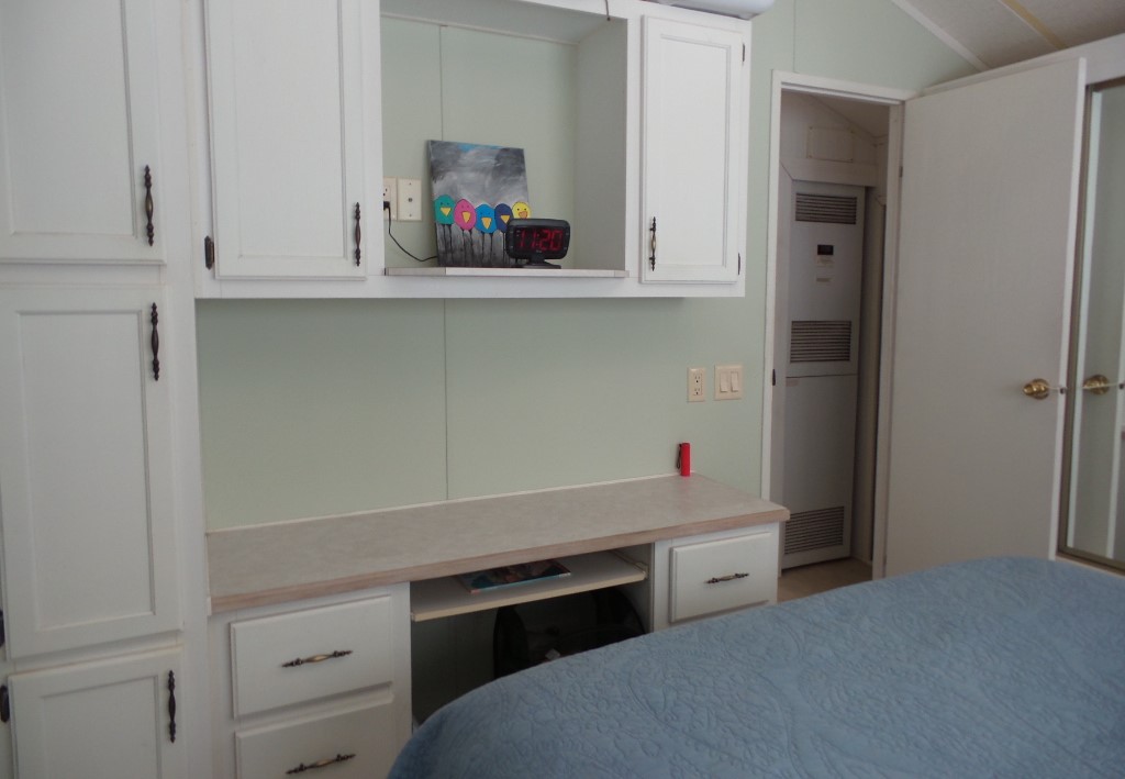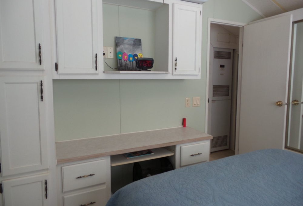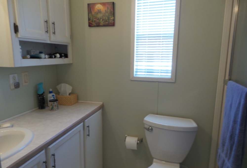 Town & Country 1997 1 bedroom 1 bathroom Park Model 12x33’ (396 sq ft) with a shed & great patio area. Entering the front Livingroom, you note a reclining loveseat facing the wall mounted TV, accessible to the dinette tucked into the bay window. The oak dinette is conveniently located with the galley style kitchen, including a gas stove, microwave, plus the fridge along the hallway adjacent to the pantry. The bathroom has a walk-in shower & linen closet with new fixtures here as well. A back door exit is across from the coat closet with the new quality Q mattress, within the master bedroom at the back of the home. A dresser & extensive closet provide storage. The full-size W/D are within the storage shed. A new steel roof, updated appliances & water heater provide low maintenance & energy efficiency.