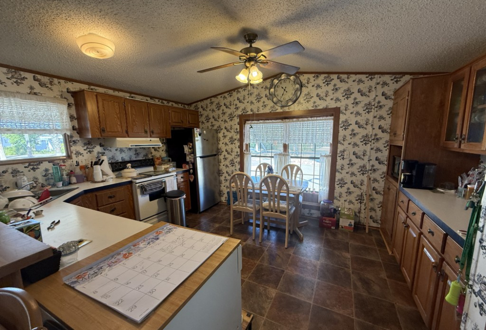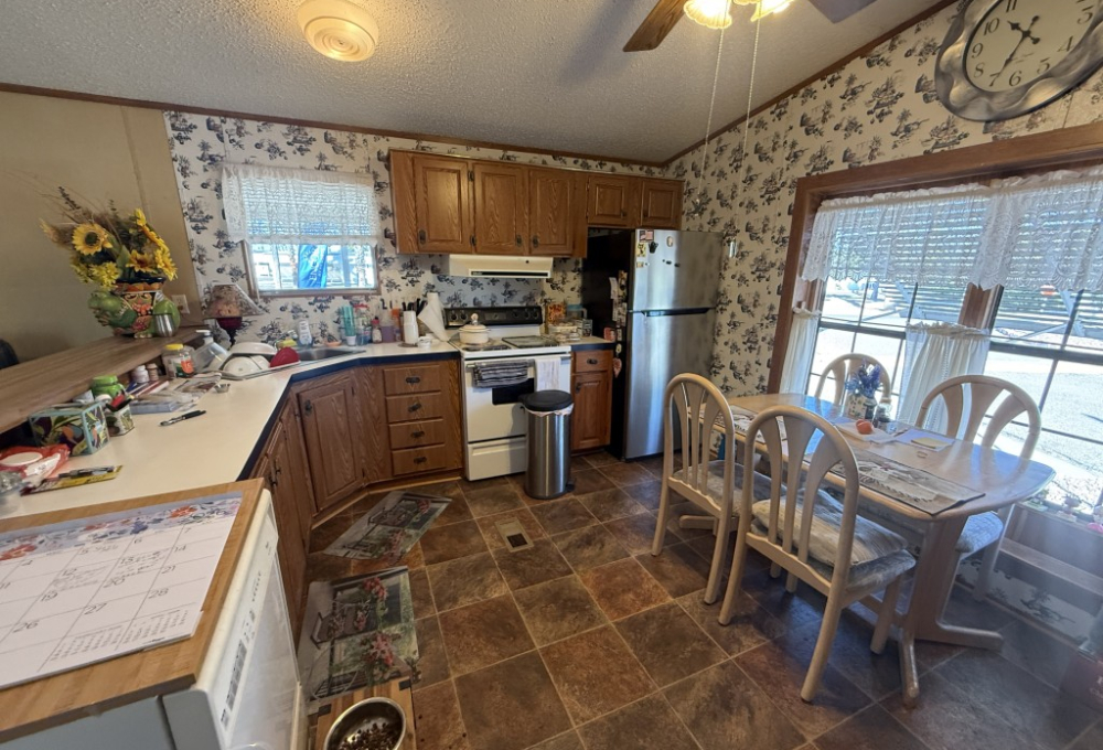 This charming home is situated on a spacious corner lot in a great park and offers both comfort and functionality. The main home measures 16 x 56 and includes an 8 x 27 Texas room, providing additional living space. Outdoor features include an 8 x 12 covered patio with a 5 x 8 deck, perfect for relaxing or entertaining.
