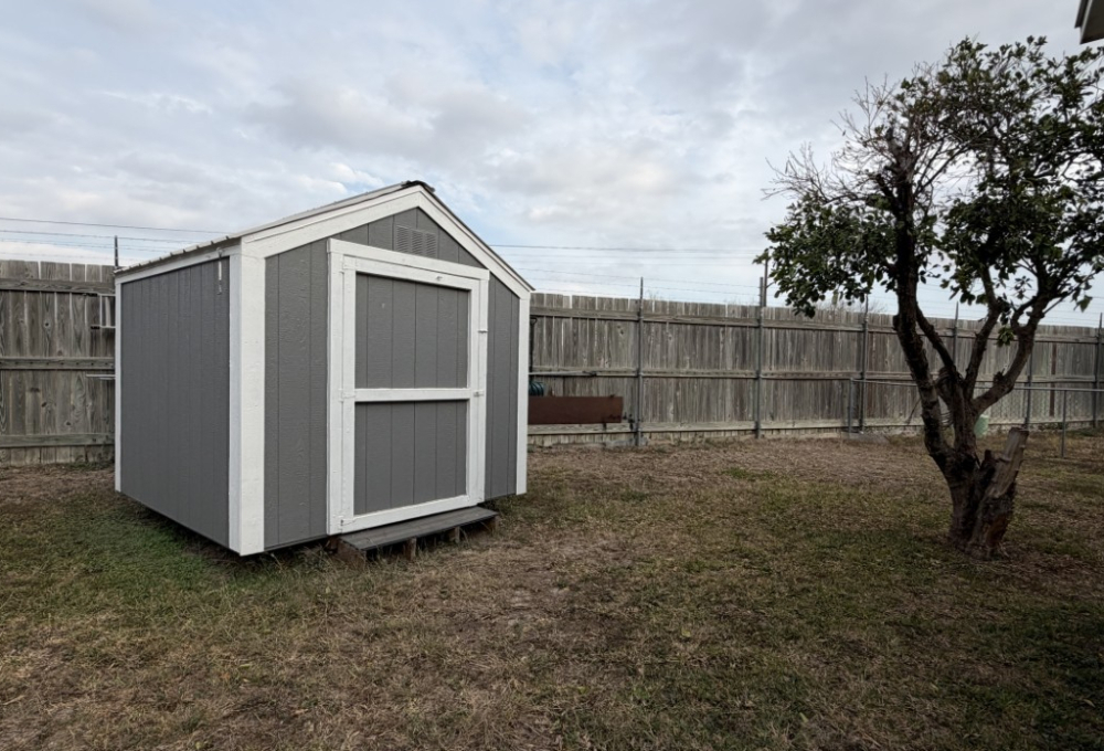 - 8x8 storage shed in the backyard, plus a 10x12 workshop attached to the home
