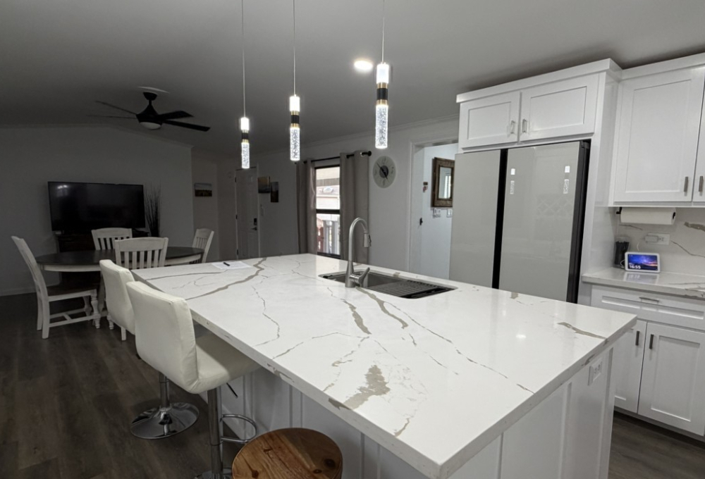 Completely remodeled in 2024, this stunning 1989 SOLITARE home offers 992 sq ft of comfortable living space (16x62), featuring 2 bedrooms and 2 bathrooms. A spacious 15x25 Texas room (325 sq ft) provides additional versatility.