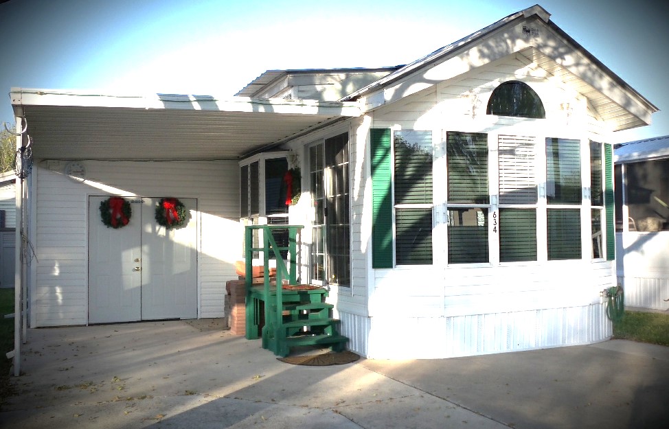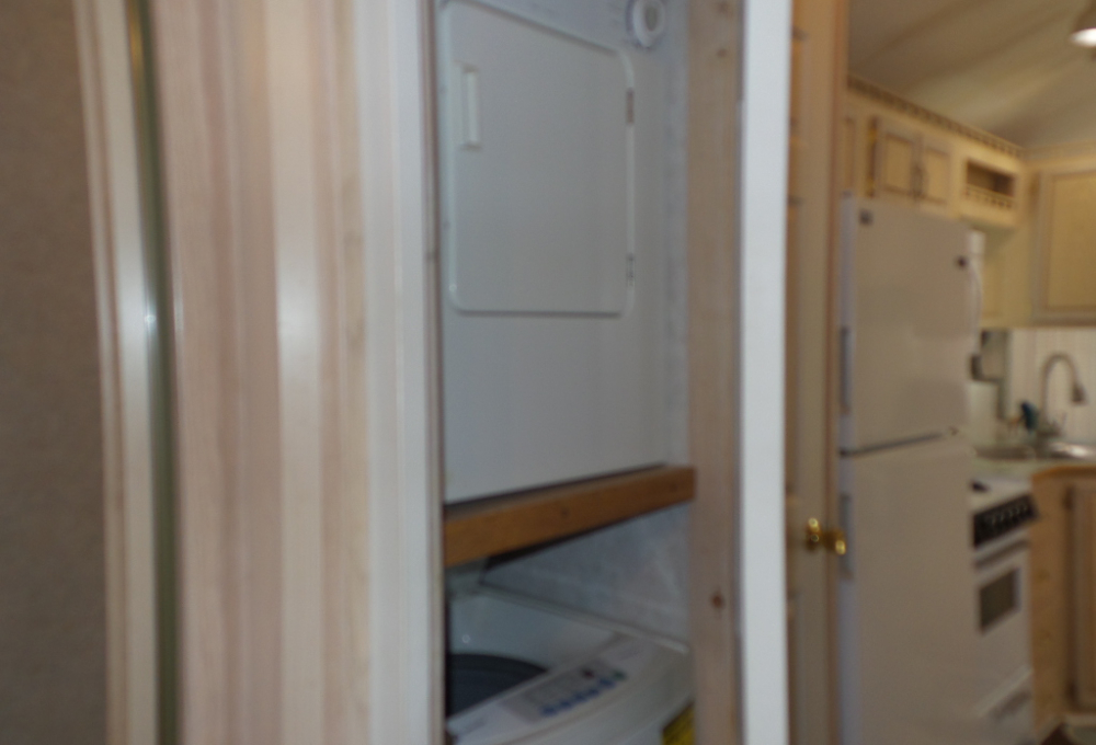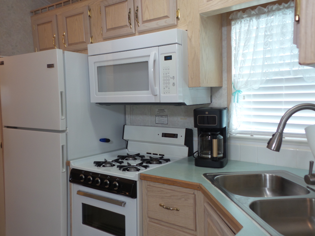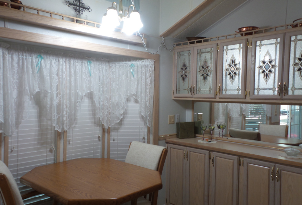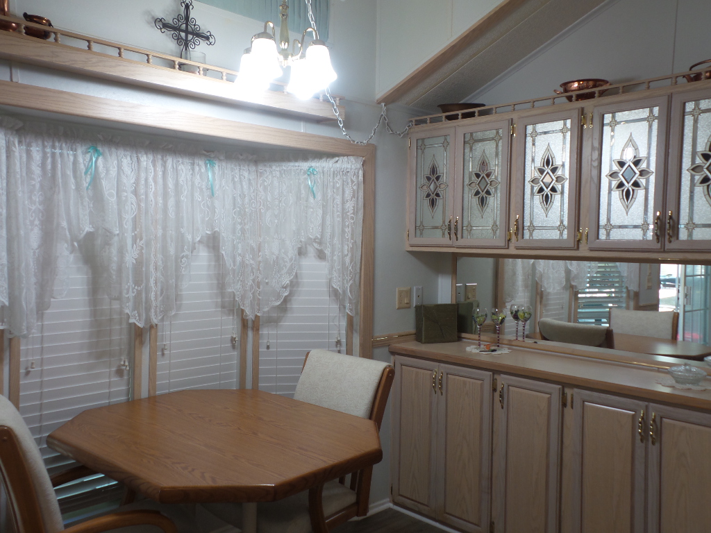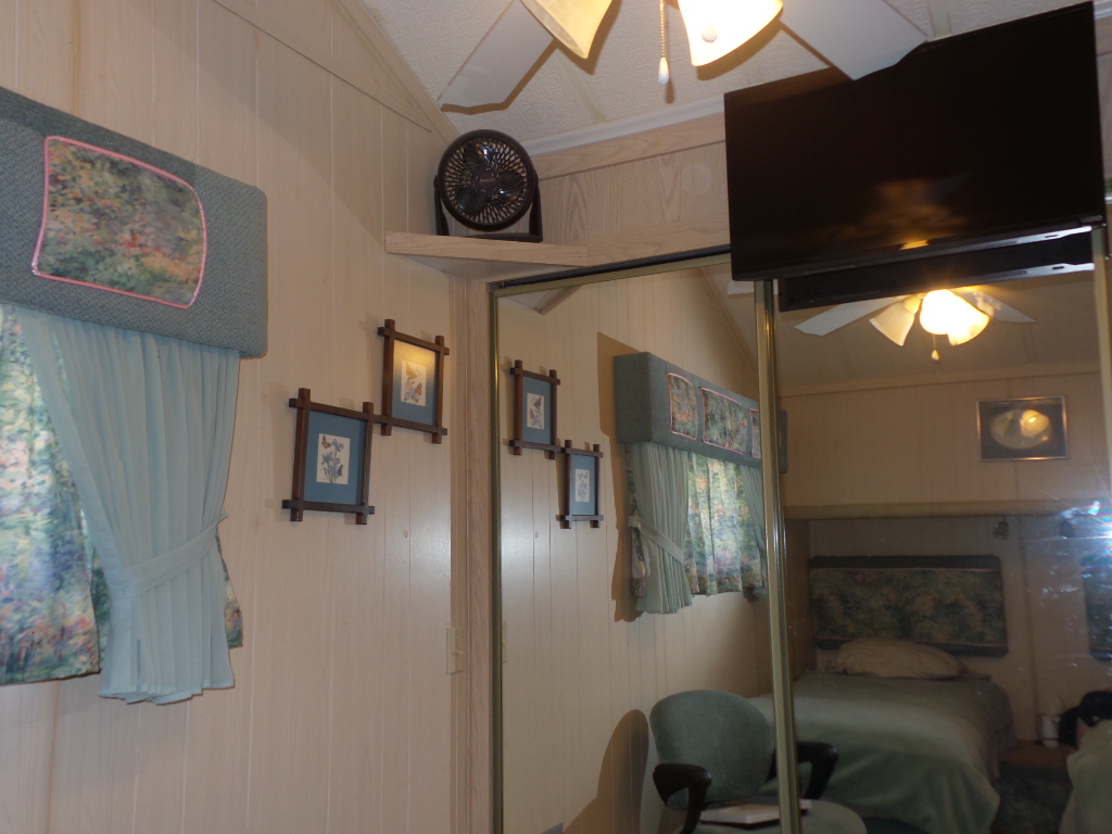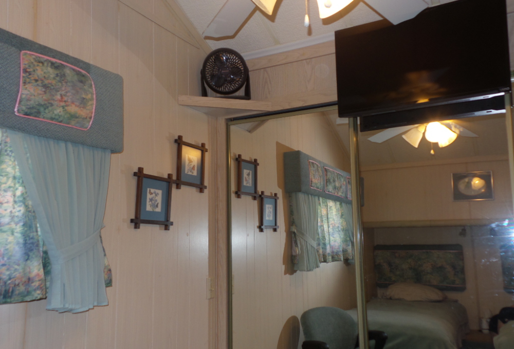 2000 Dutch 33x12’ (396 sq ft) Park Model, with 1 bedroom and 1 bathroom, plus an 18x12’ workshop. Numerous updates and customization have been lovingly added to this home. As you drive up the driveway, you notice the added cement providing room for extra parking and a golf cart. The covered area allows space for enjoying the patio and double doors to the workshop (containing the water heater) and storing a golf cart. Painted steps lead to the sliding patio door entrance to the Livingroom with high ceilings, color coordinated drapery, recliners facing the wall mounted tv, above a custom desk and new shuttered window. Tinted windows and blinds control the natural light, adding airiness to this open concept room, with a dinette in the bay window, convenient built-in cabinets line the wall and an L shaped kitchen features a newer Maytag fridge, microwave, updated kitchen faucet & the gas range. A pantry is adjacent to the stacked, newer washer and dryer set, across from the bathroom entrance. An updated walk-in shower (with handrail), hi-rise stool and extra white cabinets add to the bathroom renovations. To the back of the home is the twin beds or choose a Q bed arrangement with underbed storage, new lighting, a large, mirrored closet and drawers beneath, with a TV mounted above. The home features new laminate flooring, a metal roof with warranty, vinyl siding, an updated water heater and air conditioning, as well as several appliances. It has extra added insulation and new windows for energy efficiency. Established trees provide shade and mowing/w/s are included. Come golf and enjoy the amenities…….Call Rita at 712-281-9862 for a tour!