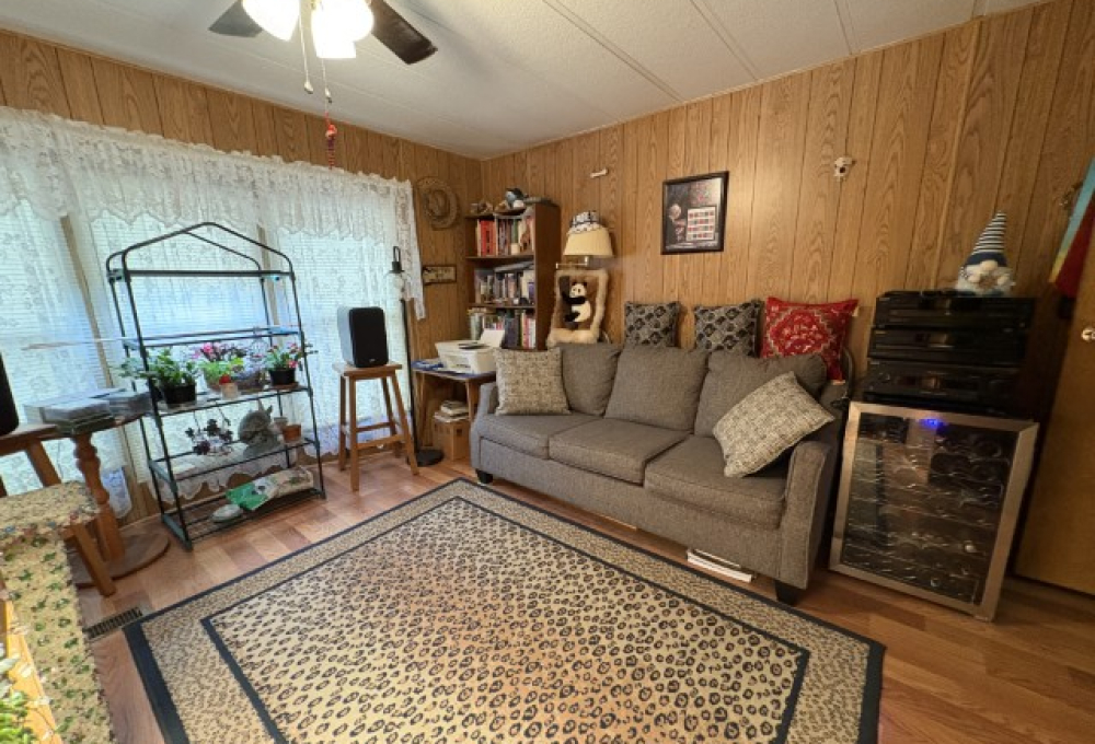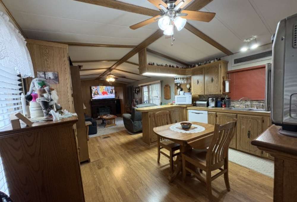 In a friendly 55+ gated community, just a short walk from all the amenities, sits a well-cared-for 1983 Cameron Model that's truly move-in ready. This fully furnished, all-electric home welcomes you with laminate flooring and an open-concept layout that feels bright and comfortable from the moment you step inside. The spacious kitchen, updated with a new stove and overhead vent in 2025, is ready for everyday meals and easy conversation.