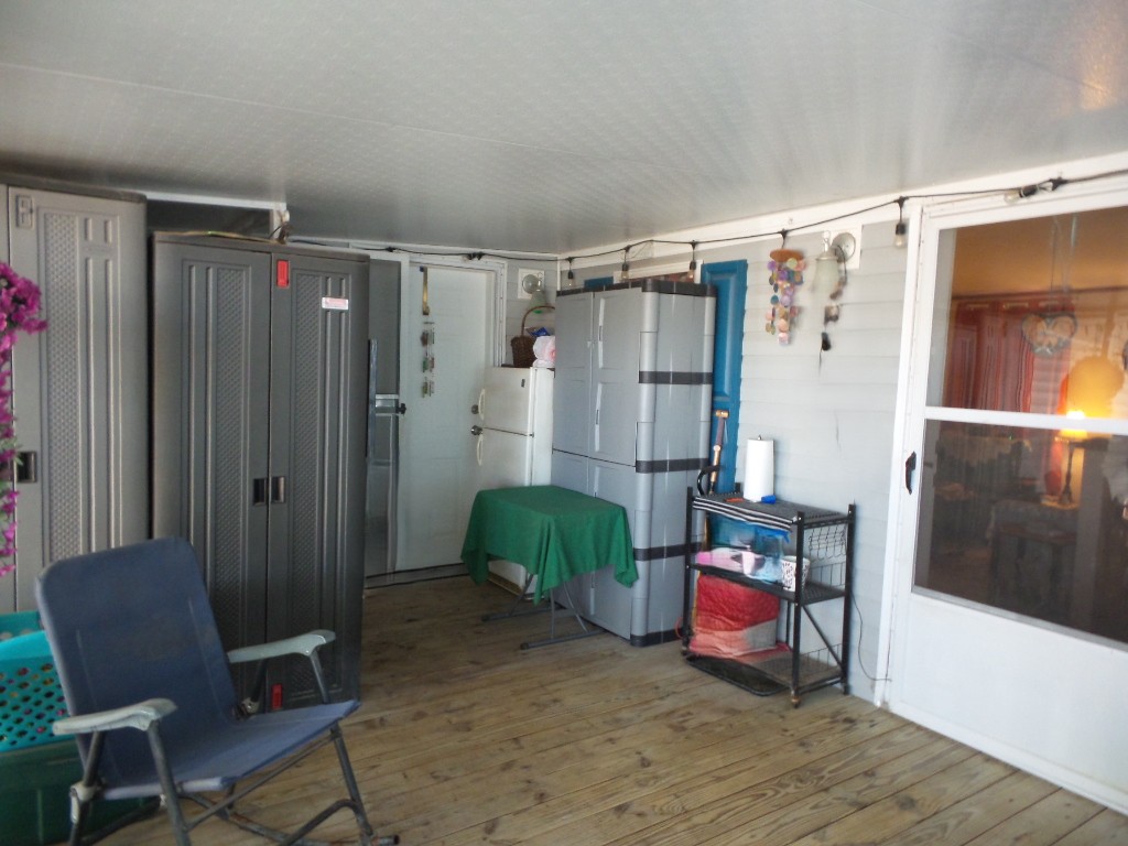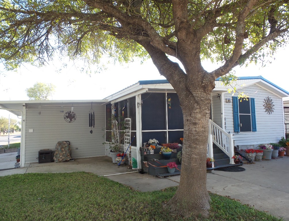 2010 Cavco 1 bedroom, 1 bathroom Manufactured home 14x38’ (507 sq ft) plus 231 sq ft=738 of living space with the Tx Room. Outdoor living is enjoyable with a screen porch, located on a corner lot providing entertainment options & BBQ on the patio. On the side street is access to the workshop/golf cart garage & a raised laundry area, plus an additional storage shed. Double parking on the N side with 2 access doors to the home from the screen porch. To the R is entry to the Livingroom with wood laminate flooring. A front kitchen features SS appliances including a dishwasher & gas range, surrounded by ample cabinets. A dividing counter with overhead lights separates the Livingroom with a sofa for TV watching. The bathroom has a walk-in shower & extra cabinets behind the door. An updated vanity features a marble sink. The bedroom at the back of the home has a mirrored closet door with room for your choice of bedroom furniture. A door enters the TX room from the hallway with tiled flooring and 2 huge storage closets along the far wall. A door exits to the screen porch with access to the laundry area within the workshop, with an electric door for the golf cart sold separately. An additional storage shed is attached for more storage. A metal roof, thermal sun screened windows provide economic efficiency, as does the updated 40 gal W/H. Call Rita for a home tour in an active & friendly park @ 712-281-9862!