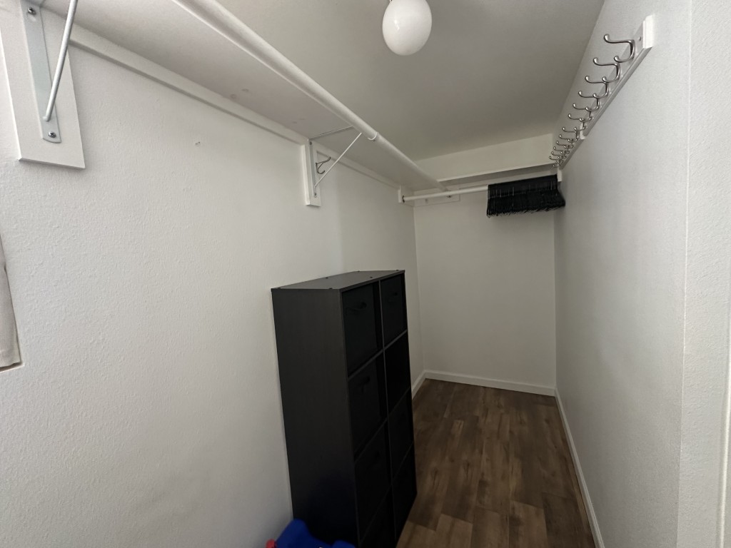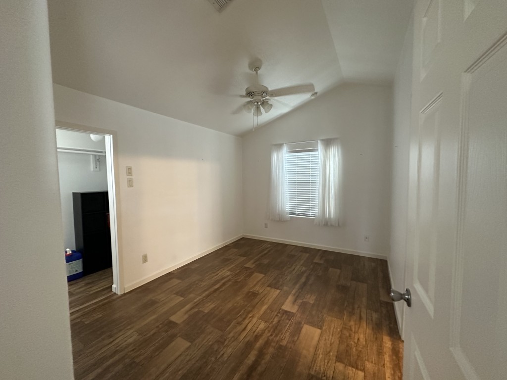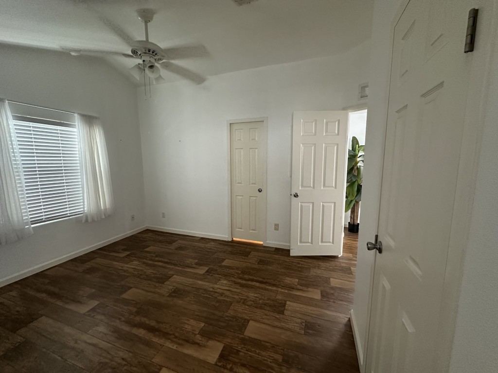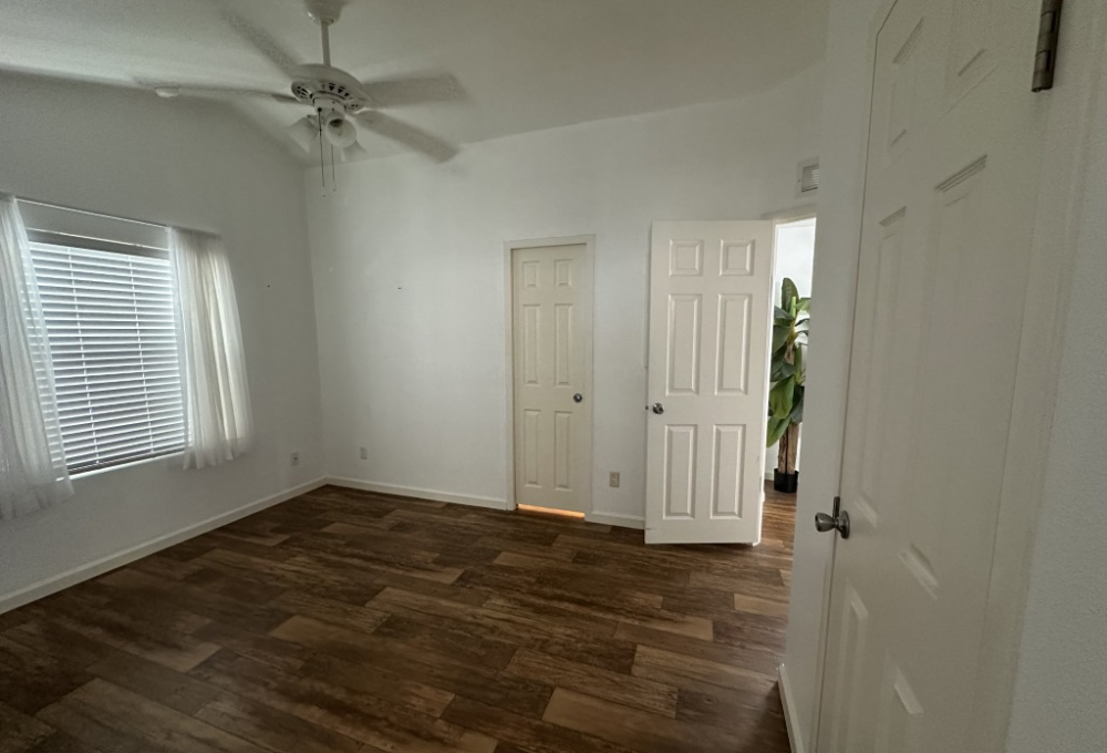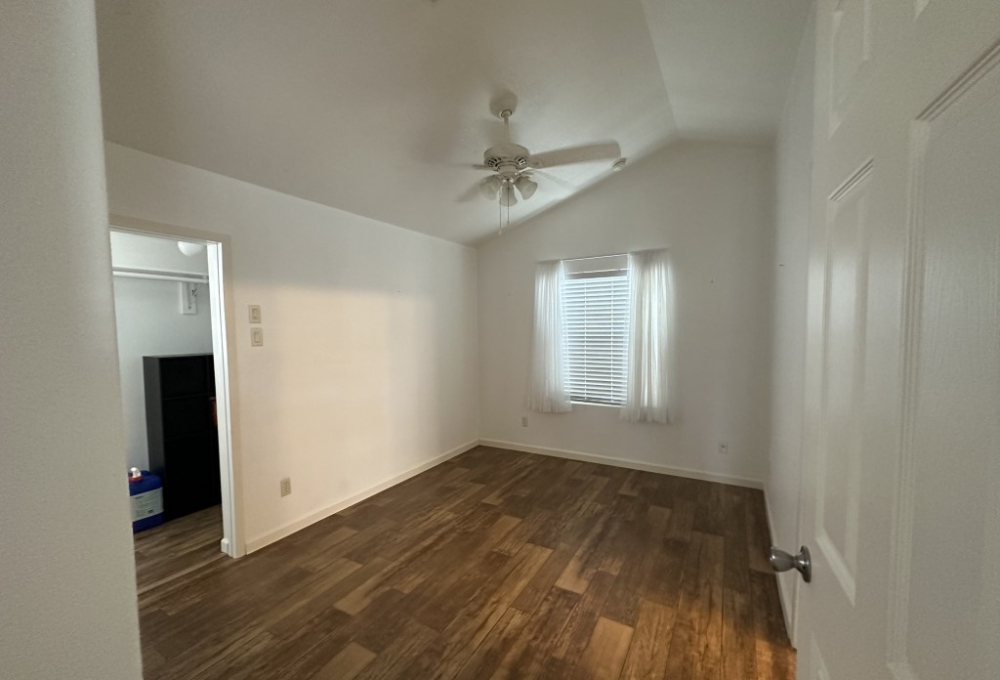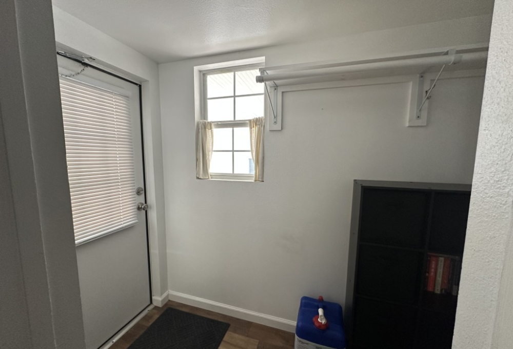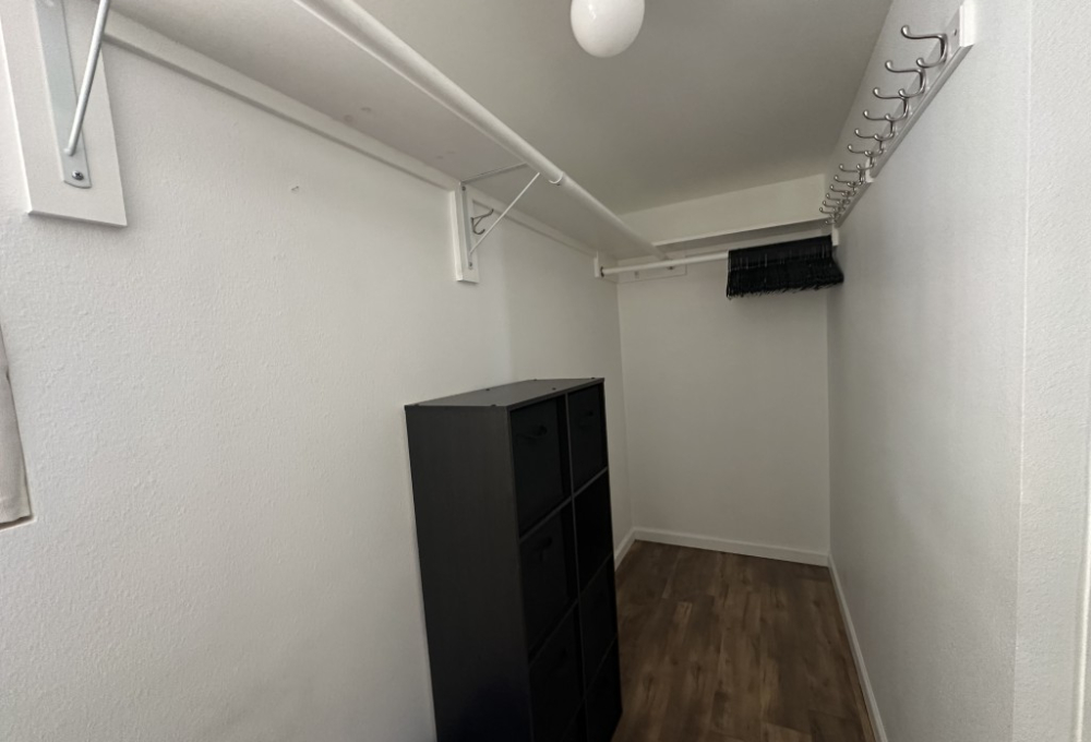 - Bedroom includes a regular closet plus a walk-in closet that connects to the back emergency door