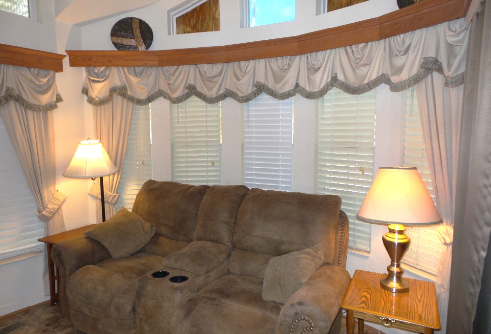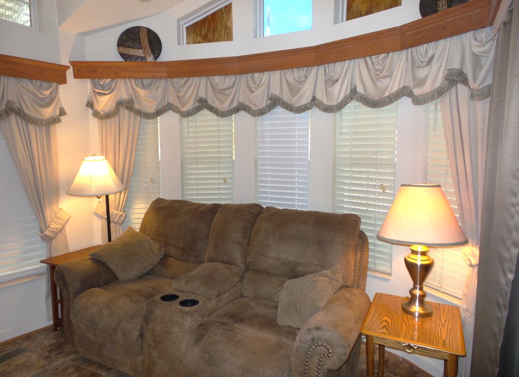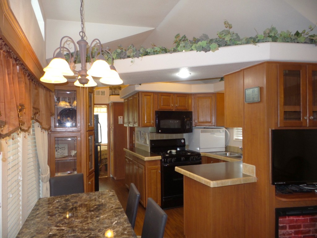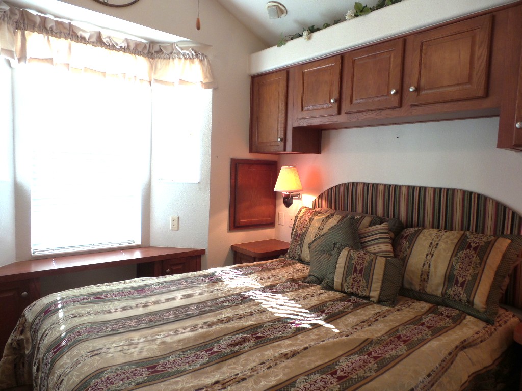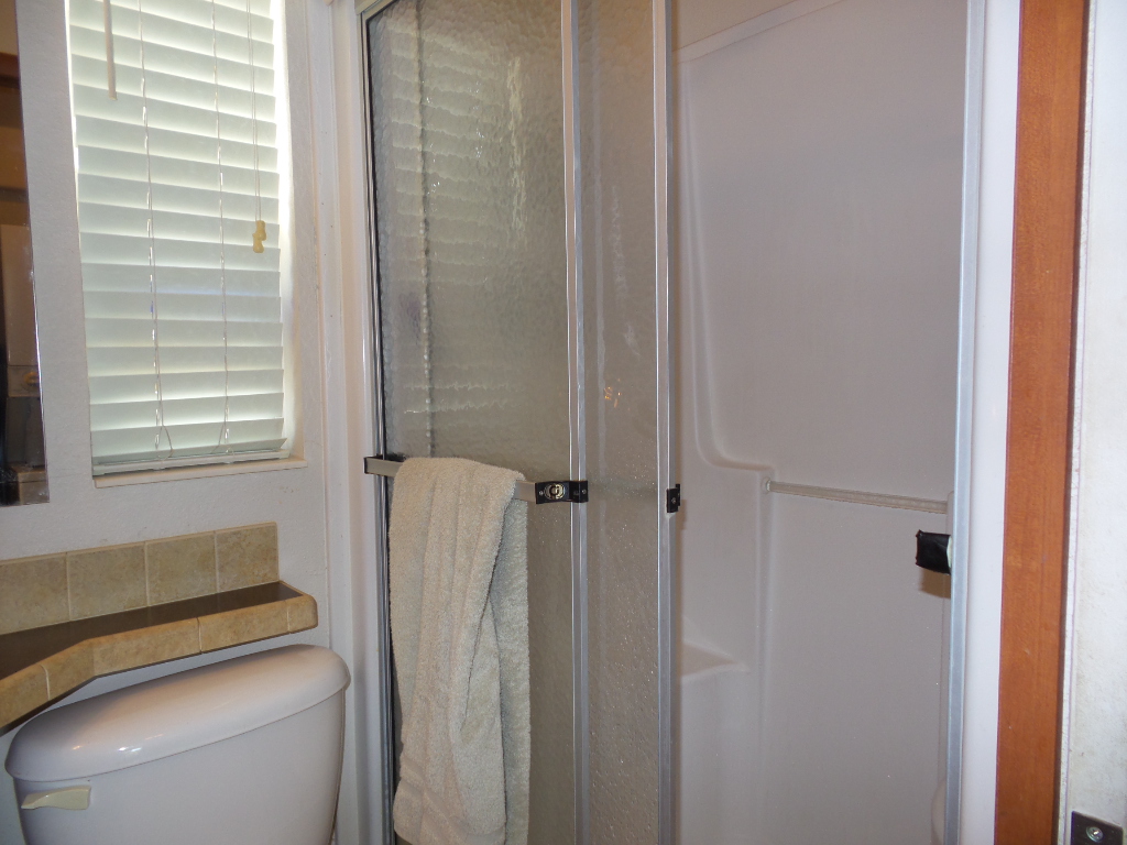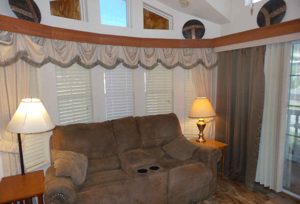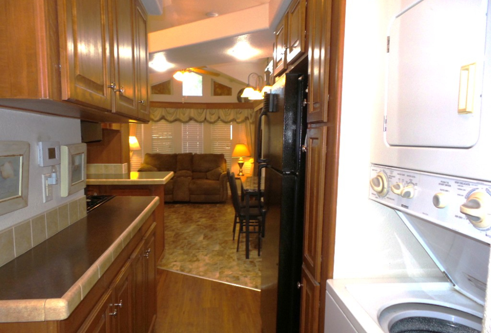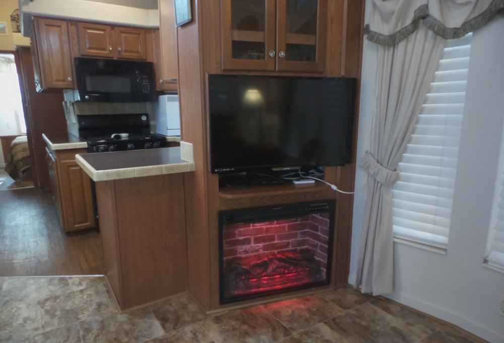 Athens 2009 12x33’ (396 sq ft) 1 bedroom, 1- bathroom Exquisite Park model, with a beautiful patio, plus carport & attached shed. Driving up to this park model you notice many extras! An extended dbl insulated carport with sturdy steel beams & patio with sun-screening for privacy. It includes all patio furniture, to enjoy the outdoors & entertaining. Trek steps/white railing take you up to the front sliding door entrance to the Livingroom. With textured walls, high ceilings & dormer (stained glass) & sun-screened windows, this has an abundance of natural light & welcome airiness. An electric fireplace & TV with a reclining loveseat, plus new flooring add comfort to the rich wood cabinetry in the adjoining galley kitchen. A gas stove & all appliances are convenient to the modern dinette within the bay window, overlooking the patio. Along the hallway is a pantry & added cabinets, plus the stackable W/D. The bathroom features a walk-in shower & extra cabinets. The bedroom is at the back of the home near the backdoor exit to the patio. The Q bed provides comfort with reading lites/bedside tables. A vanity area is included as well with extensive cabinets above/below & a triple mirrored closet which opens to a built-in dresser & tv as well. The 10x8’ shed includes more storage, with an A/C unit. This home has everything you could want & is energy efficient with direct MVEC service & low maintenance with a home warranty, updated water heater, maintained A/C unit, newer shingled roof & gutters, hurricane shutters, a mirrored patio door, sun screened windows, Trex deck/steps & more! Please call Rita at 712-281-9862 for a tour of this home & a friendly, fun activity filled resort community!