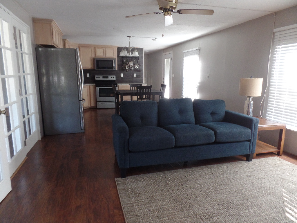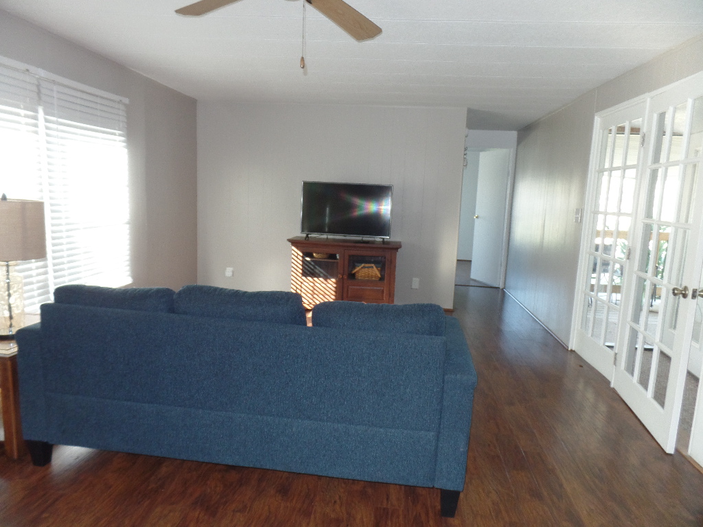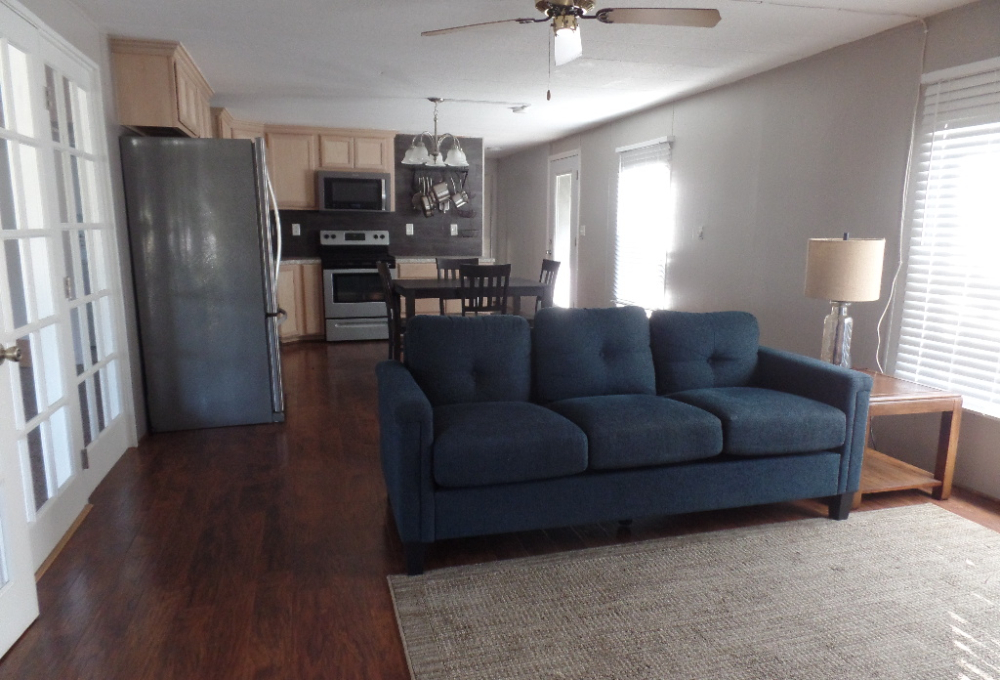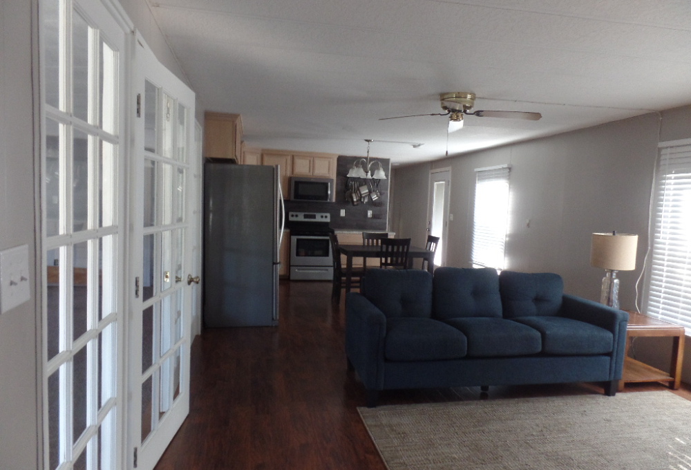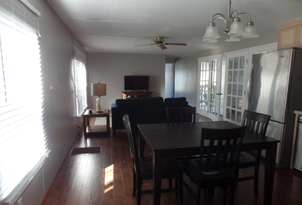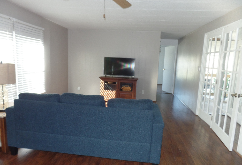 Come tour this beautiful home with lots of potential partially furnished - 14' x 76' Graham model home with 2BR & 2BA asking price $32,000. Open floor plan for the living area and kitchen and a split configuration for privacy, has 1,064 sq. ft. of living space and a large 11x22 Texas Room addition. It has a flex/office room, the bedrooms are on opposite sides that give you privacy. The master bedroom is fully furnished with a queen-size bed and dresser the second bedroom was being used for quilting, has a table and lots of storage. Updates included kitchen cabinets, bathrooms, windows, luxury plank flooring, Beautiful French Doors & back door screened area to sit out or just let your pet get some sun. Stainless Steel appliances and gas water heater a utility shed equipped with electricity & water, a 12' x 8' deck at the front of the home & a 11x14 covered carport to park your vehicle/golf cart. Close to all amenities in the park, including a golf course nearby. It is located at Llano Grande Resort and Golf Club, Mercedes, Tx, a 55+ gated retirement community. Come enjoy the resort life where you will never run out of things to do. Year-round activities and events.