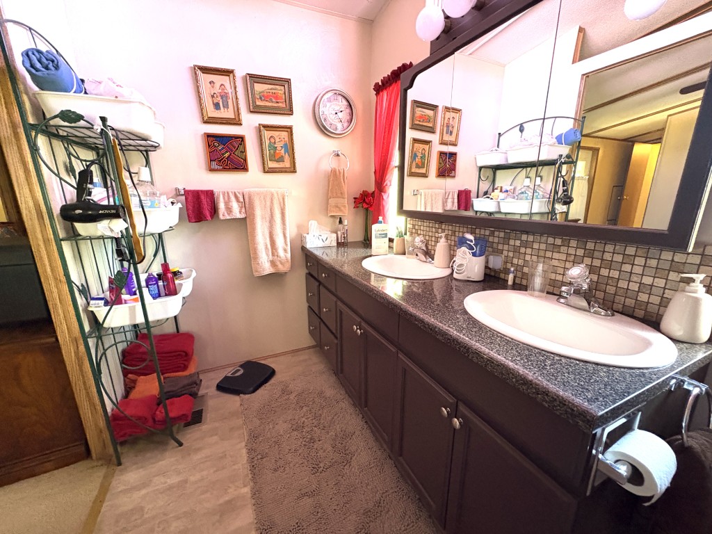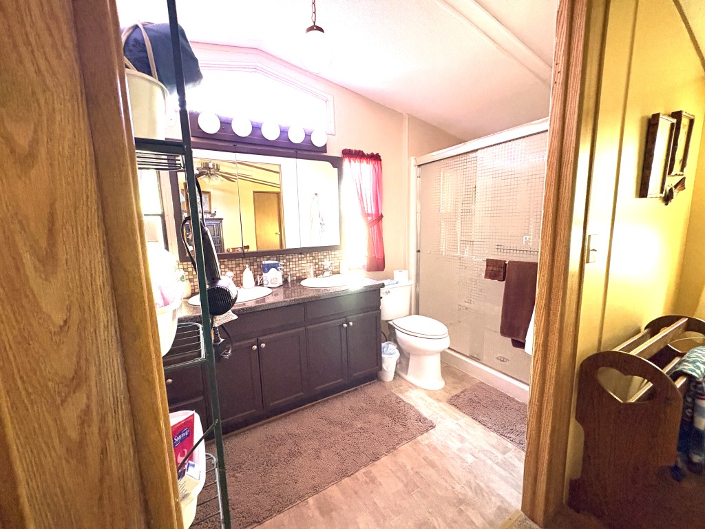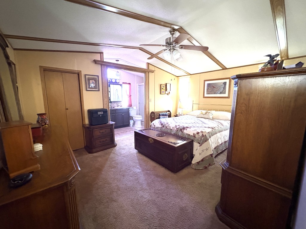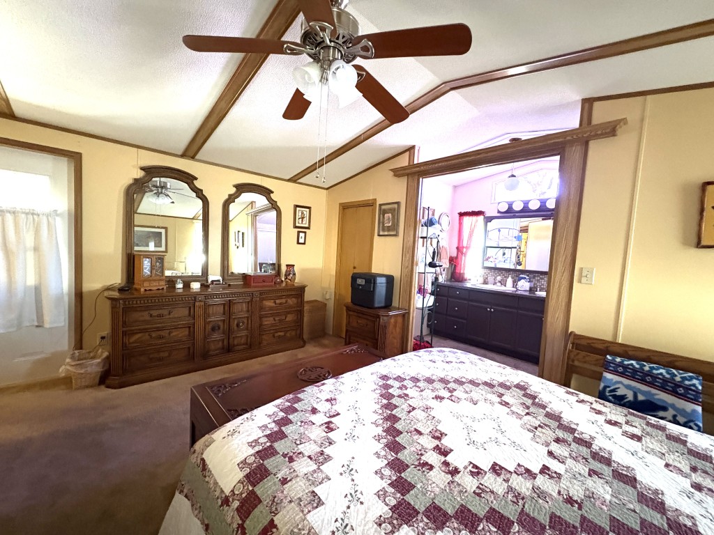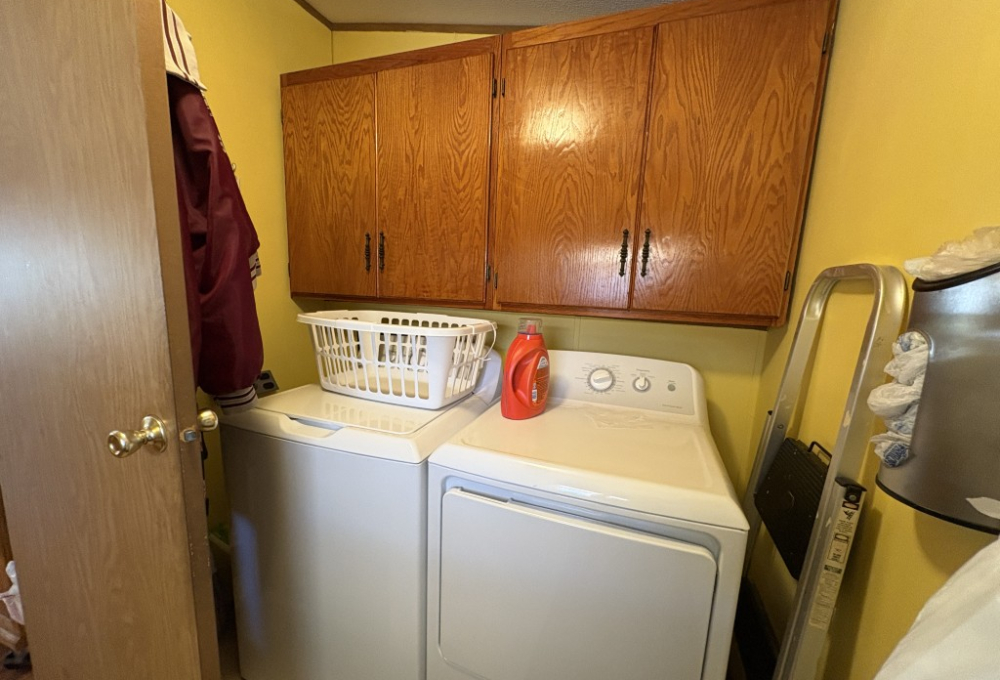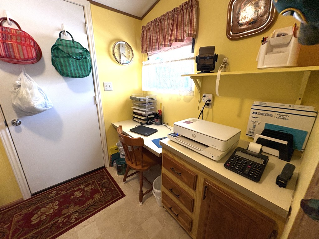 Nestled on a quiet dead-end street, this well-maintained 16x68 Palm Harbor home (1,054 QFT) offers comfort, convenience, and thoughtful upgrades throughout. From the moment you step inside, you'll appreciate the open, airy layout and the pride in ownership that shines in every detail. The front kitchen is a true standout, featuring custom self-closing cabinets and drawers, a unique pantry, and a seamless flow into the dining and living areas--perfect for everyday living and hosting friends. Just off the kitchen, a tucked away laundry room provides easy access to the back door while keeping household tasks discreetly out of sight. The guest bedroom offers comfortable accommodations with close access to a full guest bath complete with a walk-in-shower. The spacious Master Suite is a retreat of its own, boasting two generous walk-in-closets and a beautifully updated master bath featuring a walk-in-shower with decorative glass doors, double sinks, and an upgraded vanity. Outside you'll find one of the home's most versatile features: a large covered carport thoughtfully divided to create a spacious patio area ideal for relaxing or entertaining. An attached storage shed sits safely under the carport awning, offering extra room for tools, hobbies, or seasonal items. This home blends comfort, functionality, and charm--an inviting space ready for its next owner to enjoy the best of this friendly 55+ friendly community living.