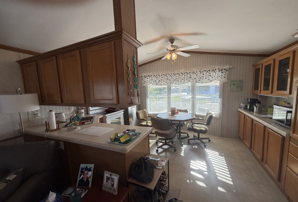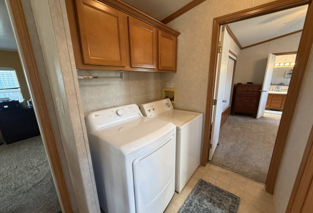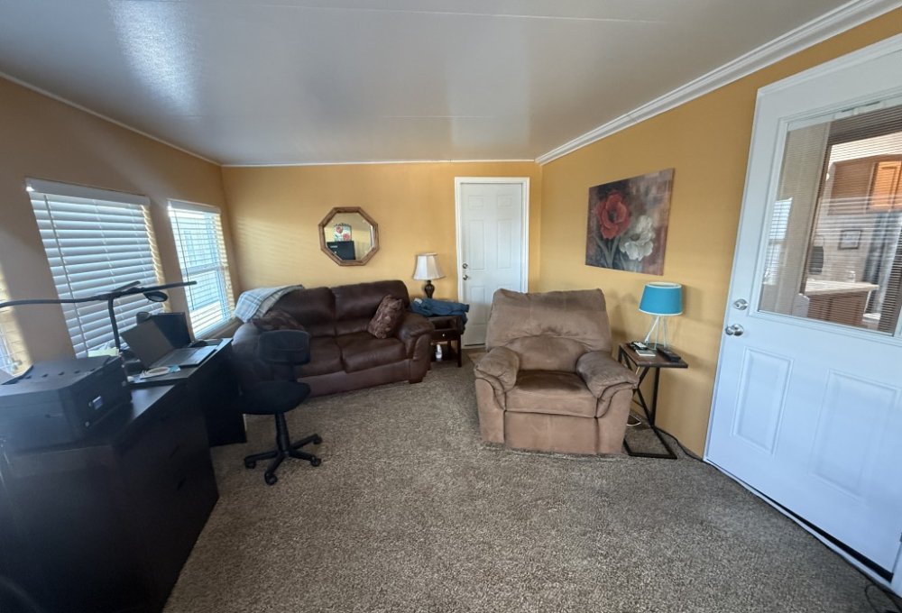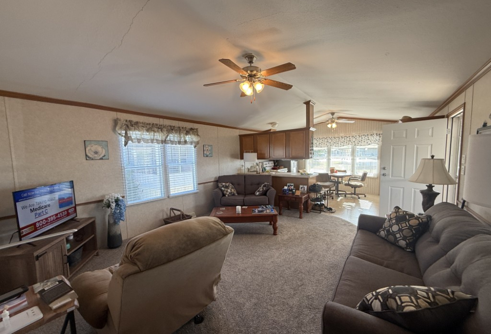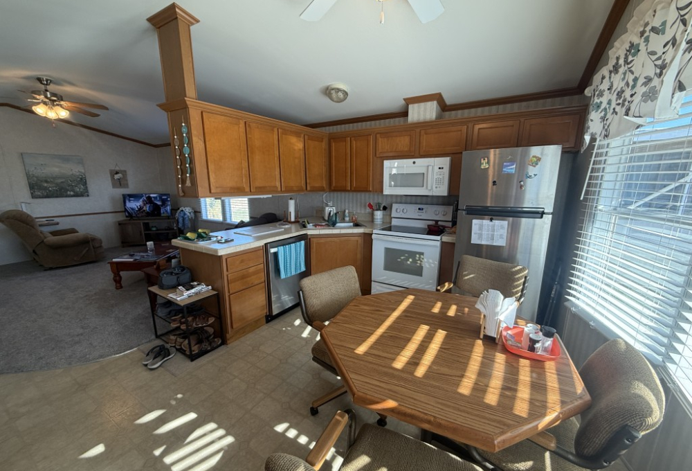 This well‑maintained 2004 Skyline home offers comfort, functionality, and an excellent location backing directly onto the Tierra Del Sol Golf Course. The main home measures 16 x 60 and sits on a full concrete slab, providing added stability and peace of mind.