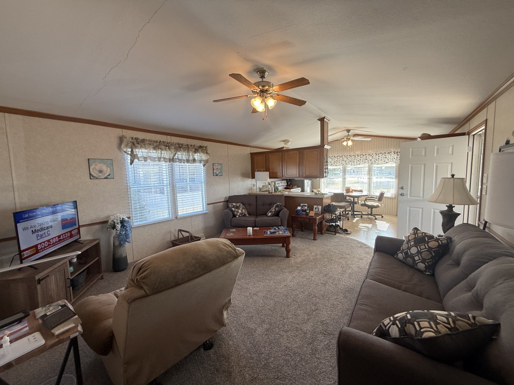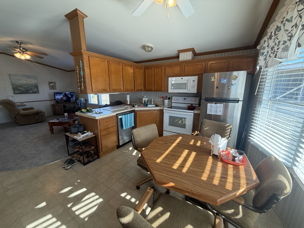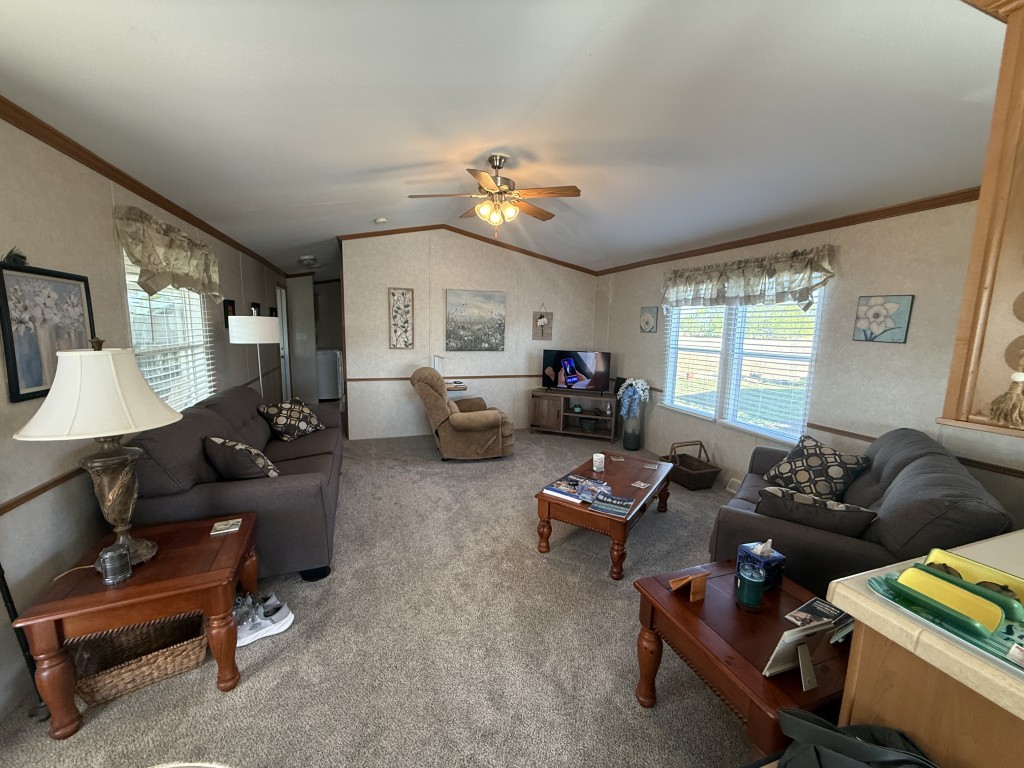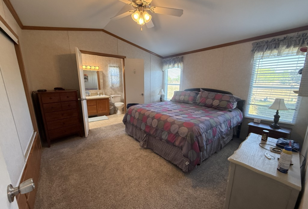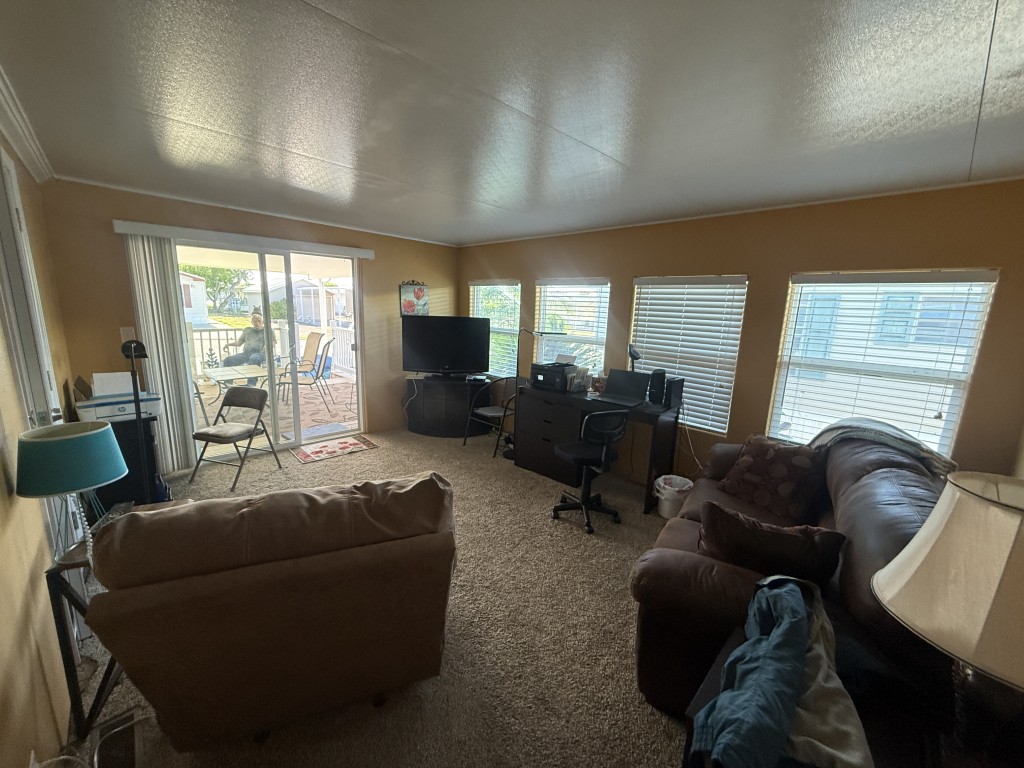This well‑maintained 2004 Skyline home offers comfort, functionality, and an excellent location backing directly onto the Tierra Del Sol Golf Course. The main home measures 16 x 60 and sits on a full concrete slab, providing added stability and peace of mind.
