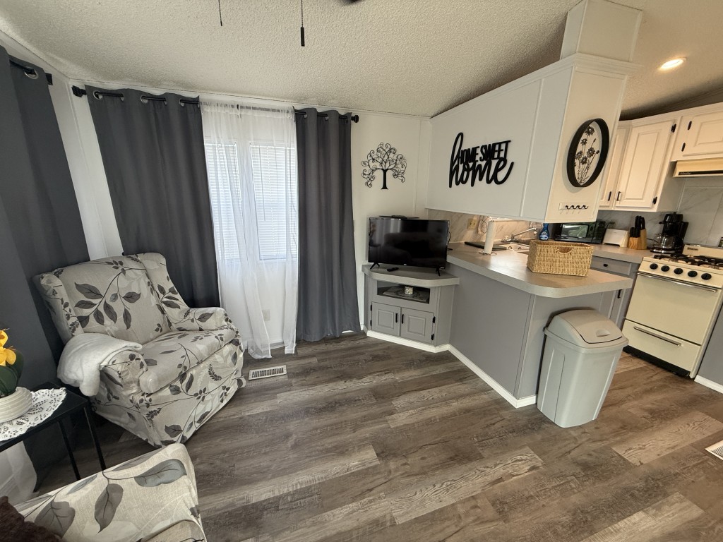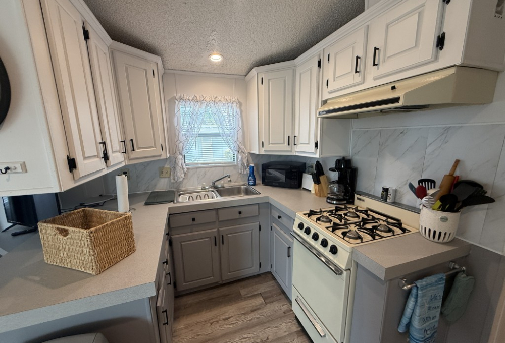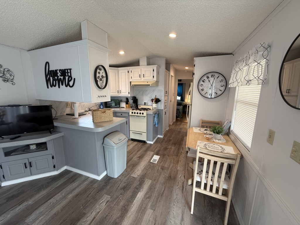 Nestled in the serene surroundings of Trails End RV Resort, this beautifully remodeled park model offers a perfect blend of comfort and modern amenities. The park model has been thoughtfully updated to provide a cozy yet stylish living space, ideal for those seeking a tranquil retreat or a seasonal getaway.