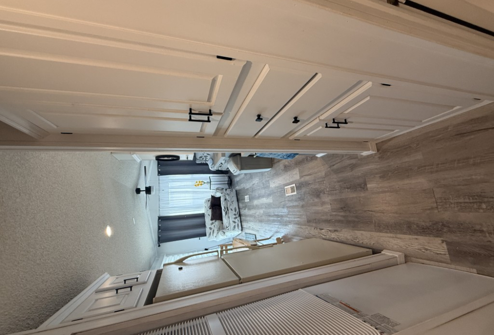 The bedroom is a peaceful sanctuary, featuring a plush bed, ample closet space, and tasteful decor. The remodeled bathroom offers a spa-like experience with its modern fixtures, spacious shower, and elegant vanity.