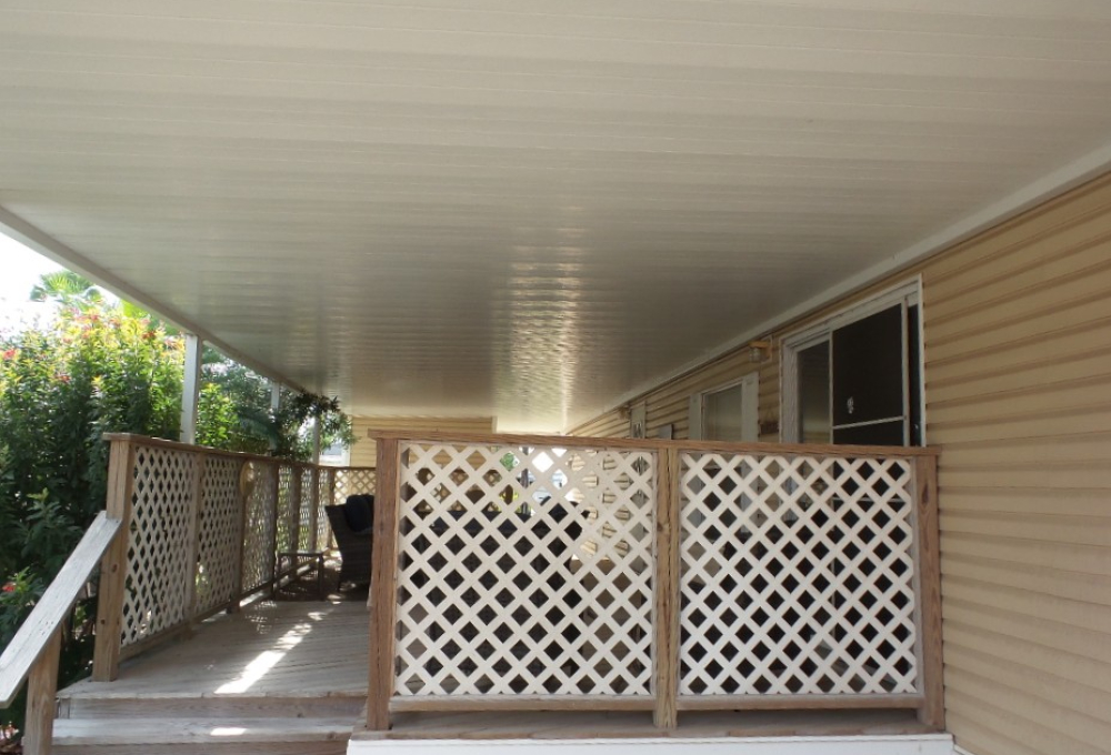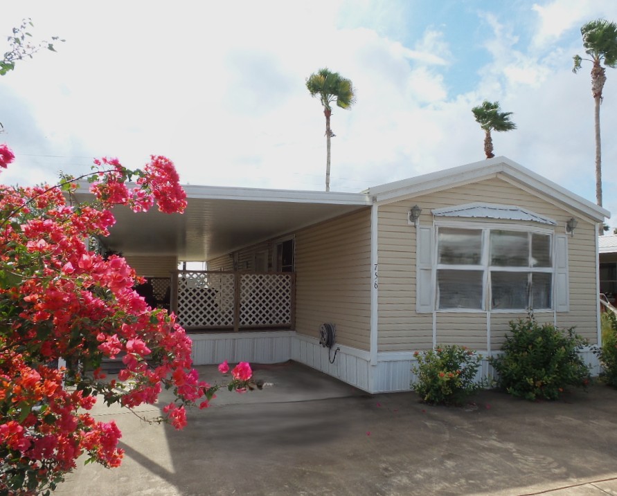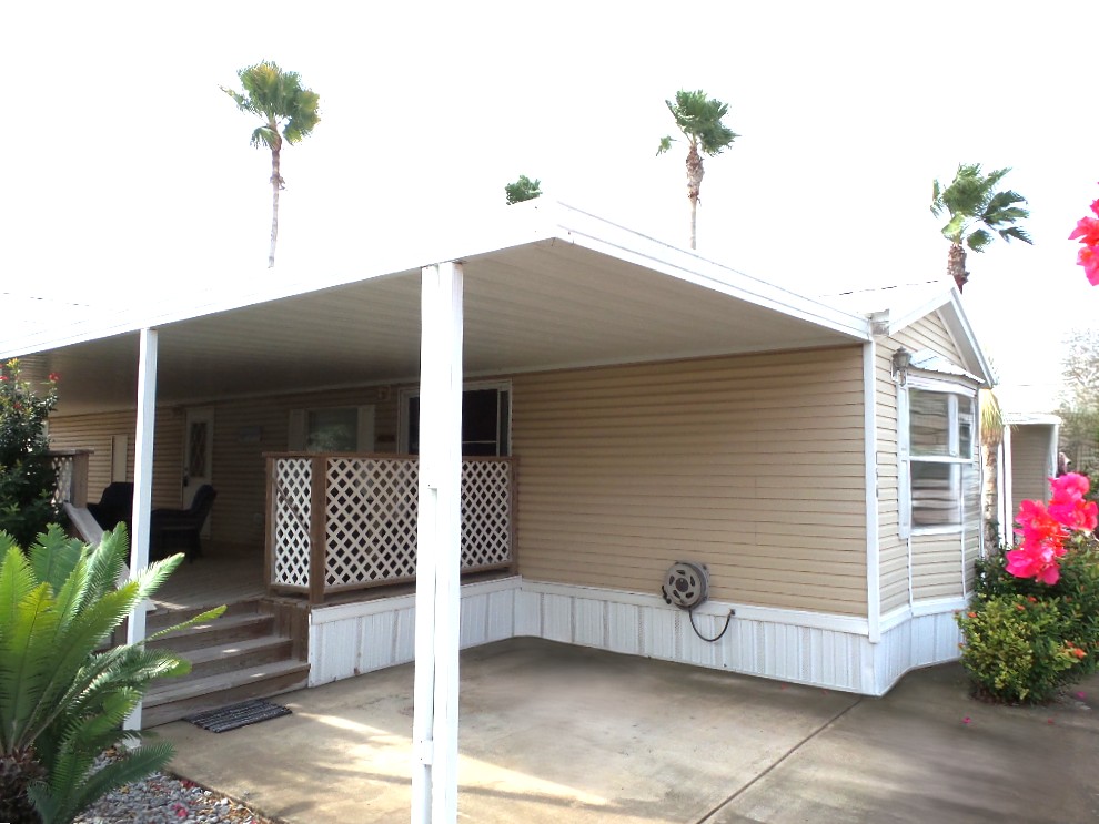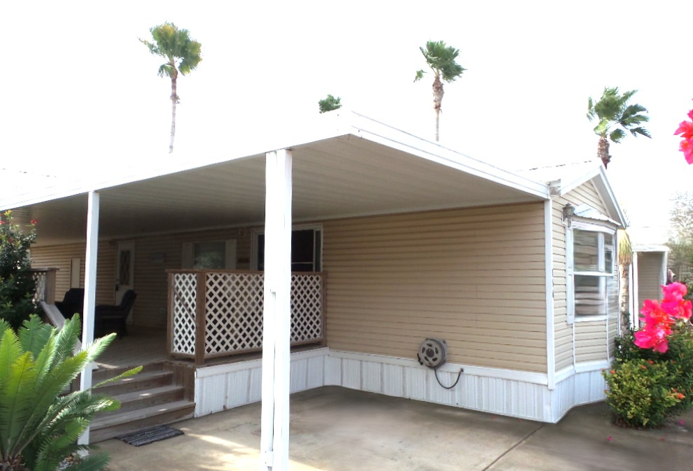 2007 American Homestar 16x60’ (935 sq ft) 2-bedroom 2 bath pristine Manufactured Home with great outdoor deck/Patio & shed! Up a few steps from the carport awaits patio furniture for a lovely oasis, shaded by tropical plants & perfect for SE TX breezes & entertaining. A sliding patio door accesses the Livingroom with pillowed sofas facing on either side of the Lg screen TV, creating conversation areas in a welcoming motif. A computer desk is also tucked into the corner. The front kitchen has a dinette adjacent to the front northern exposure windows with a view & an abundance of cabinets/countertops surrounding this kitchen, complete with all electric appliances. Along the hallway near the back door exiting to the deck is the guest room, with dressers & closet. The main T/S bathroom is between the guest room & master, with a nook for the W/D. At the back of the house is the Q master bedroom with a large, mirrored closet & drawers beneath. Beyond is the en suite M bathroom with a walk-in shower & dual sinks. This home is energy efficient & low maintenance with a new steel roof, nice furniture/décor & lovely patio outdoor space, with a storage shed. Call Rita for a tour appointment at 712-281-9862