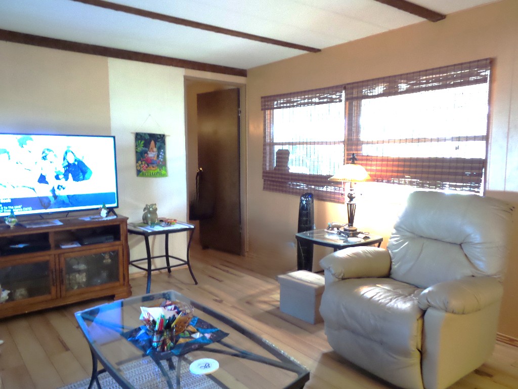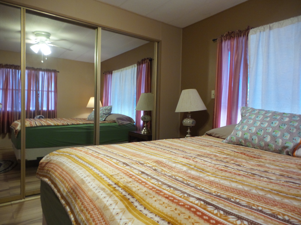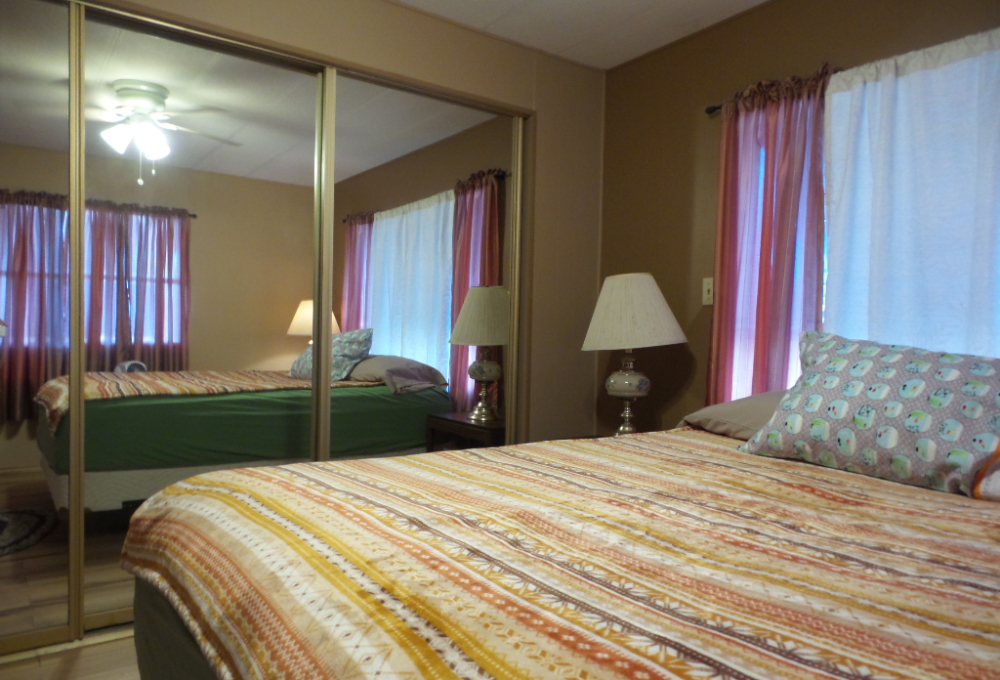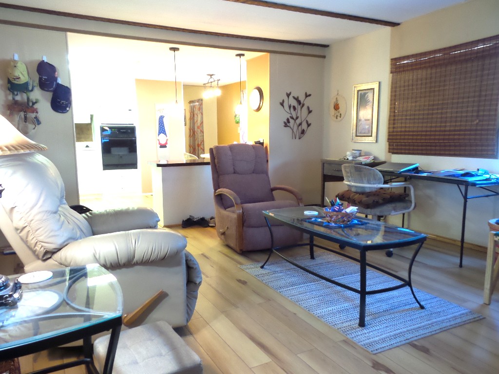 Golden West 14x76 (1064 sq ft) 2-3 Bedroom, 2 bathroom Manufactured home with extensive renovations. Driving into the carport you note the Extended sides for easy door opening. Steps lead up to tiled screen porch with patio furniture to enjoy the Coastal breeze & overlooking the tropical plants & citrus trees in this yard. The front door enters the Livingroom with wood laminate flooring stretching the full length of the home! The open concept kitchen features quartz countertops & updated cabinets & newer appliances including a countertop range, wall oven & microwave plus fridge. Extra cabinets surround this kitchen with ample cabinets/pantry. A dividing counter separates the open concept rooms. To the front of the house is the Master en-suite bathroom T/S & a Q bedroom with mirrored closets stretching along the one wall. Beyond the kitchen is a bonus 3rd room. Multipurpose use could be used as a Dining room, Office/ TV room or sleeping for guests. The W/D are near the back door & main bathroom featuring ceramic tiled flooring, a tiled walk-in shower, & updated vanity. A Q bedroom set is at the back of the house with an XL closet as well. The home is fully furnished & has had extensive renovations for comfort & efficiency, including a metal roof. Natural gas provides energy efficiency. Rent includes Wifi & TV. Please call Rita for a tour appointment at 712-281-9862!
