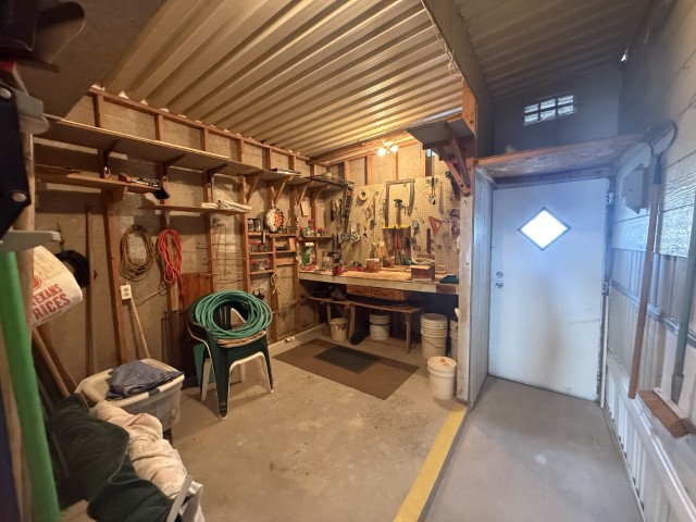 Upon arrival, residents and guests can park in a spacious 13 x 18 carport. Entry is through a bright and fully furnished 13 x 17 Texas room, which serves as a welcoming area ideal for relaxation. At the end of the Texas room lies an 11 x 11 workshop, accessible from both inside and outside, and equipped with electricity for versatile use.