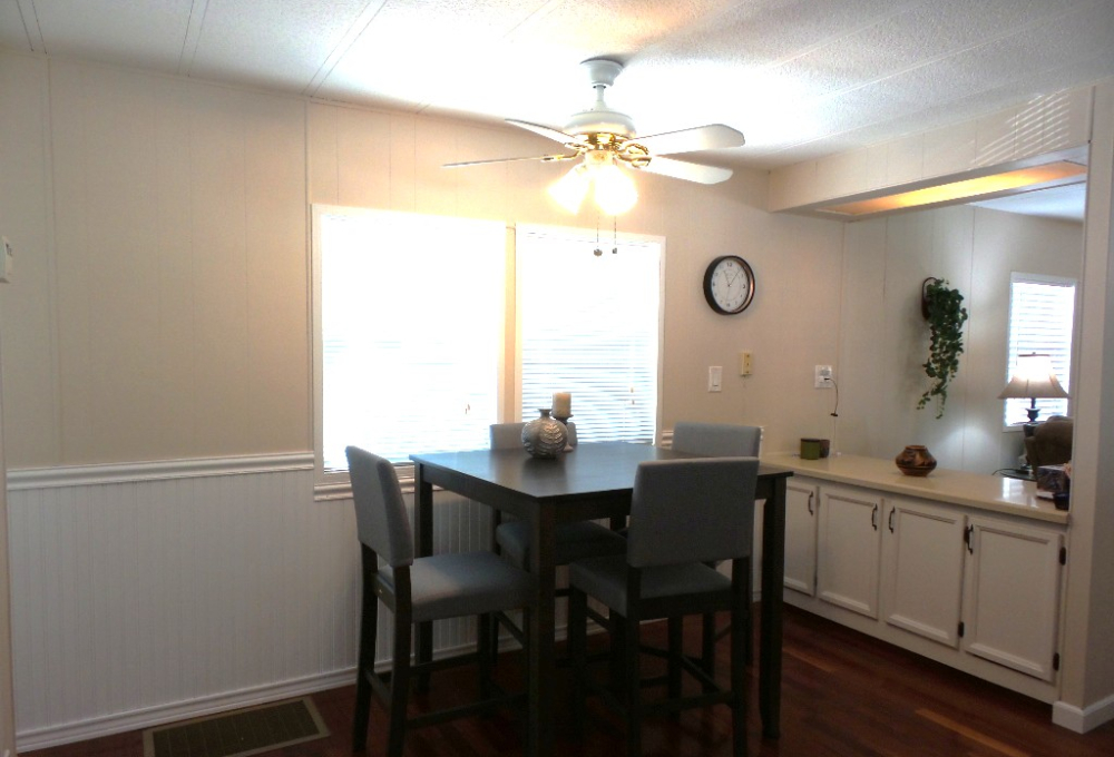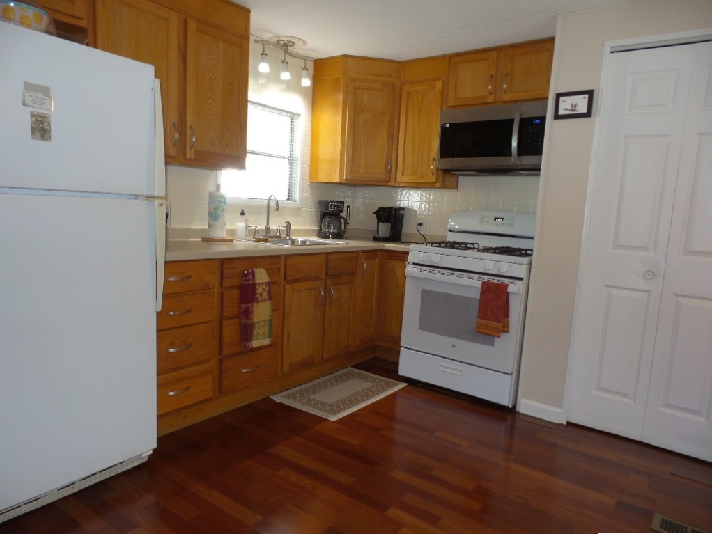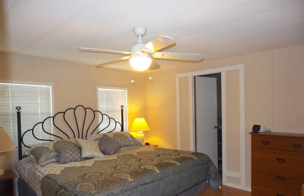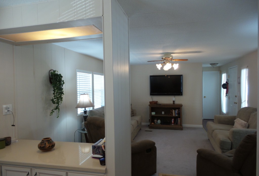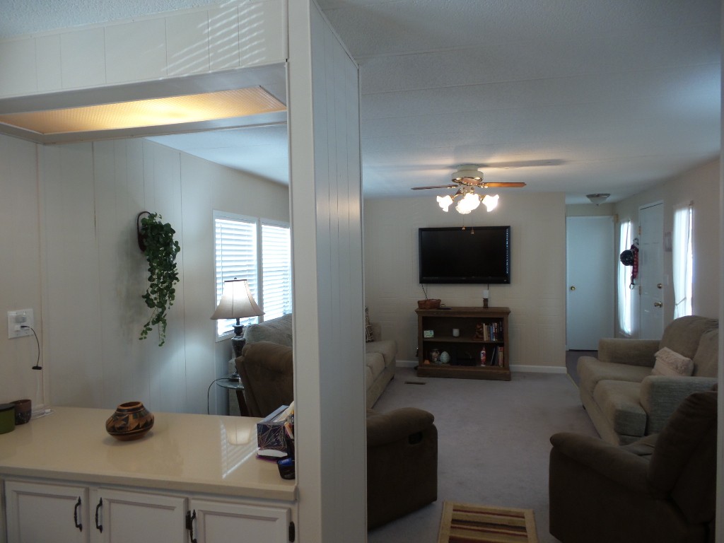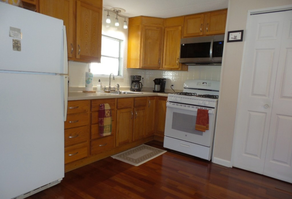 Deerfield 14x72’ (1008 sq ft) 2-bedroom, 2 bathroom manufactured home with great deck. A small parking or covered patio is in front of the deck with another & the carport behind the deck, providing auto parking at the back. Plus, a storage shed! An extensive deck welcomes guests to sit & enjoy the TX weather. An entry door opens to the Livingroom with a sofa, loveseat & recliners facing the wall mounted TV. Dividing counters separate the Kitchen/Dining area with display & storage areas. Corean counters & ample cabinets surround the newer gas range/overhead microwave, fridge & a pantry. The hi-top table is enhanced with cherry wood LVP flooring in this remodeled kitchen. Freshly painted walls continue throughout, as you go along the hallway to the Maytag W/D adjacent to the back door. Further is the Master bedroom with a walk-in closet K bed & en suite bathroom completely renovated with new vanity, storage cabinets, flooring & a luxury tiled walk-in shower/seat! At the front of the home is the guest room with Dbl bed, dresser & closets presently with an art table. The corner front bathroom is accessible to the deck, guests & Lvgrm. With newer updated appliances, renovations, painted & fresh coated roof, with a rock yard this home is low maintenance, spacious & appealing! Call Rita at 712-281-9862 for tour appt!