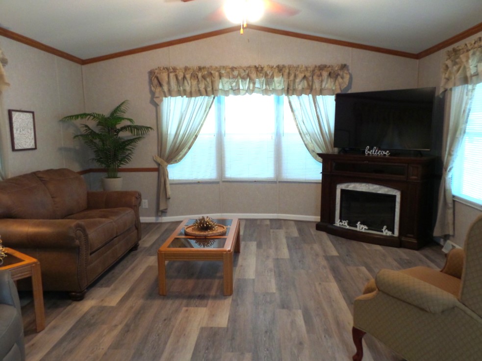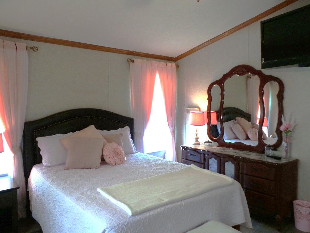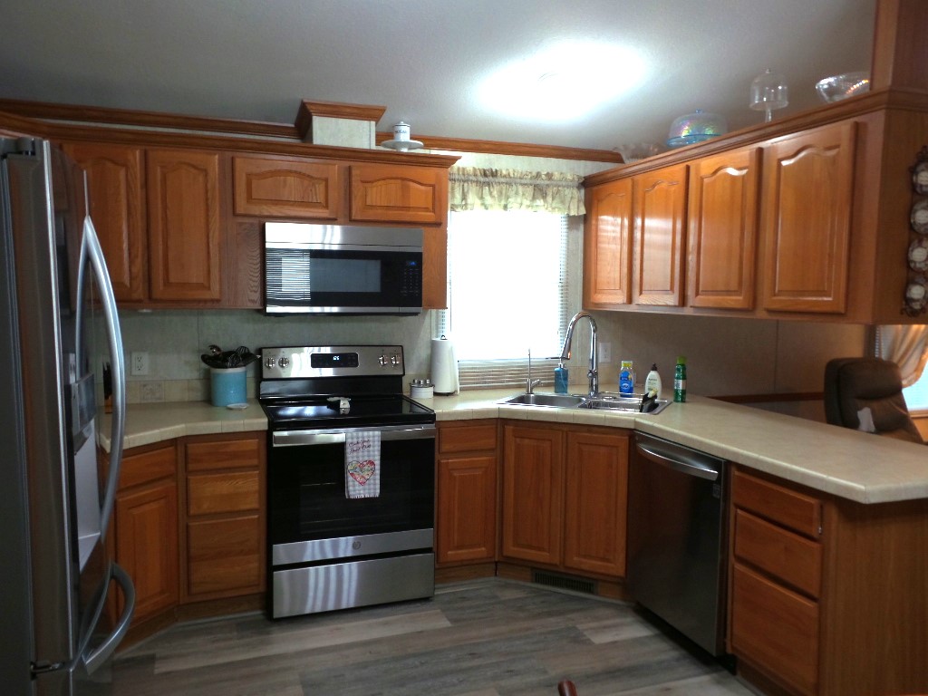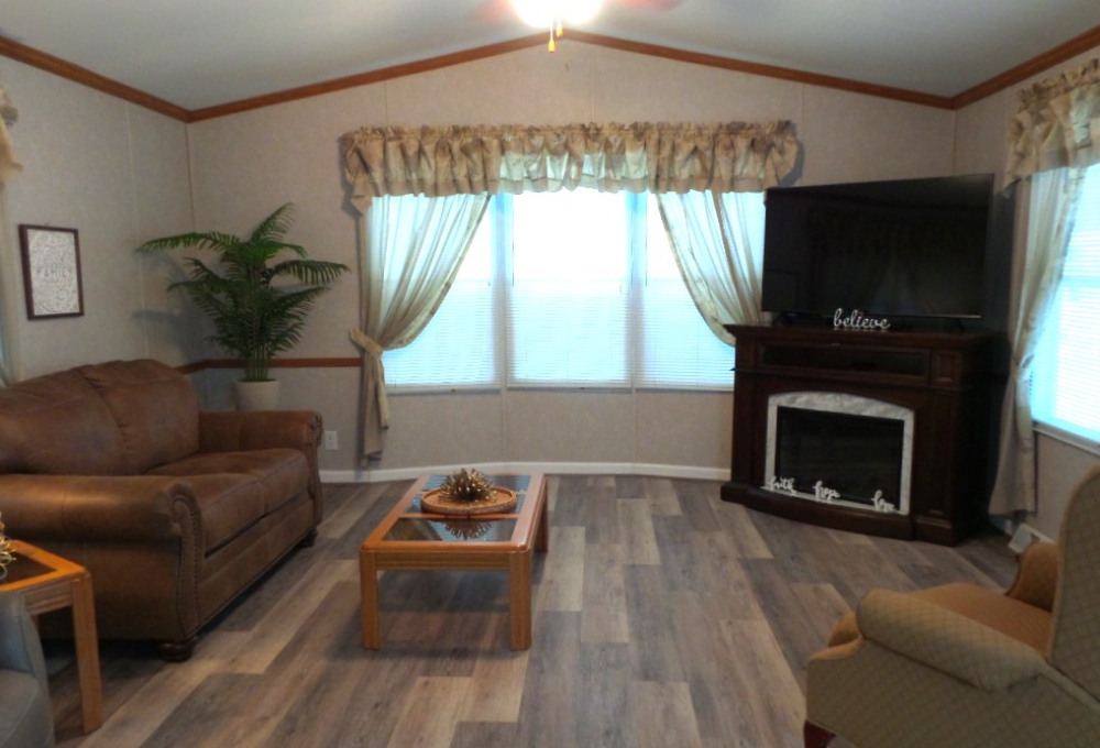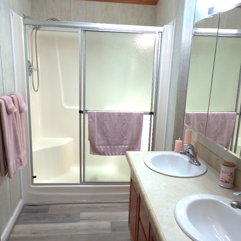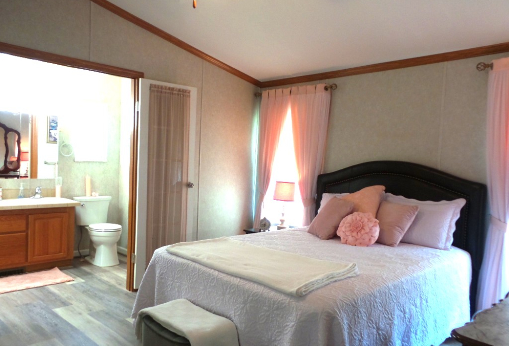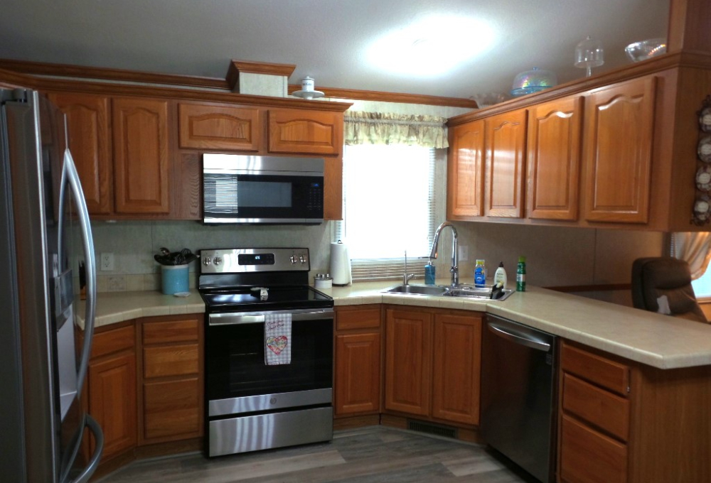 Skyline 2001 18x68’ 2-3 bedroom, 2 bathroom Manufactured home 1224 sq ft + Tx Room adds 440 more for a total of 1664 sq ft of Living space! Driving up to this home you notice a lengthy carport with a raised wood deck in front of the Texas room. Entering the home via a sliding patio door into the Living room you’ll find leather furniture with 2 recliners matching the sofa & a side chair facing the TV. A dividing bar with stools separates the dine in kitchen with the table & rolling chairs looking over the deck. A built-in hutch & island provides more storage. The newer fridge & range, plus a dishwasher & microwave provide efficiency in this vast kitchen with extensive countertops & cabinetry. Along the hall to the back of the home, to the L is W/D laundry & entrance to the Texas room where desks & craft tables are placed with a reading chair & exit to the deck. A large storage room awaits within this room. Straight back from the kitchen is the furnished Master bedroom with a walk-in closet, dressers, TV & King size bed, plus the en suite bathroom featuring a walk-in shower long vanity & extensive storage. At the front of the home is a guest room with a separate additional A/C unit for extra cool sleeping. The main bathroom has a tub/shower adjacent to the guest room & near the Livingroom. Outside at the back of the home is the storage shed. This home is energy efficient with thermal windows, a metal roof, updated appliances including a new W/H & more. A golf cart is available but sold separately. Call Rita for an appointment to see 712-281-9862!