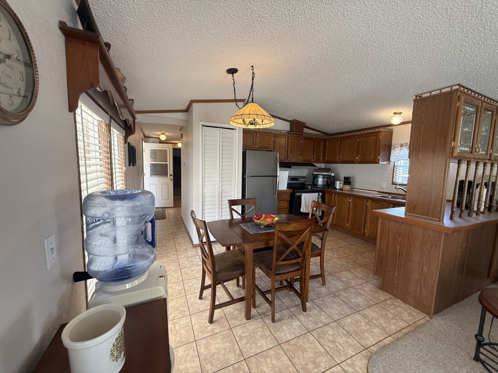 The living room is situated at the front of the home and features beautiful windows that allow an abundance of natural light. It opens seamlessly into the eat‑in dining area and kitchen, creating a warm and inviting space. The kitchen offers plenty of cabinet and cupboard space, and the stainless steel appliances were installed in 2017. The living room and dining room furniture were purchased in 2015.