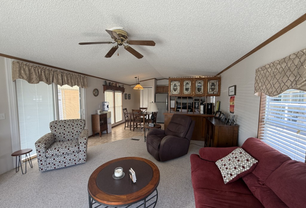 This charming Silhouette home, measuring 16 x 56, is move‑in ready and located in the desirable Southern Comfort Resort. Offering 2 bedrooms and 1.5 bathrooms, this home is well laid out and filled with natural light.