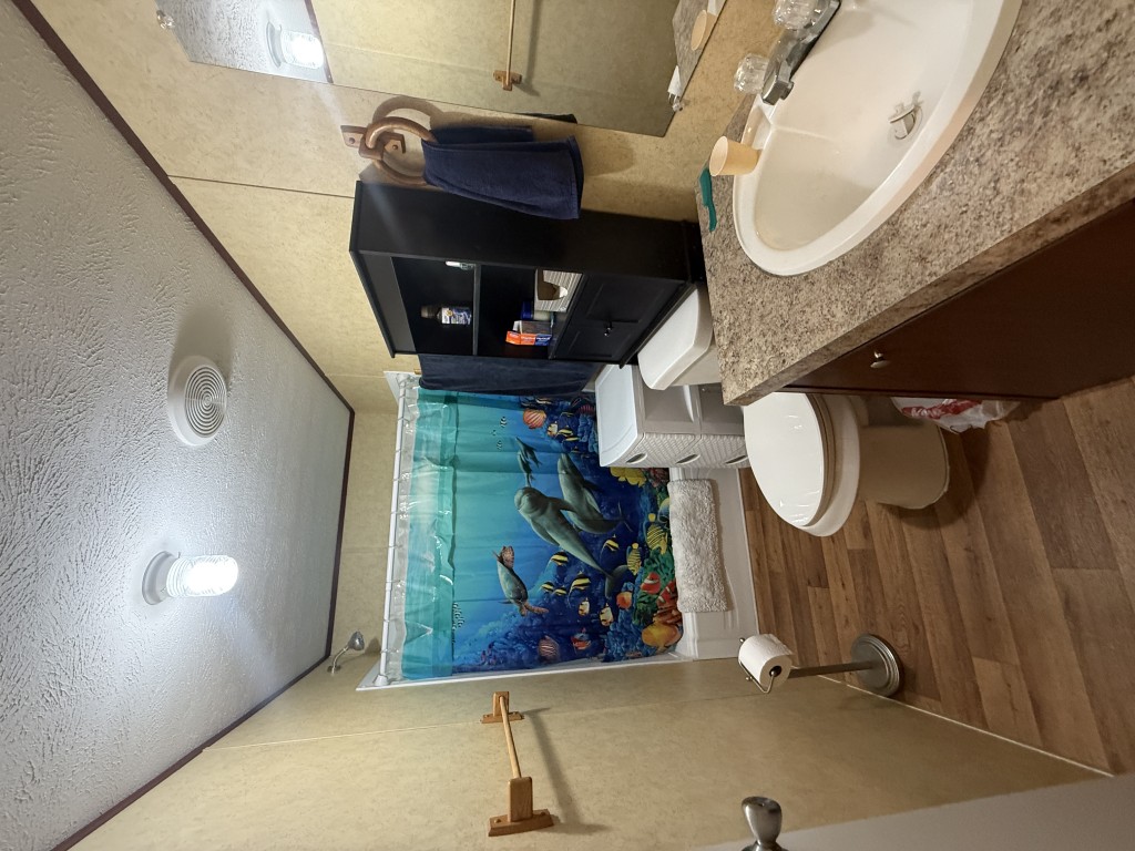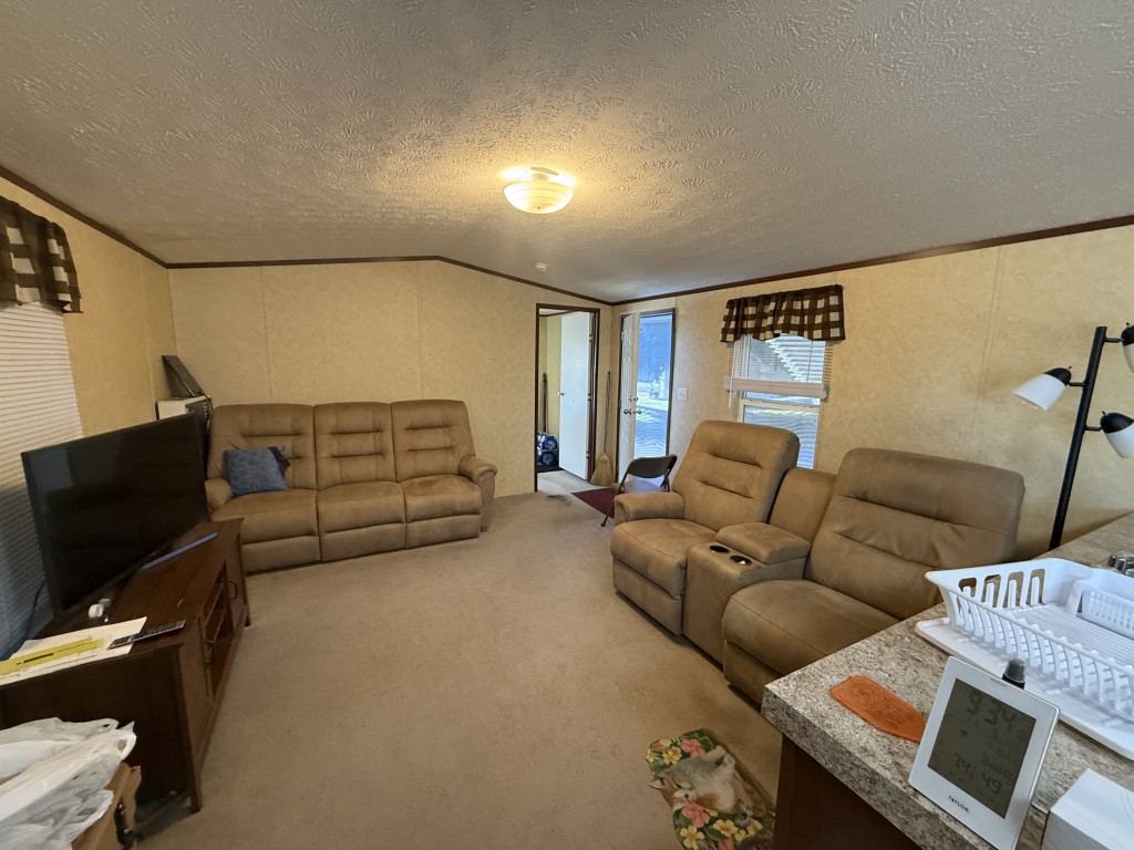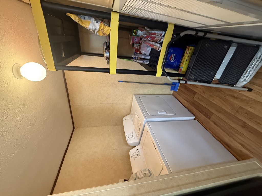 This charming 2016 Clayton home, measuring 14 x 56 square feet, features 2 bedrooms and 1 bathroom. The master bedroom, located at the back of the home, is large and comfortable. The spacious guest bedroom is situated at the front. The central area of the home includes the living room, kitchen, dining area, and a laundry room equipped with a washer and dryer.