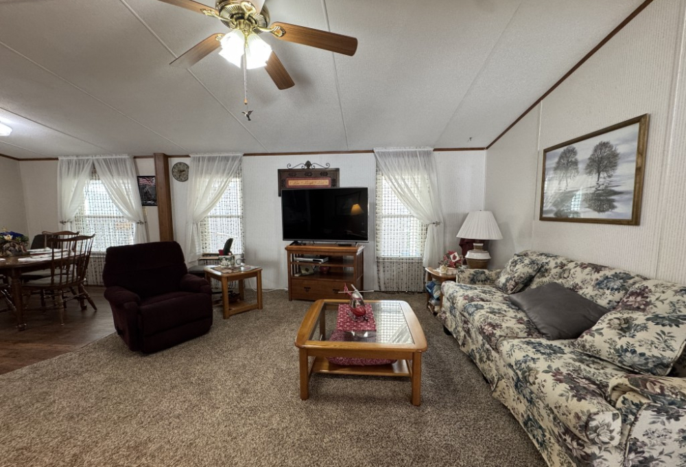 This well-maintained 1997 Riviera manufactured home offers 1,330 square feet of comfortable living space and features three bedrooms and two bathrooms. The all-electric, fully furnished residence is situated on an oversized lot.